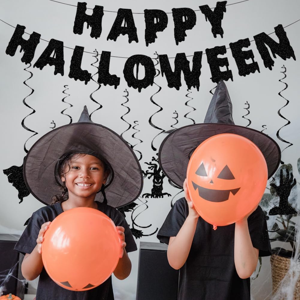 【Decorazione unica di Halloween】Halloween arriva presto, è una buona scelta per la festa, appesa sotto il soffitto o la finestra della tua casa o della tua sala di festa, per rendere la tua festa a tema erba con più atmosfera. 【Set di ghirlanda di Halloween】Questo set di decorazioni contiene: 1 striscione di lettere HAPPY HALLOWEEN, 9 pezzi di motivo a spirale. Dai alle decorazioni interne di Halloween un'atmosfera speciale di Halloween. 【Elementi di Halloween】Questo kit di decorazione di Halloween con elementi classici come fantasmi, zucche, pipistrelli, ragni, stregoni, ecc. Creano una forte atmosfera spaventosa e spaventosa per rendere il tuo Halloween ancora più divertente. 【Facile da usare】I banner di Halloween hanno dei fori l'uno nell'altro, basta infilare il nastro nei fori della bandiera e appenderlo. Gli adesivi a pipistrello di Halloween semplicemente rimuovono la carta bianca sul retro e si attaccano. Gli ornamenti appesi a forma di corvo sono semplici da appendere. 【Ampia applicazione】Il set di banner halloween Happy, adatto a varie occasioni, è la decorazione perfetta per feste di Halloween e feste per bambini. Si possono appendere a soffitto, finestre, pareti, caminetti, alberi, tavoli, binari e lampadari per aggiungere un tocco festivo a casa, negozio, ufficio, bar e camera da letto.