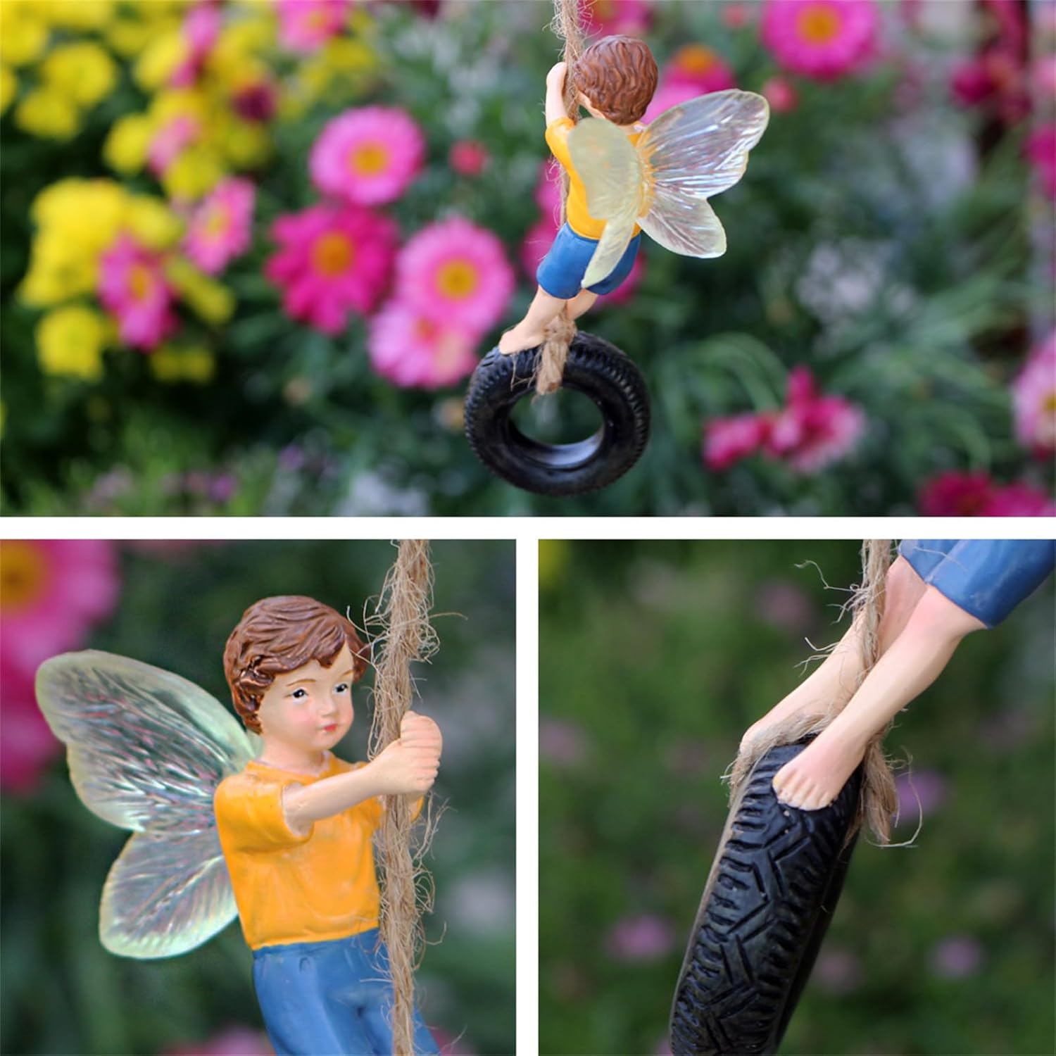 Queste statue da giardino sono un bel regalo per bambini, amici o parenti, compleanno, festa della mamma, Halloween, Natale Aggiungi un tocco di fata al tuo giardino con queste belle piume in miniatura Questo set di decorazioni da giardino è perfetto per giardino, cortile, decorazione del prato, ecc Questa statuetta in miniatura a forma di fata con corda, si adatta facilmente alla terra o all'albero Le statuette Swing Fairy sono una forma carina, un'espressione realistica per decorare il vostro giardino