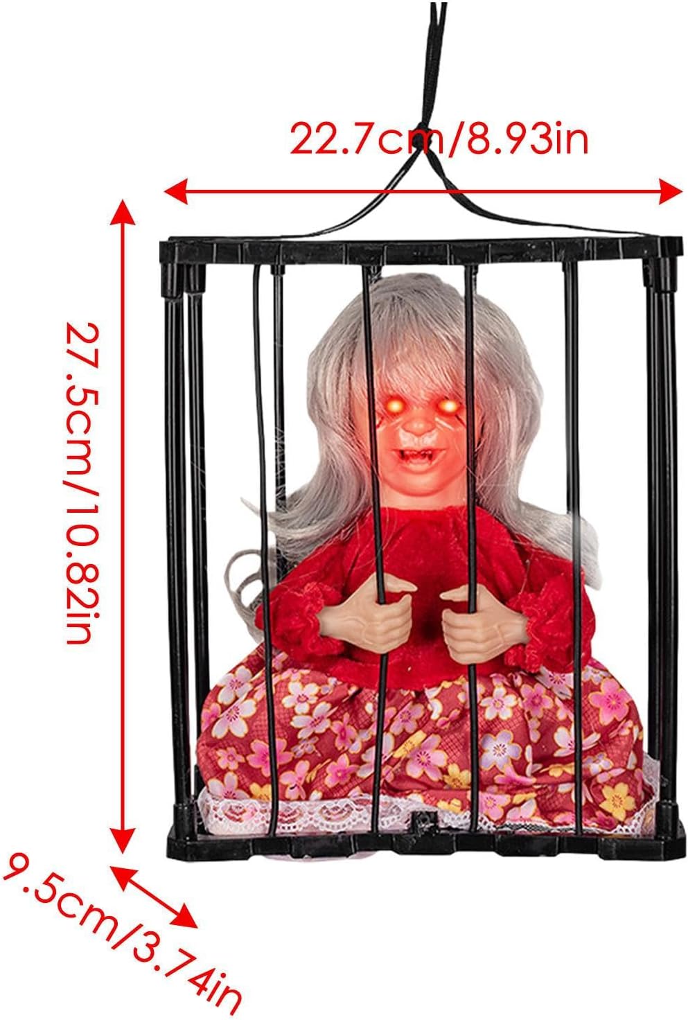 Momento clou inquietante: migliora le tue decorazioni di Halloween con la nostra gabbia della prigione di Halloween. Assisti al grido spaventoso del prigioniero "Portami fuori!" e guarda i tuoi ospiti turbarsi e immergersi in un'atmosfera spettrale. Ampia applicazione: trasforma la tua casa in una spettrale casa infestata con la nostra gabbia per prigionieri di Halloween. Ideale per spaventare dolcetti o scherzetti, ospiti e vicini. Perfetto per decorazioni di Halloween, case infestate e feste spettrali. Occhi luminosi: gli occhi rossi scintillanti e gli effetti urlanti creano un'atmosfera spettrale. Attiva il sensore semplicemente girandolo, facendo sì che il prigioniero afferri in modo inquietante le sbarre. Rileva fino a 23,5 pollici di distanza. Materiale affidabile: realizzata in ABS + tessuto, la nostra gabbia per prigionieri di Halloween è resistente all'usura. Con semplici istruzioni e accessori inclusi, l'installazione è un gioco da ragazzi per un'aggiunta spettrale al tuo display di Halloween. Regalo meraviglioso: completa le tue decorazioni di Halloween con questa raccapricciante gabbia da prigione, un grande regalo per la famiglia e gli amici. Usalo per spaventare i tuoi visitatori, spaventare i tuoi vicini o creare un'atmosfera pietrificante alla tua festa.