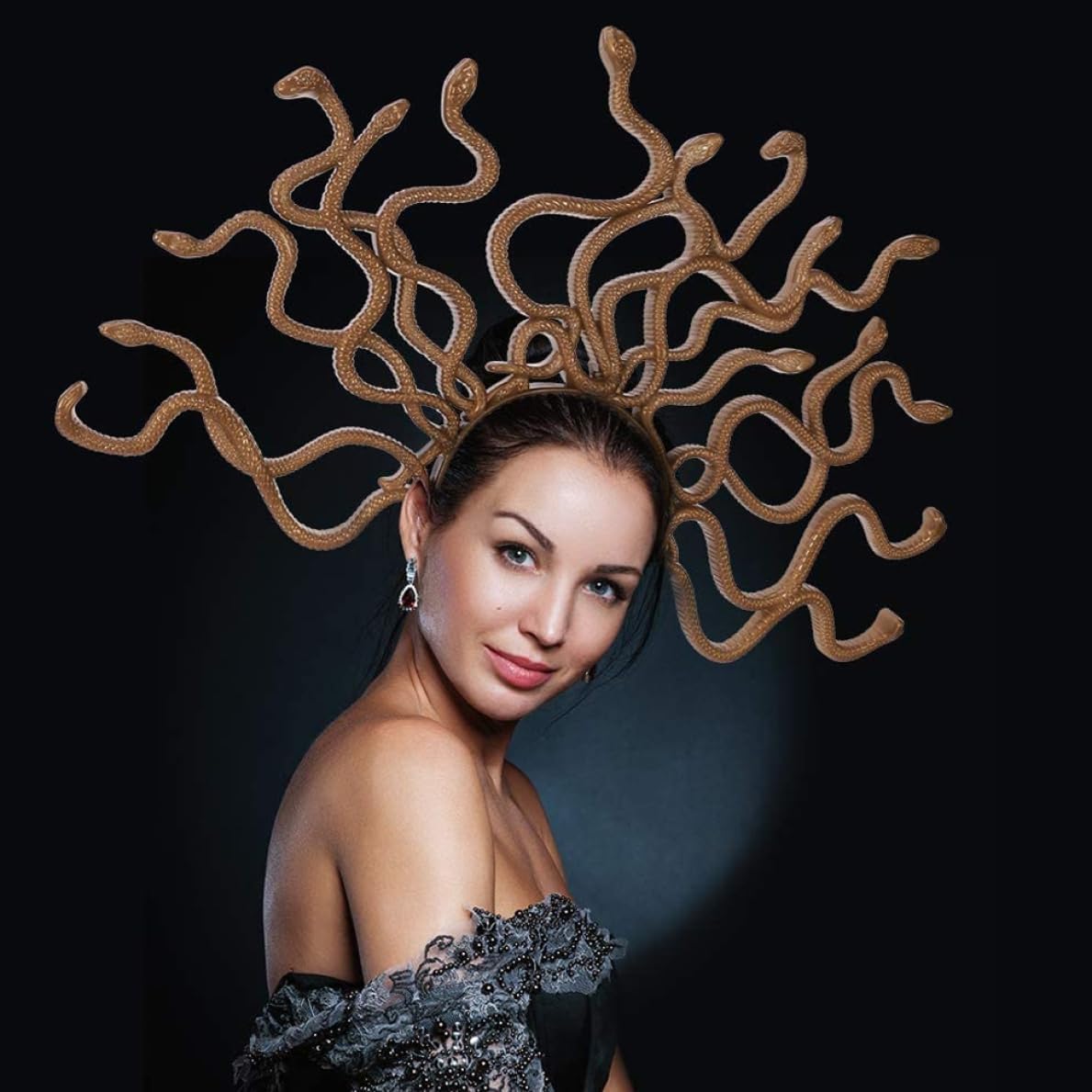 Squisita e realistica: la fascia per capelli con serpente Medusa ha dettagli intricati e un design realistico, che la rendono l'accessorio perfetto per aggiungere un tocco di realismo al tuo costume o outfit cosplay. Distinguiti dalla massa con questa fascia accattivante e che attira l'attenzione. E robusta: realizzata in plastica dura, la fascia per capelli con serpente Medusa è costruita per durare. A differenza delle alternative fragili, questa fascia non si rompe facilmente, il che la rende una scelta affidabile per molteplici occasioni e garantisce che sia un'ottima aggiunta alla tua collezione. Versatile e divertente: che tu stia partecipando a una festa in costume, a un evento di gioco di ruolo o a un raduno di Halloween, questa fascia a forma di serpente è un must. Preparati a stupire tutti con il tuo stile unico, perché questa fascia può trasformare qualsiasi outfit in un completo straordinario. Adatto a tutti: con le sue grandi dimensioni, questa fascia è progettata per adattarsi a un'ampia gamma di dimensioni della testa. Che tu sia un adulto o un bambino, puoi indossare questa fascia a forma di serpente e immergerti in un mondo di fantasia e avventura. Leggera e comoda: la fascia per capelli con serpente Medusa non è solo visivamente accattivante, ma è anche incredibilmente comoda da indossare. Realizzato con materiali leggeri, non ti appesantirà né causerà disagio, permettendoti di goderti appieno il tuo evento o festa.