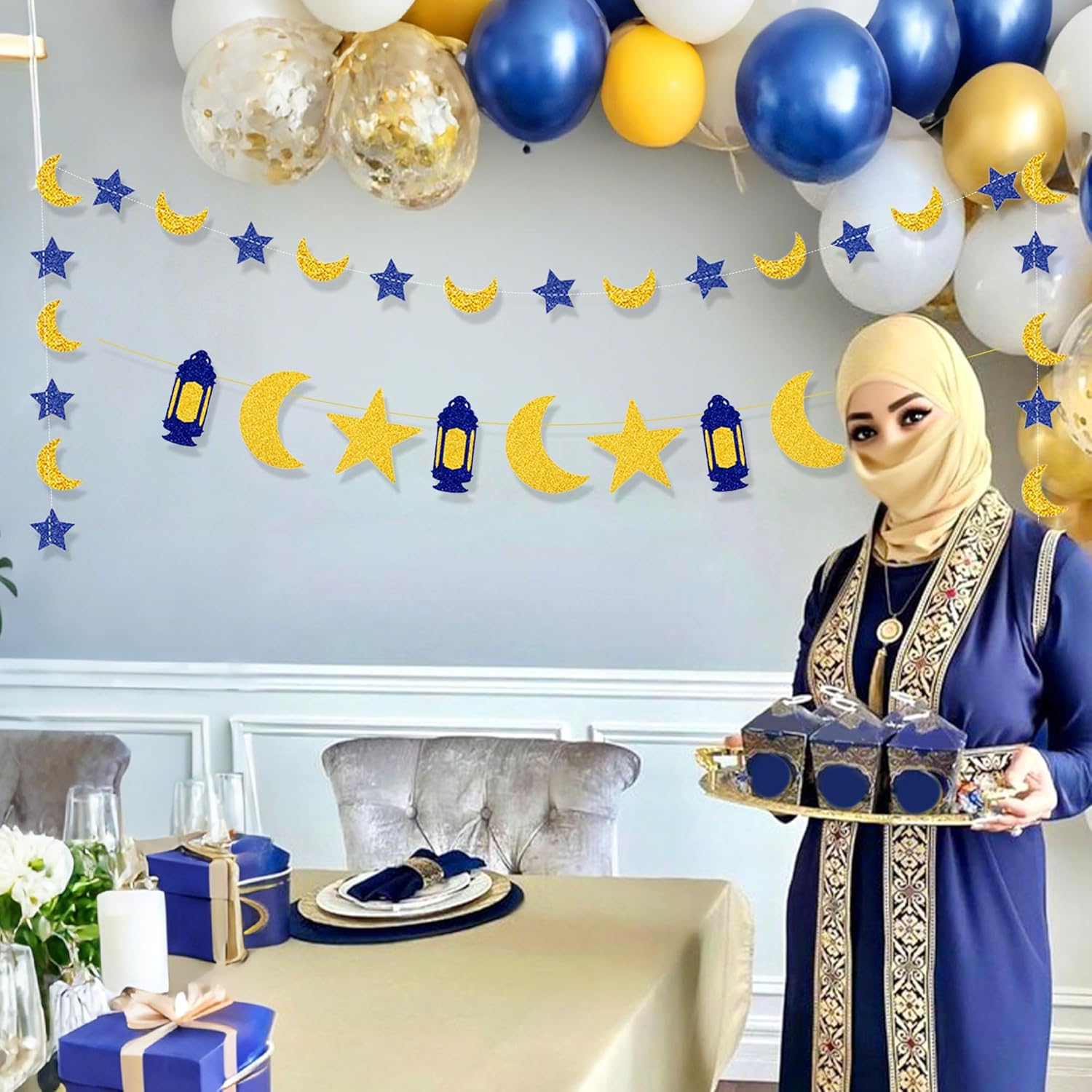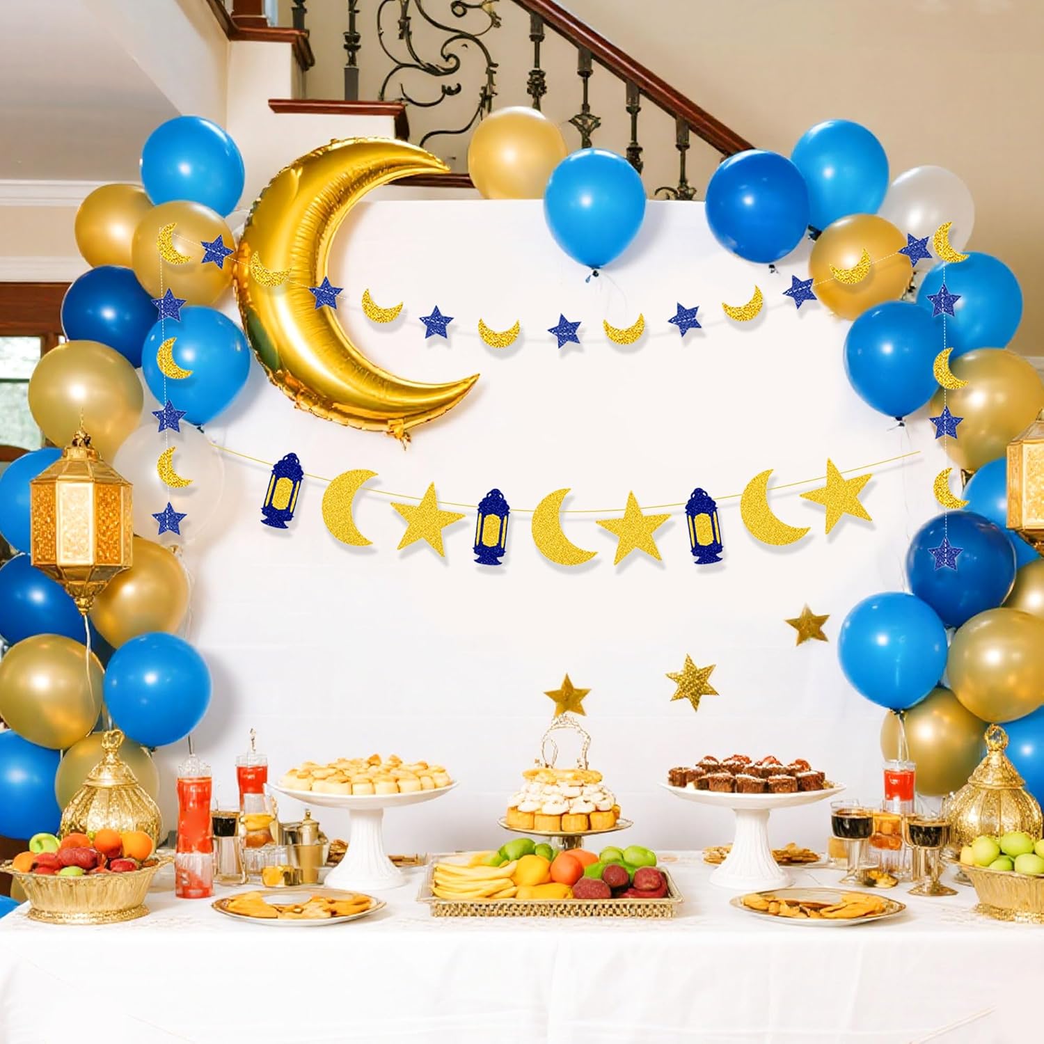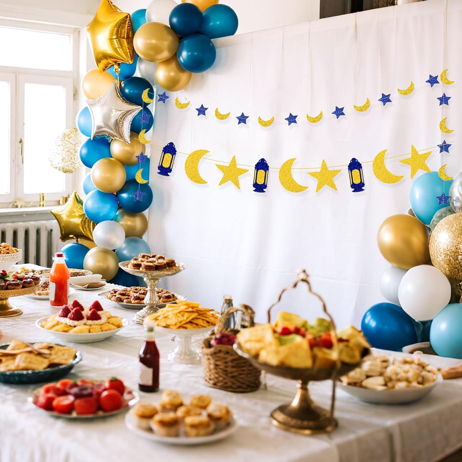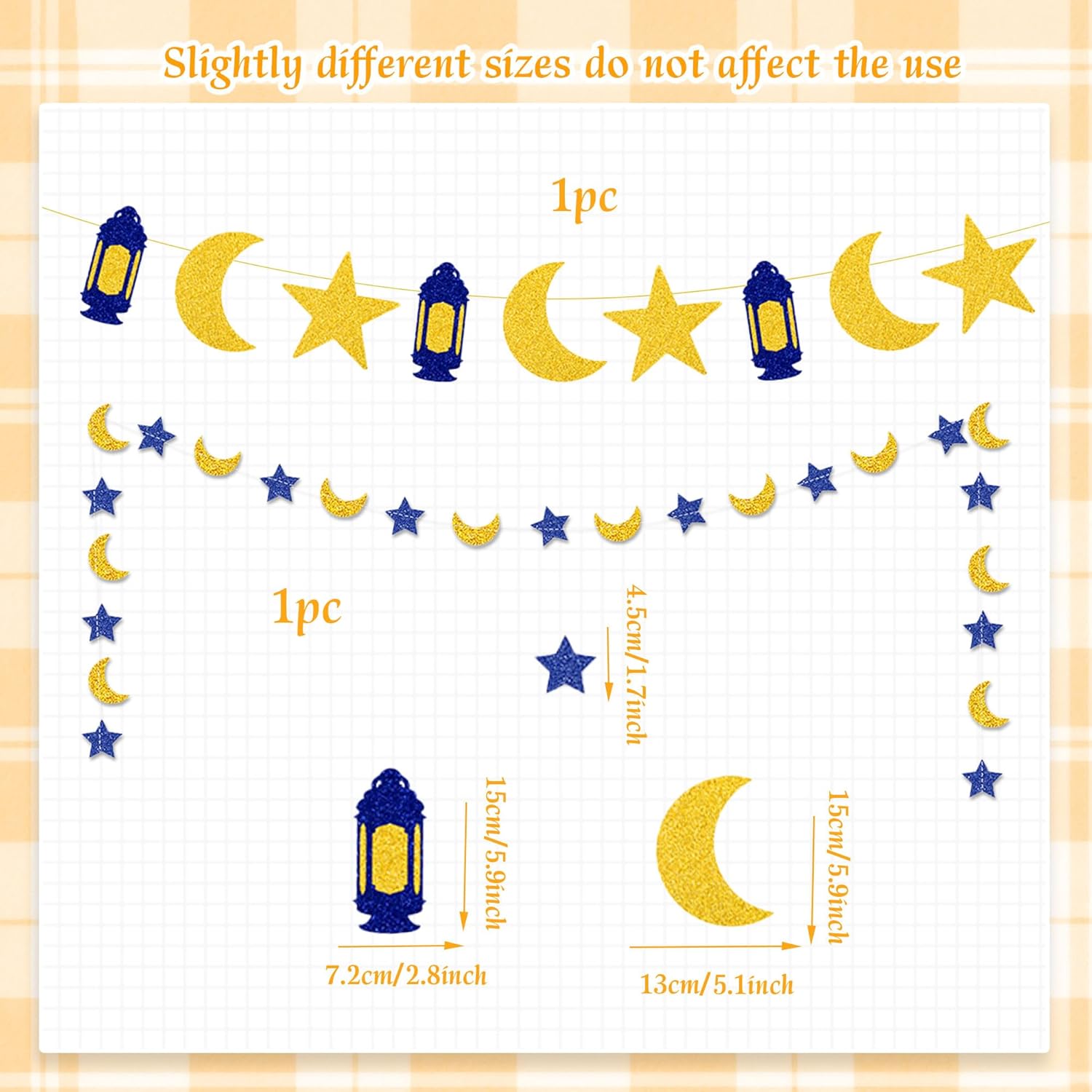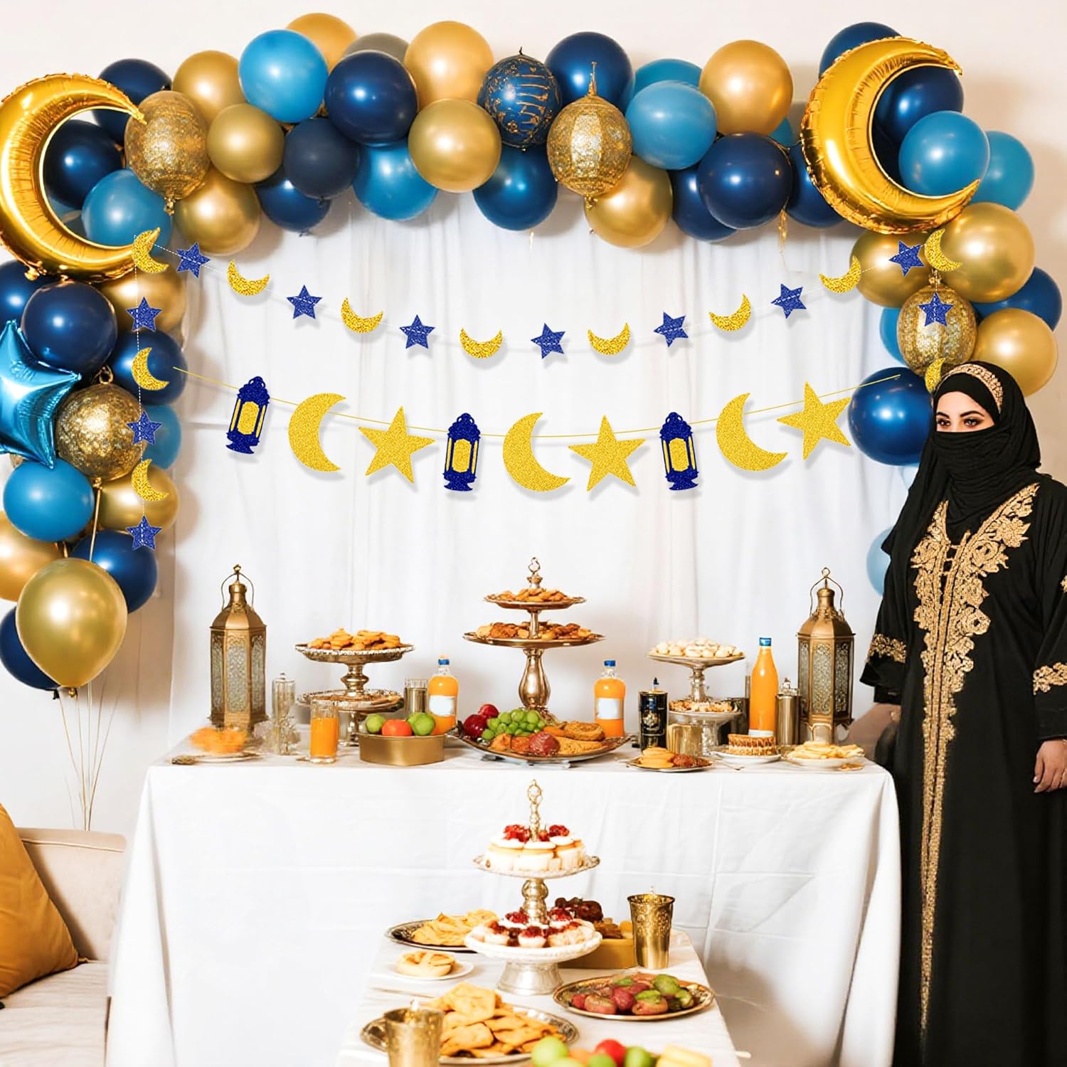 Il nostro set di decorazioni Umrah Mubarak contiene tutto il necessario per una giornata indimenticabile. Questo set di decorazioni Eid è adatto per oggetti decorativi Eid musulmani. Riceverai: 2 striscioni blu dorati sul tema dell'Eid. Progetta tu stesso le tue decorazioni per il Ramadan, le nostre decorazioni per la casa del Ramadan sono belle e divertenti. Le colorate decorazioni dorate dell'Eid rendono la festa colorata.