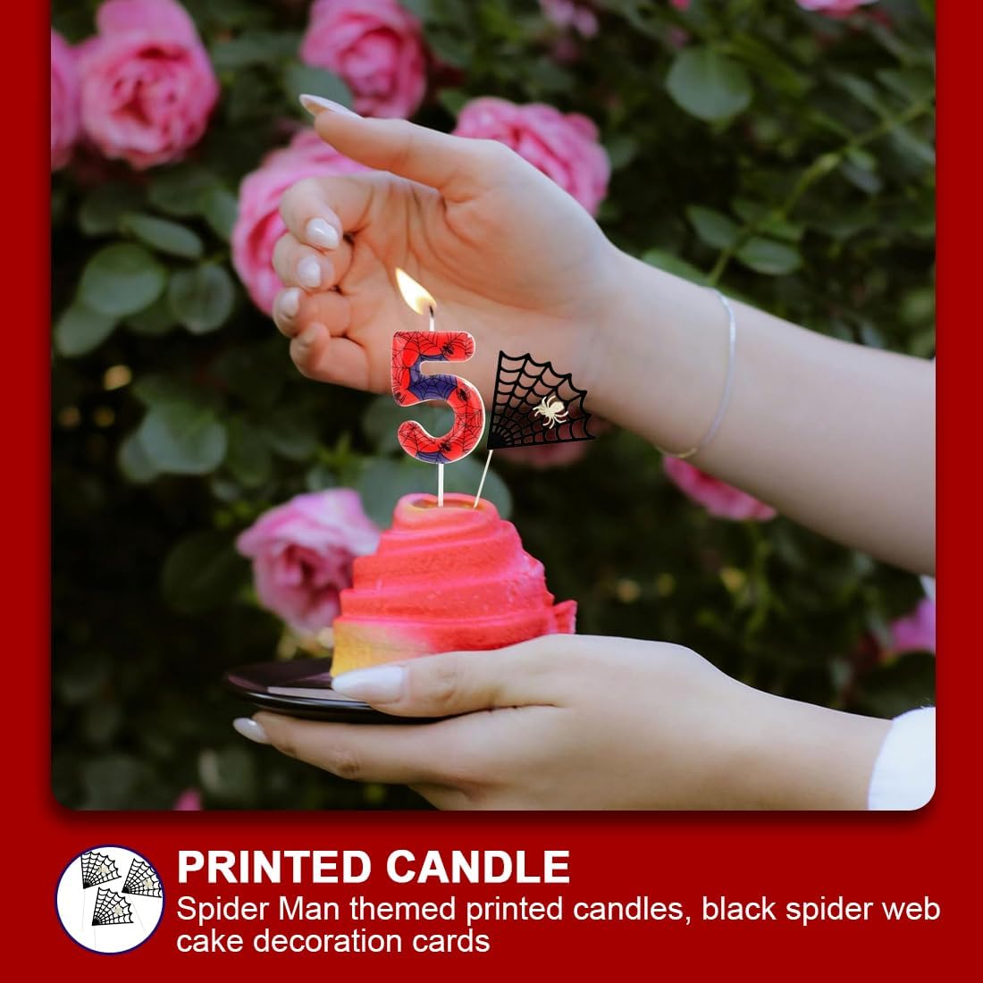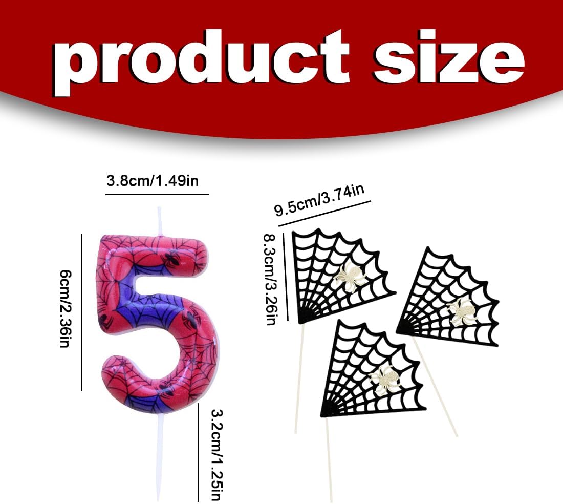Set Completo di Decorazioni per Torte Include 1 candelina a numero 5 e 3 decorazioni a ragnatela, perfette per torte di compleanno e cupcake Materiale Sicuro e Atossico Realizzate in cera di alta qualità, bruciano senza produrre fumo o gocciolamenti, ideali per feste di bambini Design Tema SpeiderMann Unico Pattern geometrico a ragnatela, adatto per decorazioni di compleanno e feste di Halloween Multiuso Decorativo Perfette non solo per torte di compleanno, ma anche per centrotavola pasquali e decorazioni natalizie creative Idea regalo perfetta per feste a tema e decorazioni per camerette