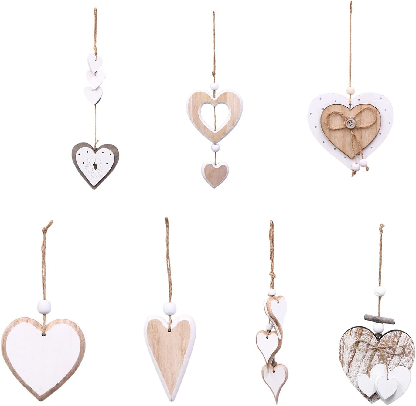 Ideali per migliorare salotti, camere da letto o area studio, queste decorazioni da appendere possono essere esposte su finestre, porte o pareti per creare un'atmosfera calda e invitante Migliora la tua decorazione con il ciondolo a forma di cuore in legno, realizzato in legno naturale, per aggiungere un tocco di romanticismo a qualsiasi ambiente Questo set di cuori in legno non è solo uno strumento decorativo, ma anche un matrimonio, San Valentino o compleanni Per decoratori artigianali e amanti dell'arte, il ciondolo a forma di cuore è essenziale per coloro che apprezzano le eleganza artigianali Il cuore in legno vanta un design elegante in legno naturale e tavolozze bianche, ideale per la decorazione