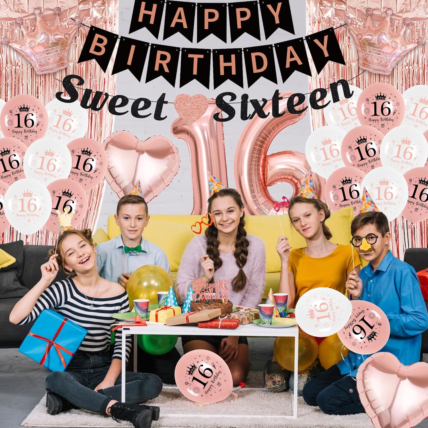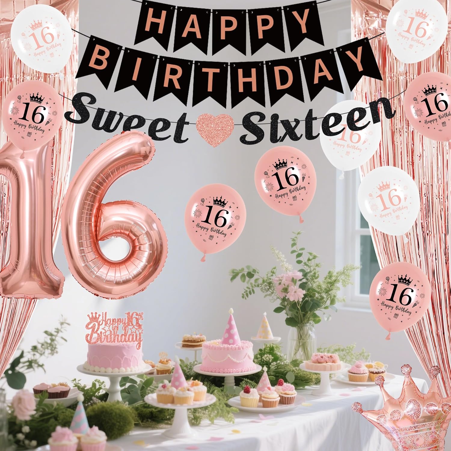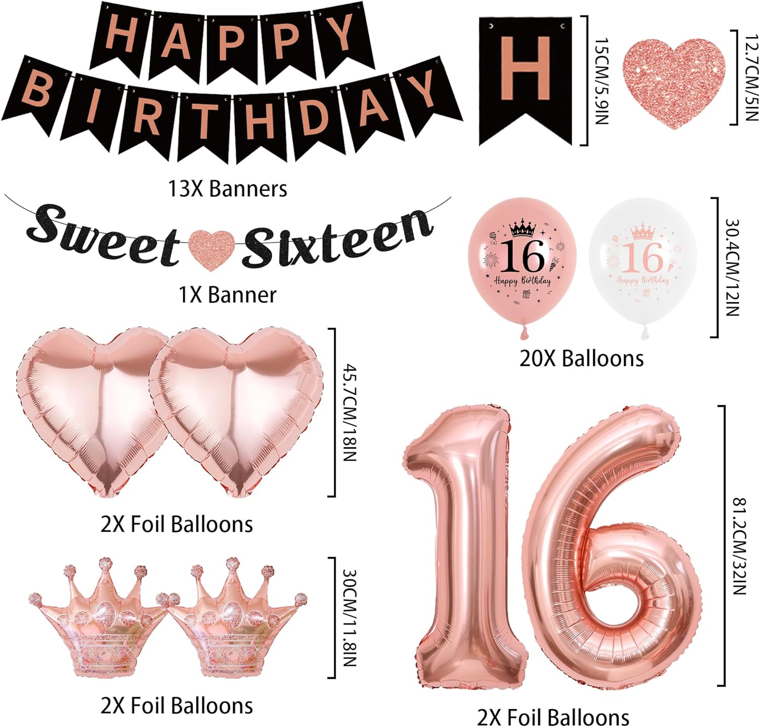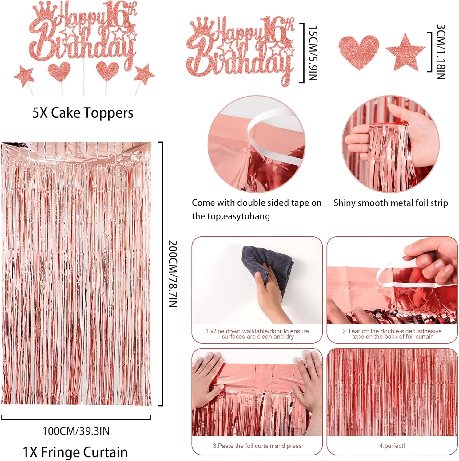 Decorazioni per il 16° compleanno: 1 striscione Sweet Seseen, 13 striscioni di buon compleanno, 2 palloncini in foil con numeri, 2 palloncini in foil a cuore, 2 palloncini in foil a forma di corona, 5 toppers per torta, 1 tenda con pom pom e 20 palloncini in lattice. Materiali: realizzate con materiali di alta qualità, le decorazioni per il 16° compleanno in oro rosa garantiscono una bellezza duratura. Dalle delicate tende con pompon ai palloncini in lattice dai colori vivaci, ogni articolo è progettato per stupire e migliorare la decorazione della tua festa. Facile da usare: i palloncini per il 16° compleanno sono leggeri e facili da trasportare, puoi attaccarli facilmente al muro o appenderli ovunque tu voglia. Puoi utilizzare le decorazioni del 16° compleanno per decorare il luogo della tua festa, regalandoti un'esperienza fantastica. Utilizzo: le decorazioni di compleanno per ragazze sono adatte per uso interno. Che si tratti di una riunione di famiglia o di una grande festa con gli amici, le decorazioni in oro rosa per il 16° compleanno creano un'atmosfera felice per il tuo decimo compleanno. Decorazioni di compleanno in oro rosa: le decorazioni per il 16° compleanno forniscono uno sfondo fotografico per le feste dei bambini. Abbinato a palloncini bianchi e oro rosa e bellissime tende con pompon, crea una romantica decorazione di compleanno