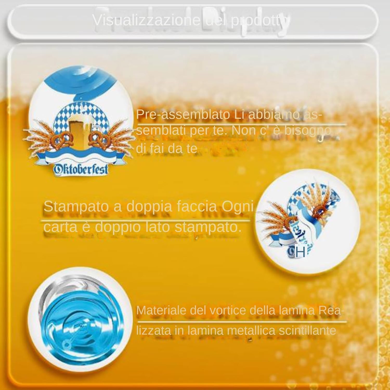 Montaggio Rapido: Ideale per appendere senza strumenti, queste decorazioni Oktoberfest offrono un processo di installazione fluido e compatibile con soffitti e pareti, riducendo significativamente il di setup e semplificando la decorazione Design a Flessibile:Migliora l'allestimento a tua festa oktoberfest con decorazioni adattabili dotate di design a che garantisce adattabilità dimensionale, perfette per eventi in giardino e permettono un controllo regolabile a lunghezza Utilizzo versatile: il tuo spazio con motivi totemici e estetica bavarese, per creare atmosfere tematiche immersive in feste e eventi, ideale come sfondo per foto e per decorazioni versatili in molteplici scenari celebrativi Tocco Festivo Longevo: Grazie alla laminazione resistente, questo articolo combatte umidità e sbiadimento preservando estetica e sicurezza in diverse condizioni esterne durante celebrazioni di ottobrefest Design a struttura rotante: Completato da schemi di colori vivaci e effetti luce-ombra dinamici, garantisce un potenziamento 'immersione tematica che crea un'atmosfera festosa e cerimoniale perfetta per le celebrazioni 'oktoberfest