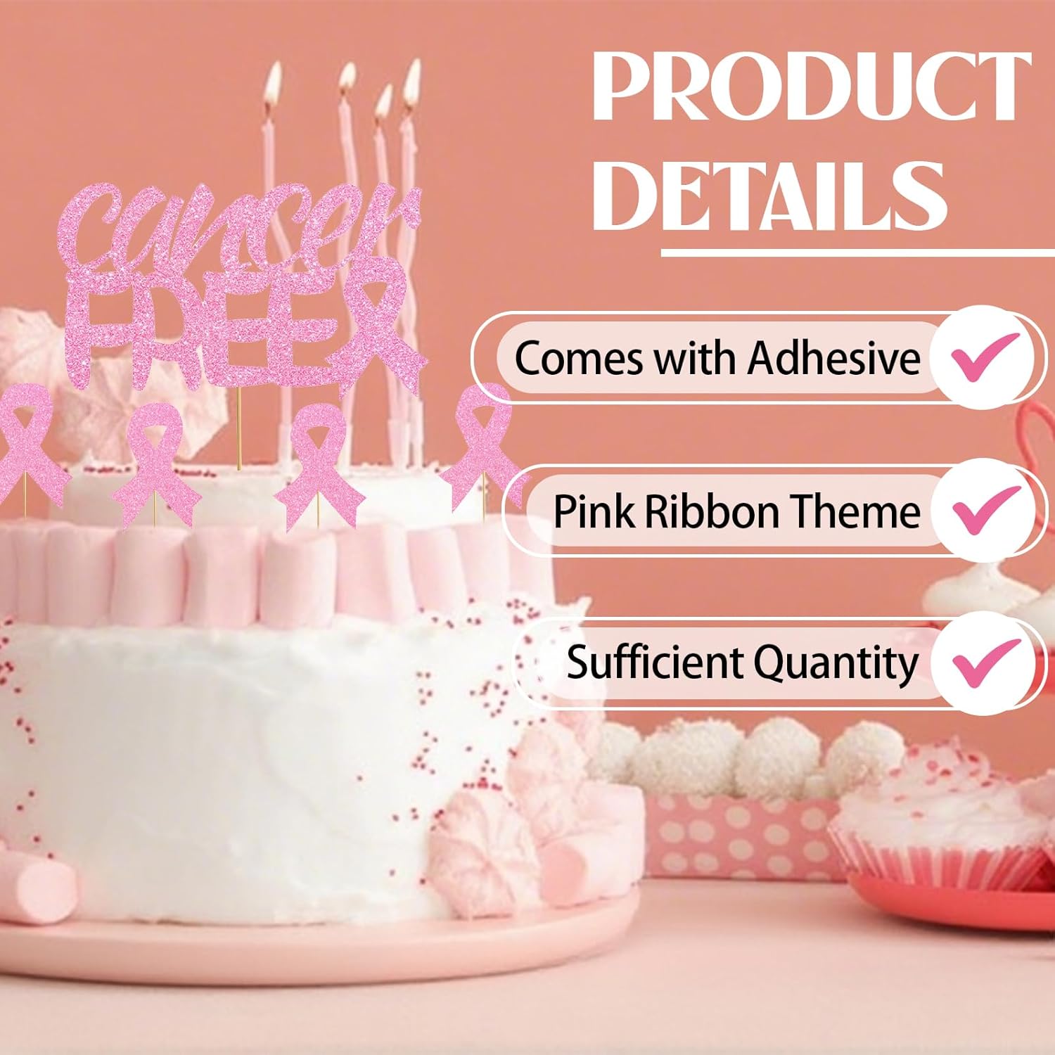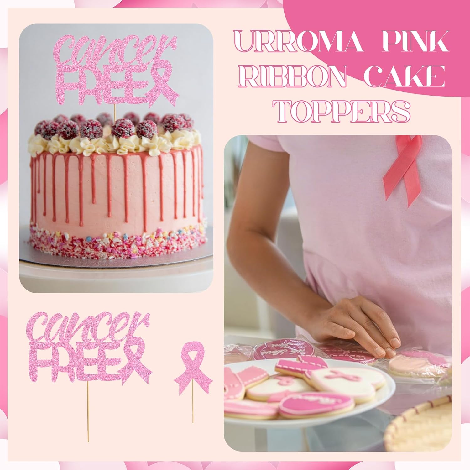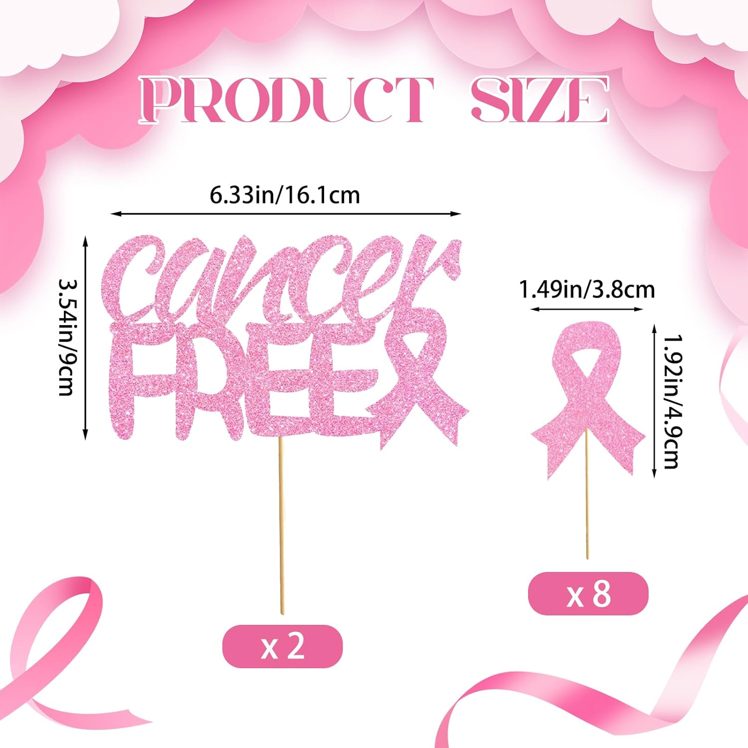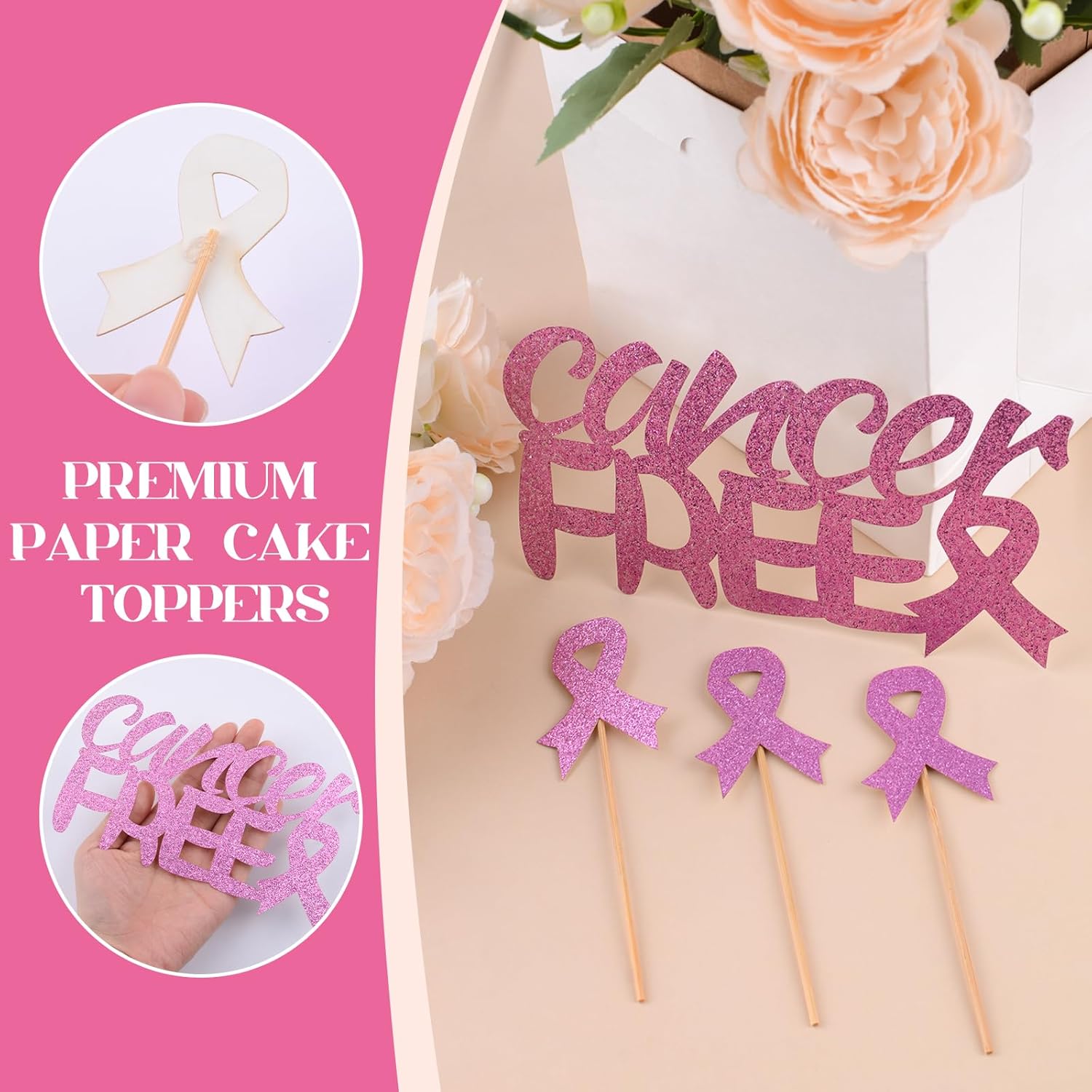 La confezione include: 2 decorazioni per torta con nastro rosa con il potente design con slogan "CANCER FREE", insieme a 8 classici plettri per torta con motivo a nastro rosa - soddisfano perfettamente tutte le esigenze di decorazione della consapevolezza del cancro al seno per vari eventi e occasioni. Materiali di qualità: questi topper dorati per cupcake sono realizzati in carta, atossici e inodore per decorare in modo sicuro le torte. Leggero, facile da trasportare e riporre. Durevole, può essere utilizzato in più occasioni, il che lo rende ecologico ed economico. Un tocco significativo per eventi di sensibilizzazione: questi plettri per cupcake con nastro rosa sono perfetti per adornare dessert durante raccolte fondi per la sensibilizzazione al cancro al seno, eventi di beneficenza o riunioni di gruppo di supporto. Che si tratti di cupcake o torte, questi topper servono come un potente simbolo di solidarietà e speranza, rendendo una dichiarazione visiva significativa in qualsiasi incontro legato alla consapevolezza. Facile da montare: progettati per un facile utilizzo, questi topper per cupcake contro il cancro al seno sono dotati di punti adesivi per un montaggio senza problemi. Basta attaccarlo e posizionarlo nei tuoi dessert per una decorazione istantanea. Il design accattivante del nastro rosa assicura che i tuoi dolci promuovano magnificamente la consapevolezza del cancro al seno in qualsiasi evento. Decorazione per tutte le occasioni: perfetti per decorare tutto, dai piccoli cupcake alle torte di celebrazione, questi topper in nastro rosa creano display significativi su tutti i dessert. Il loro design universale diffonde speranza e solidarietà sia che venga utilizzato in grandi eventi di beneficenza o riunioni di sostegno intime.
