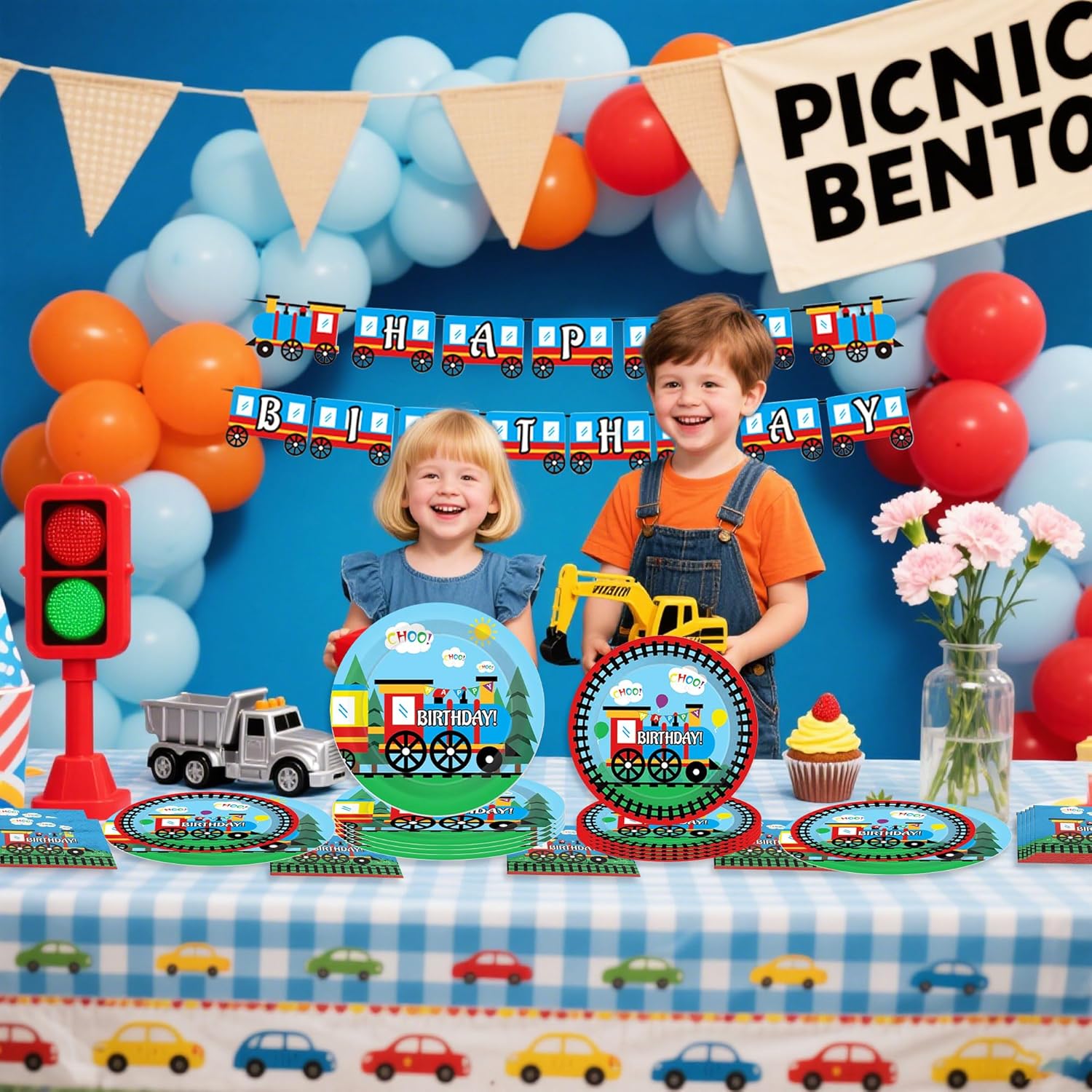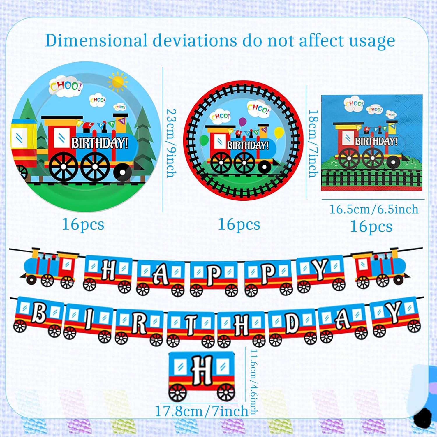 Set completo per celebrare il treno: Questa collezione pronta all'uso Train Party include tutto il necessario per creare un evento coeso a tema trasporto, dalle stoviglie all'arredamento della parete, tutti con disegni locomotivi che delizieranno i giovani ingegneri Pacchetto essenziale per feste: Riceverai 16 tovaglioli a tema compleanno a tema treno, piatti a tema compleanno treno da 40,6 x 22,9 cm, piatti a tema compleanno treno da 40,6 x 17,8 cm e 1 striscione "Happy Birthday", tutti progettati come forniture per feste che semplificano la pianificazione creando un'atmosfera coinvolgente avventura in treno per il bambino di compleanno Centrotavola audace: Lo straordinario Banner mostra con orgoglio "HAPPY Birthday" in allegre scritte a tema treno, trasformando istantaneamente qualsiasi stanza in un paese delle meraviglie Vehicle Boy quando appeso sopra l'area di celebrazione Coordinamento a tema: ogni elemento in questo set di decorazioni porta modelli di treno abbinati, garantendo armonia visiva tra i piatti, i tovaglioli e lo striscione per una presentazione di feste in stile professionale Stoviglie adatte per uso per feste: il set contiene 32 piatti (entrambi da 22,9 cm e 17,8 cm) e 16 tovaglioli. con design resistenti che resistono alle sbavature della torta di compleanno e alle macchie di spaghetti mantenendo la grafica del treno