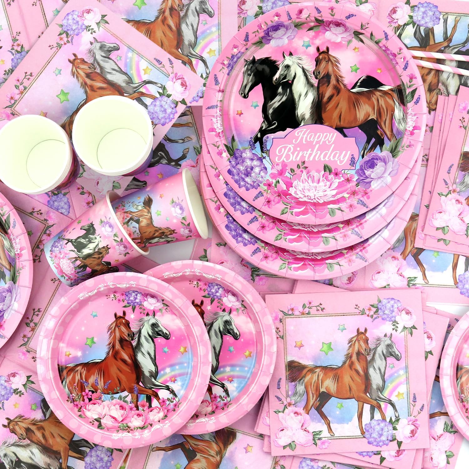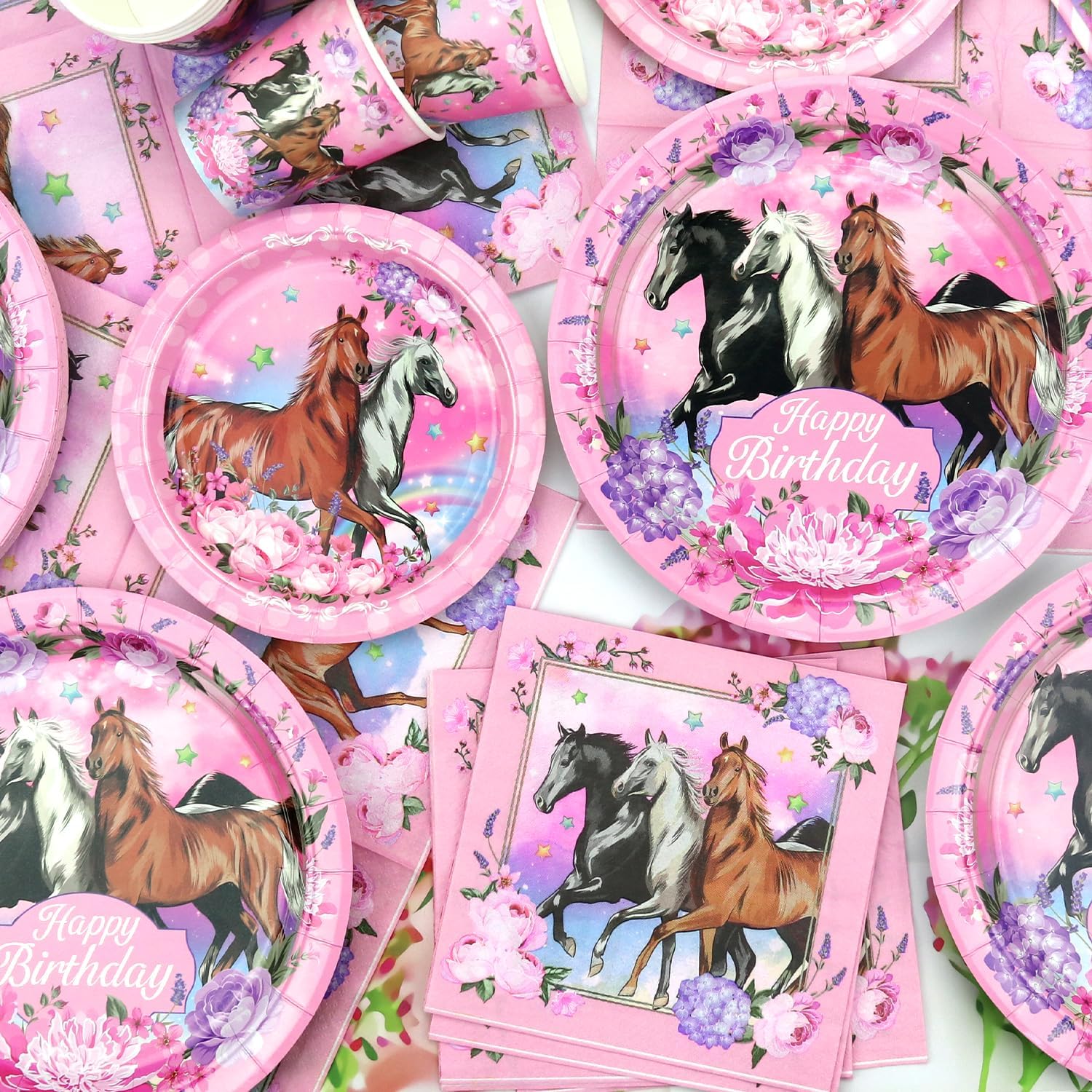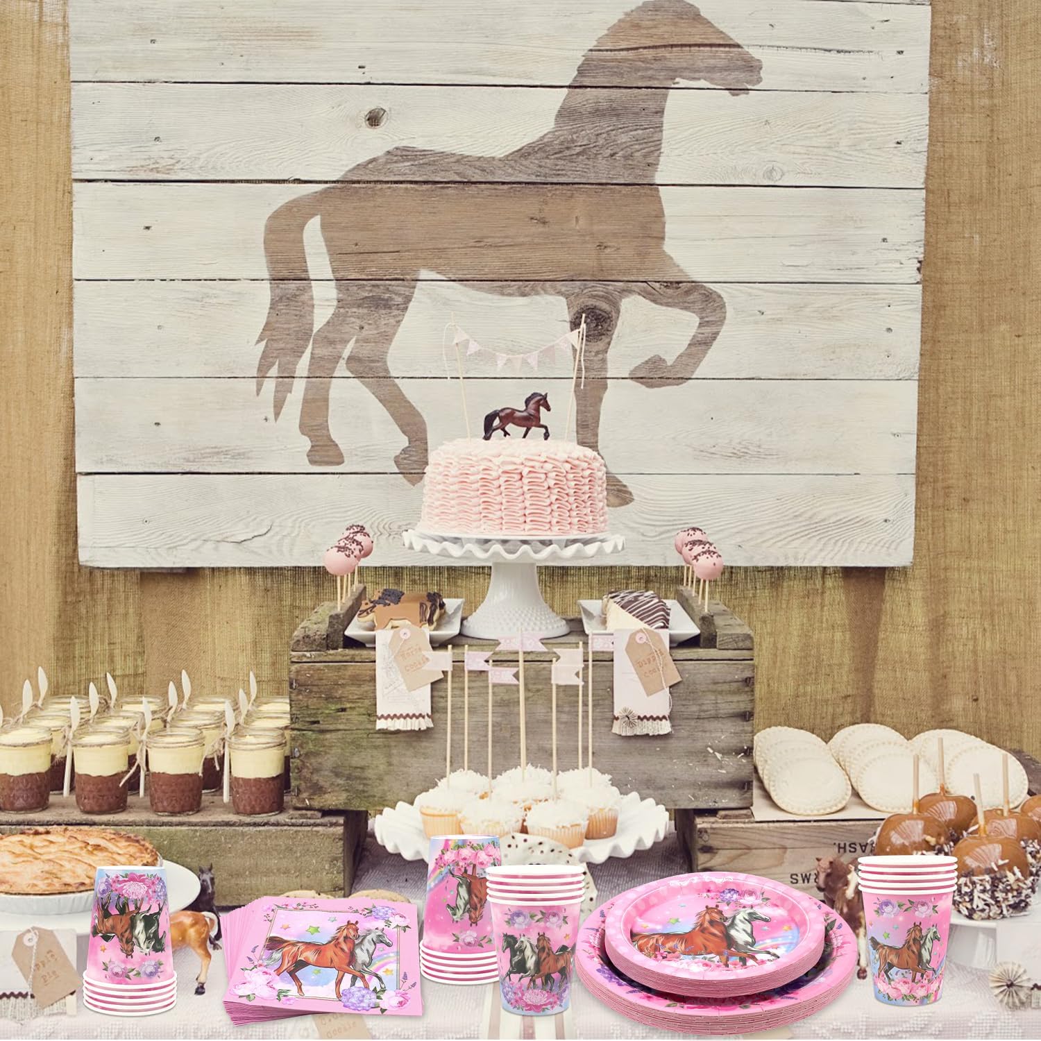 Set di stoviglie per feste di cavallo: riceverete 20 piatti piani da 9" + 20 piatti da dessert da 7" + 20 bicchieri di carta da 9 oz + 20 tovaglioli. Design unico: unico design rosa cavallo con motivi chiari e colori vivaci può rendere la festa più unica e aumentare l'atmosfera della festa. Ben fatto: il set di stoviglie per feste a cavallo è realizzato in carta ecologica, riciclabile, resistente che non si piega, non si spezza o si rompe. (Nota: si prega di non mettere piatti e tazze nel forno a microonde) Facile da pulire e risparmiare tempo: puoi facilmente organizzare una festa di compleanno per cavalli che stupirà i tuoi ospiti. Basta gettarli nella spazzatura dopo l'evento, in questo modo puoi dedicare più tempo per goderti la festa e accompagnare la tua famiglia, gli amici e gli ospiti. Occasioni adatte: le decorazioni a tema a tema Cartoon Horse sono adatte per feste di compleanno per bambini, feste a tema cavallo, feste di compleanno, feste di parco, cene aziendali, picnic e molto altro ancora.
