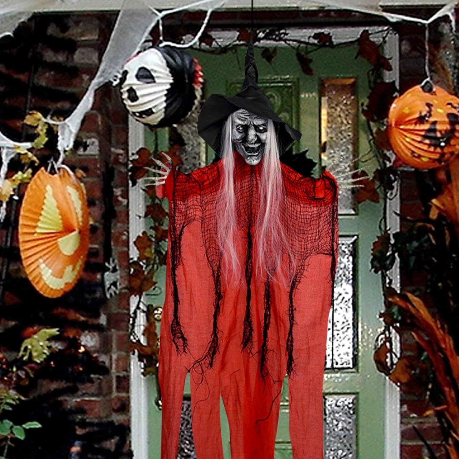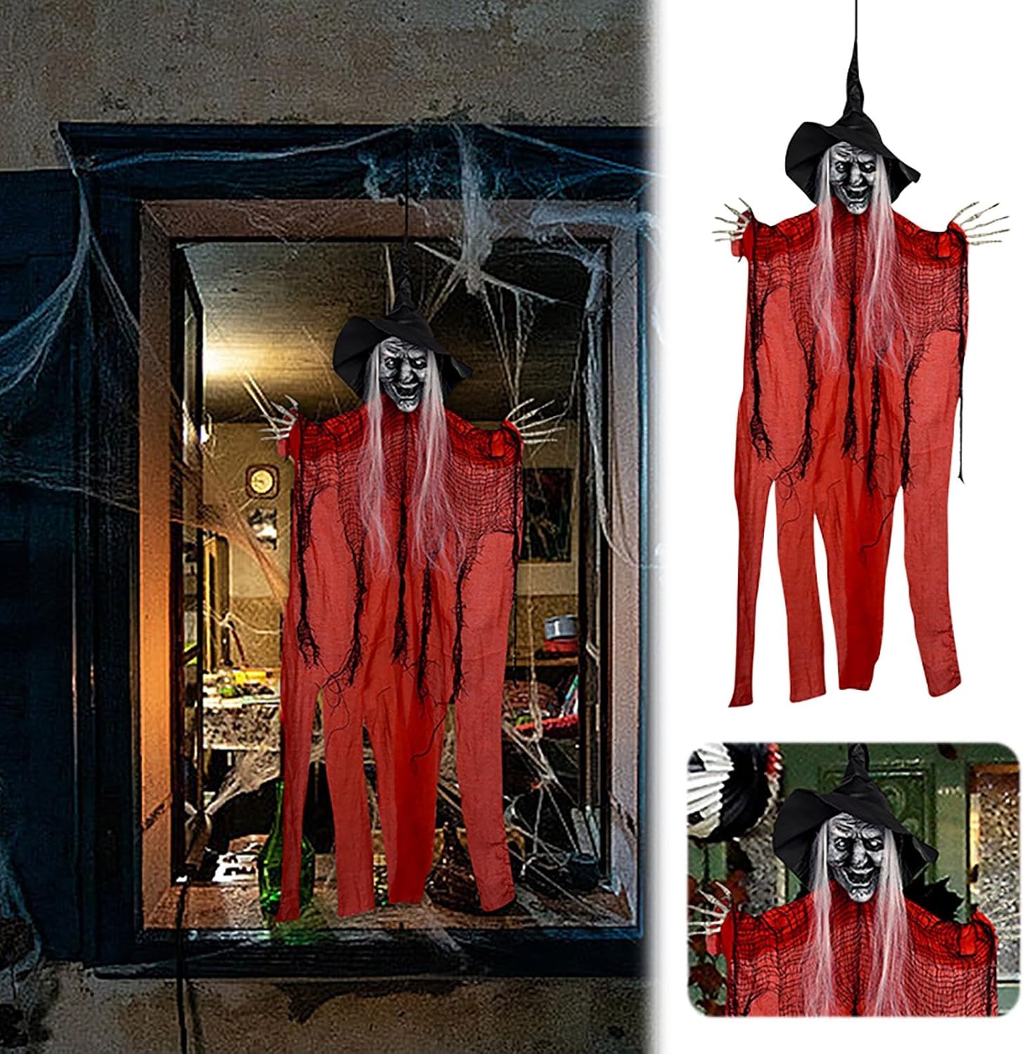 Materiali di alta qualità: la nostra decorazione per Halloween è realizzata in schiuma, plastica e tessuto di alta qualità. Può essere riutilizzato nel prossimo Halloween. Il corpo è tagliato in pesi leggeri, ondeggiando con il vento durante l'avvolgimento. Design e aspetto unici: le decorazioni da appendere sono decorate con strani volti di scheletro, cappelli da strega alti, mantelli che possono volare nel vento e braccia lunghe che possono essere posizionate e mantenute in posizione. Una perfetta strana atmosfera per Halloween. Set decorativo a sospensione per Halloween: la decorazione da appendere include 3 streghe a sospensione con tre diversi colori. Ogni strega ha circa 96 cm. Il Creepy è oggetti di scena di Halloween, che sicuramente spaventerà i tuoi amici. Braccia regolabili e facile da usare: c'è una corda cucita sulla parte superiore dello scheletro raccapricciante, puoi appenderlo in qualsiasi luogo tu voglia. Quando si vola verso gli ospiti, il braccio può essere regolato e posizionato nella parte anteriore, o posizionato sul lato quando si galleggia in aria. Grande decorazione di Halloween: lo scheletro di Halloween non è adatto per la decorazione di Halloween interna, ma anche per la decorazione esterna. Basta appendere queste mietitrebbie sospese in ingresso, portico, albero, finestre, pareti e cortili per creare un'atmosfera per le tue attività di Halloween.