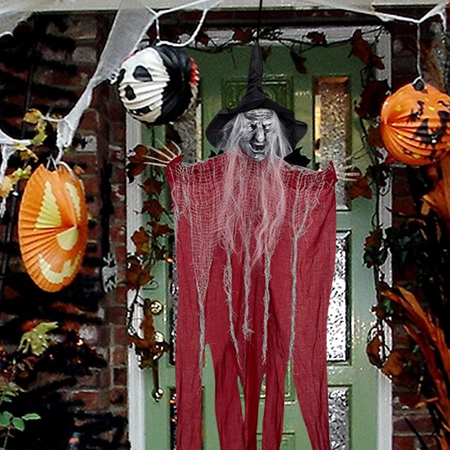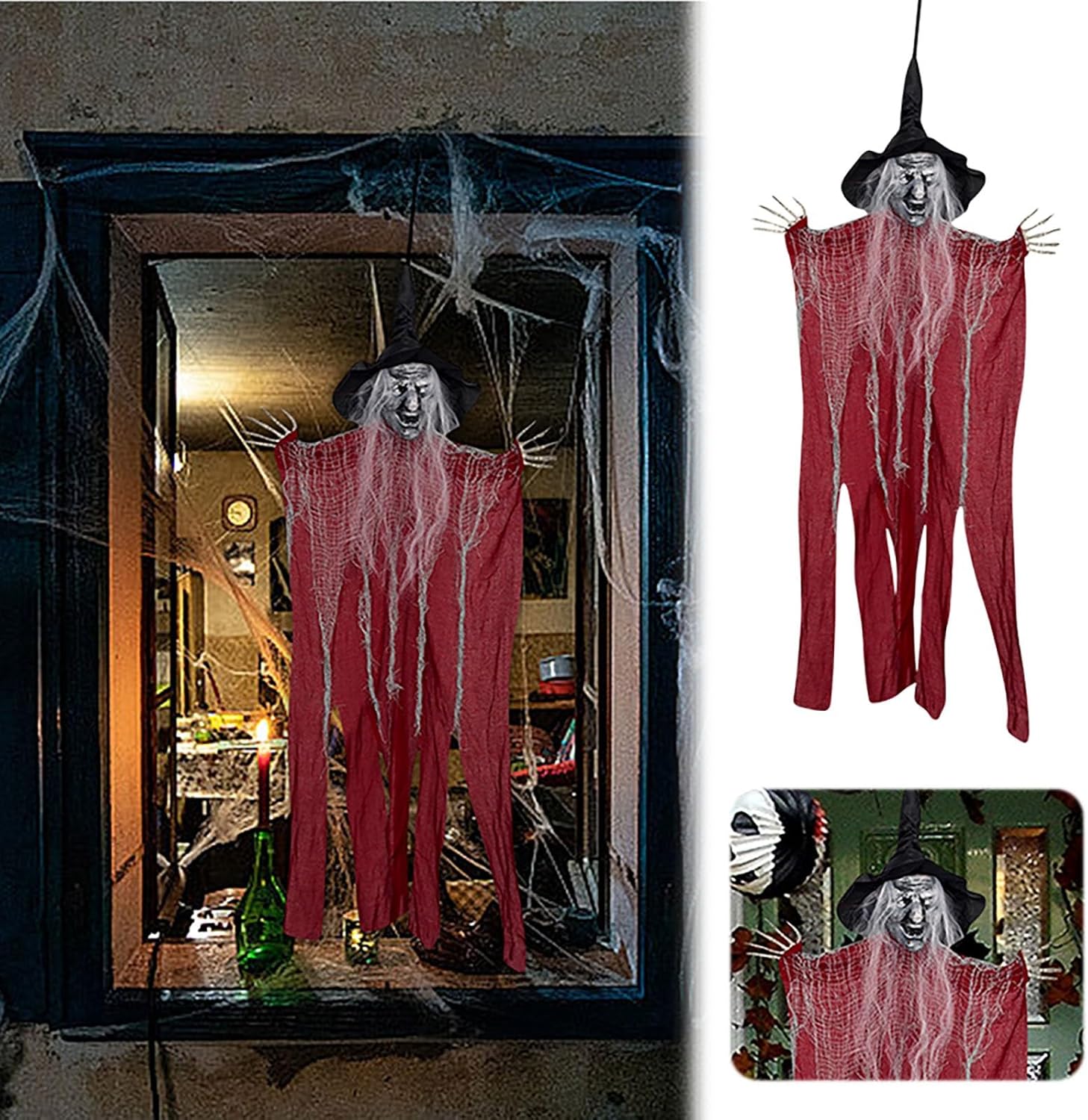 Materiali di alta qualità: la nostra decorazione per Halloween è realizzata in schiuma, plastica e tessuto di alta qualità. Può essere riutilizzato nel prossimo Halloween. Il corpo è tagliato in pesi leggeri, ondeggiando con il vento durante l'avvolgimento. Design e aspetto unici: le decorazioni da appendere sono decorate con strani volti di scheletro, cappelli da strega alti, mantelli che possono volare nel vento e braccia lunghe che possono essere posizionate e mantenute in posizione. Una perfetta strana atmosfera per Halloween. Set decorativo a sospensione per Halloween: la decorazione da appendere include 3 streghe a sospensione con tre diversi colori. Ogni strega ha circa 96 cm. Il Creepy è oggetti di scena di Halloween, che sicuramente spaventerà i tuoi amici. Braccia regolabili e facile da usare: c'è una corda cucita sulla parte superiore dello scheletro raccapricciante, puoi appenderlo in qualsiasi luogo tu voglia. Quando si vola verso gli ospiti, il braccio può essere regolato e posizionato nella parte anteriore, o posizionato sul lato quando si galleggia in aria. Grande decorazione di Halloween: lo scheletro di Halloween non è adatto per la decorazione di Halloween interna, ma anche per la decorazione esterna. Basta appendere queste mietitrebbie sospese in ingresso, portico, albero, finestre, pareti e cortili per creare un'atmosfera per le tue attività di Halloween.