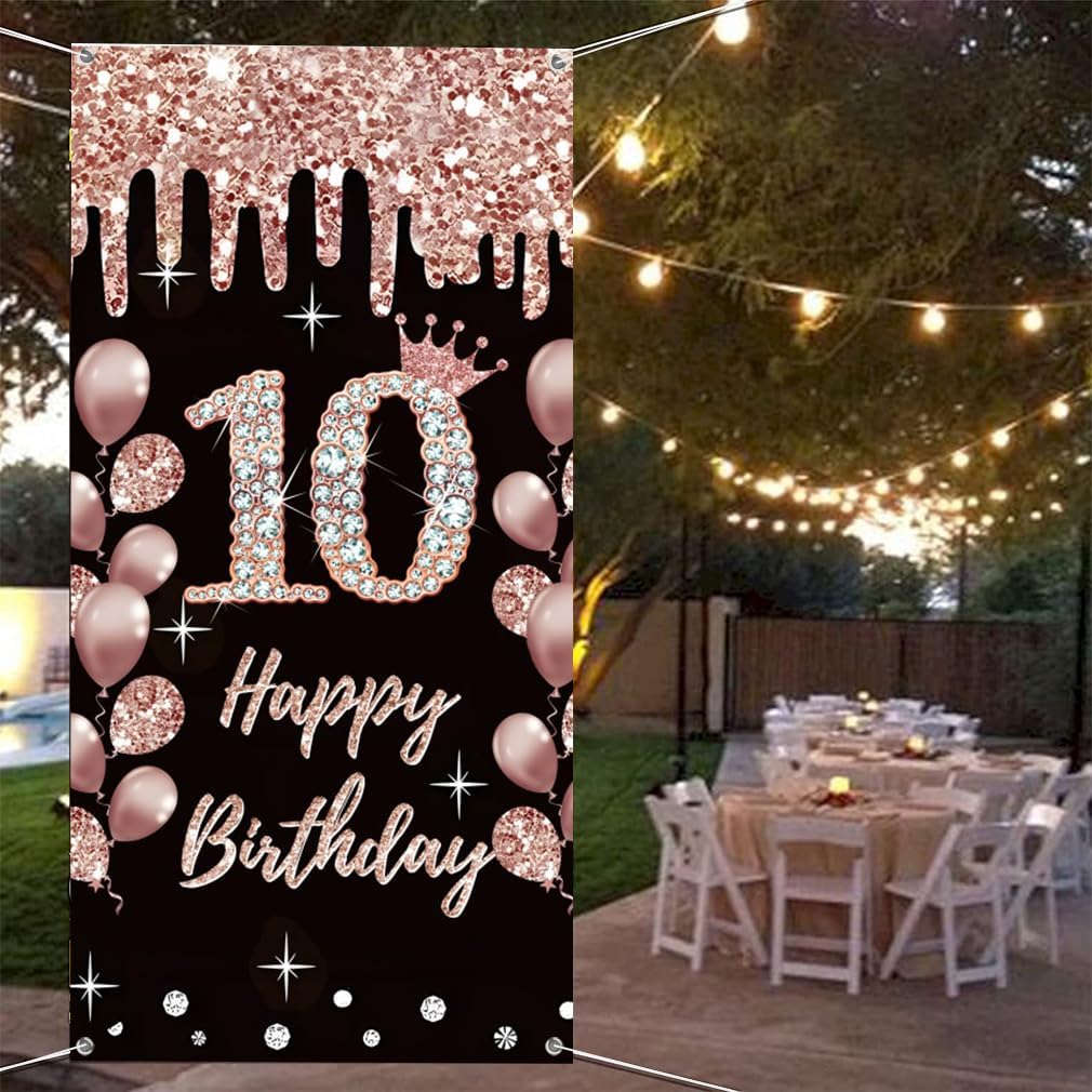 ❤️ Design elegante: striscione di buon 10° compleanno con pois rosa glitterati e corona, adorabile sfondo per la festa di compleanno. Materiale durevole: realizzato in vinile, durevole e resistente agli strappi, stampa digitale ad alta risoluzione con dettagli accattivanti e colori realistici. ❤️ Dimensioni adatte: 90 cm x 180 cm, può essere utilizzato come sfondo per la festa del decimo compleanno, poster di benvenuto, decorazione da tavola, cake topper, carta da parati, tovaglia, tenda o cartello di ricevimento, adatto per uso interno o esterno. ❤️ Facile da configurare: sfondo per festa di compleanno con occhielli in rame sui 4 angoli, basta appenderlo attraverso l'anello di tenuta in rame (poper non incluso). Puoi anche attaccarlo al muro o alla finestra con del nastro adesivo. ❤️ Ottimo regalo di compleanno: questo bellissimo poster illuminerà la festa di compleanno e farà una profonda impressione sugli ospiti. Si prega di notare che i palloncini non sono inclusi nella confezione.