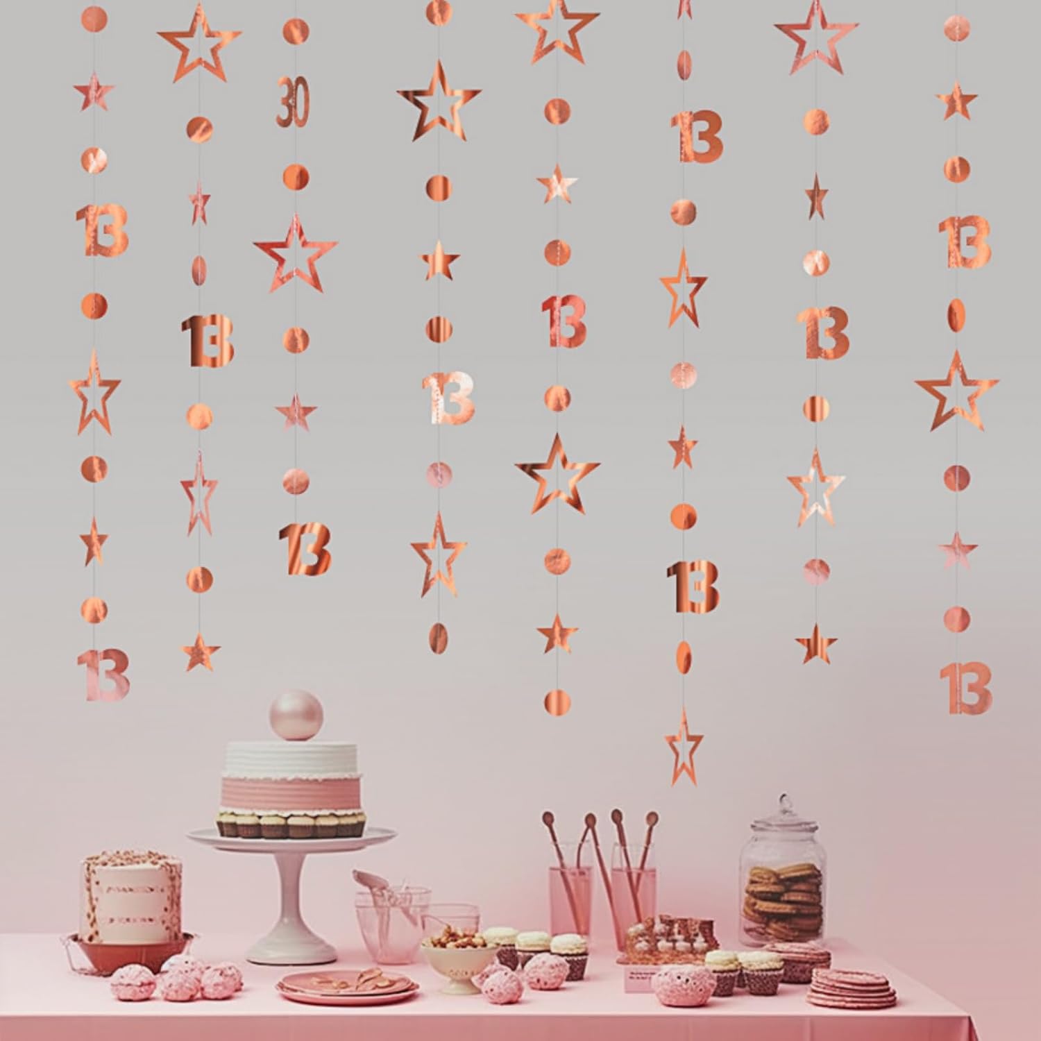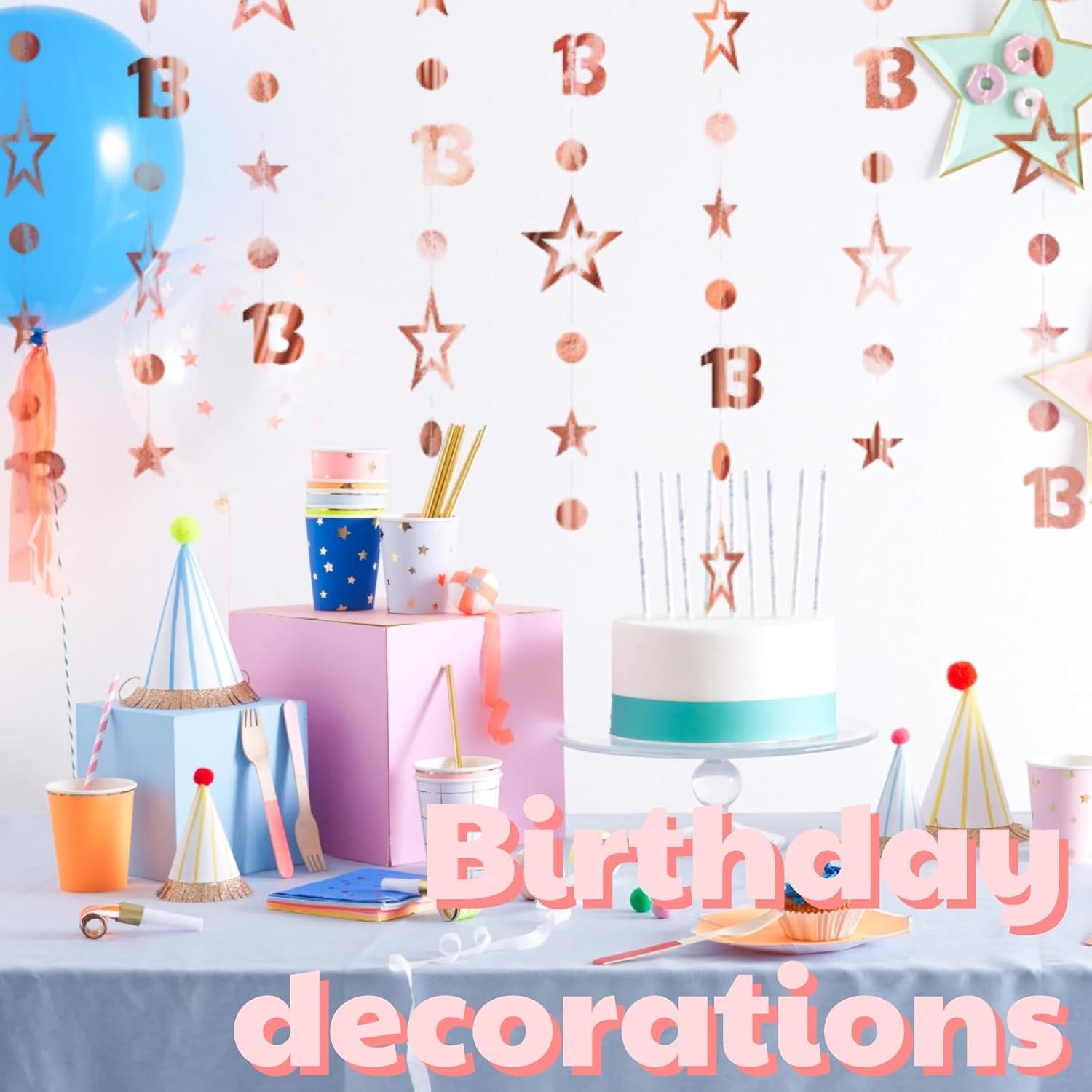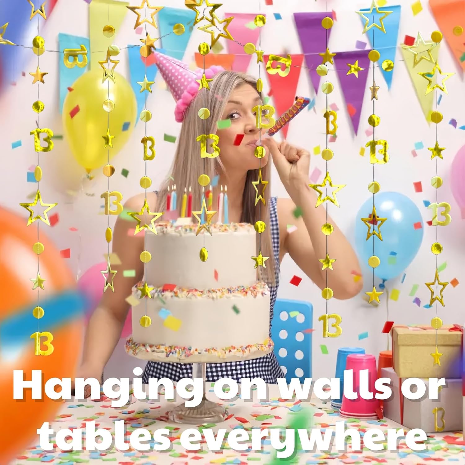 Decorazioni per il 13° compleanno, lungo 3 metri, striscione per il 13° compleanno, striscione per decorazioni per 1/3 di nascita/giorno, stelle filanti dorate appese, decorazione per la doccia del bambino/a, B