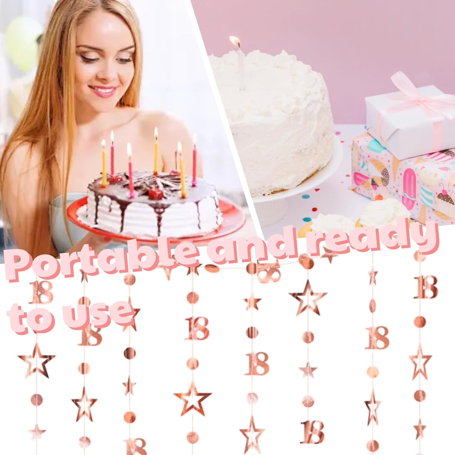 Caratteristiche delle decorazioni per feste di compleanno: 1. Questo striscione di buon compleanno è una soluzione completa ed elegante. 2. Lo striscione di compleanno è realizzato con carta glitterata di qualità. 3. Questa decorazione per il 18° compleanno è molto efficace nel creare un'atmosfera festosa per la tua festa. 4. L'uso della decorazione di compleanno è semplice e diretto.