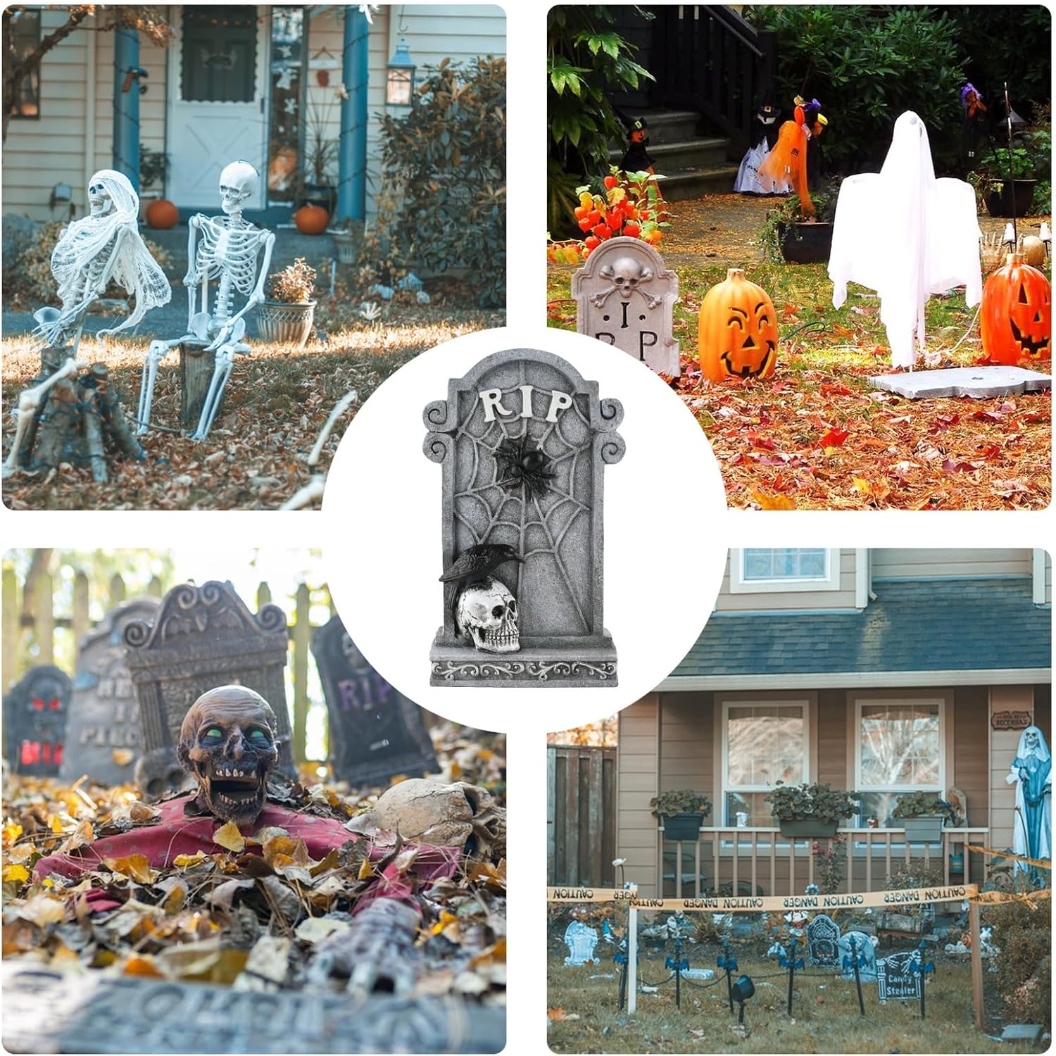 【Durabilità all'aperto】 Progettate pensando alla durabilità, queste decorazioni per lapidi combinano materiali di alta qualità e struttura resistente agli agenti atmosferici per garantire che rimangano impermeabili e possano essere riutilizzate per molti Halloween a venire. Decorazione paesaggistica: ottieni l'esposizione ideale organizzando scene spettrali per garantire un tema spettrale del cimitero che illuminerà qualsiasi festa di Halloween. area Lapidi che attirano l'attenzione: progettate con un tema di Halloween incredibilmente bello e dettagli intricati, queste lapidi sono realizzate per migliorare l'attrattiva del marciapiede e creare esposizioni stagionali indimenticabili Atmosfera spettrale: offrendo un tocco horror classico, queste lapidi sono realizzate per migliorare l'atmosfera spettrale all'interno e all'esterno Migliora lo spazio esterno e fornisce un'aggiunta ideale alle tue esigenze di decorazione di Halloween