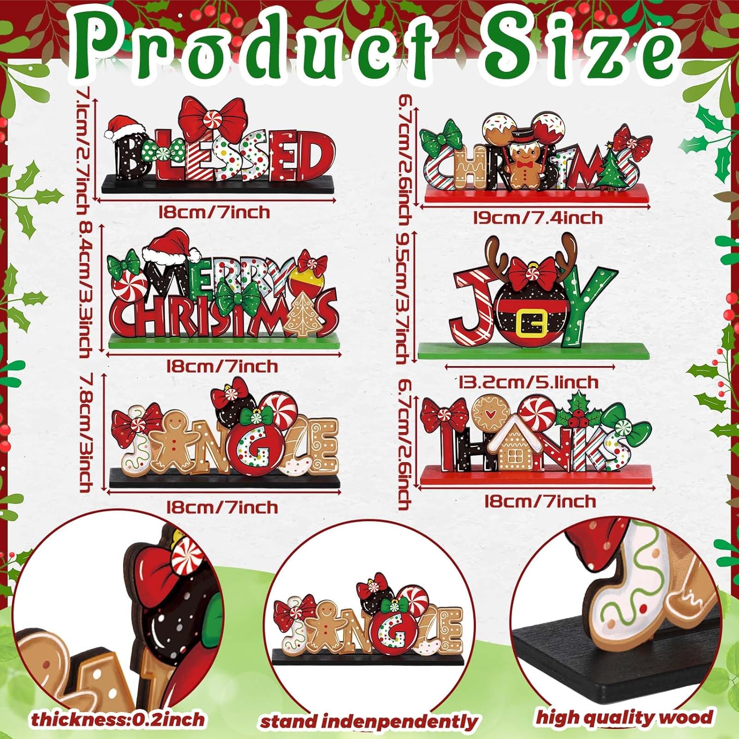 Contenuto della confezione: Riceverai 6 diversi modelli di decorazioni per la tavola di Natale, sufficienti per soddisfare le tue esigenze di decorazione e rendere la tua festa a tema natalizio un punto caldo. Il design è particolare, pieno di creatività, forma e caratteri attraenti, fa brillare gli occhi delle persone, emana una forte atmosfera festosa. Materiale di qualità: i nostri centrotavola natalizi sono realizzati in legno, leggeri, non tossici, insapore, impermeabili e non facili da sbiadire. Ogni decorazione è dotata di una base in legno, che può essere posizionata stabilmente sul tavolo. Questi centrotavola per feste di Natale offrono un'esperienza deliziosa per la tua famiglia. Facile da usare: basta inserire il cartello della tavola di Natale nella base in legno e puoi creare un effetto espositivo bello ed elegante. È facile da riporre ed esporre senza occupare molto spazio, aggiungendo colore e divertimento alla tua casa. Sebbene siano leggeri, è improbabile che cadano e possono reggere saldamente su molte superfici piane. Tema natalizio classico: la nostra decorazione in legno adotta il classico design a tema natalizio, stampato con cappello di Babbo Natale, pan di zenzero, fiocco, renna, caramelle, albero di Natale, ecc. Abbinabile a testi come [Blessed], [Christmas], [Merry Christmas], [Joy] e [Grazie], è carino e accattivante, donando un aspetto rustico e rustico. Ampia applicazione: queste decorazioni natalizie per la tavola in legno sono adatte a tutti i tipi di applicazioni, comprese le decorazioni natalizie in soggiorno, cucina, camera da letto, bar, tavolo da pranzo, caminetti, scaffali, ecc., che aggiungono un'atmosfera festosa a qualsiasi incontro festivo. La nostra decorazione per la tavola di Natale in legno è anche un regalo ideale per le vacanze