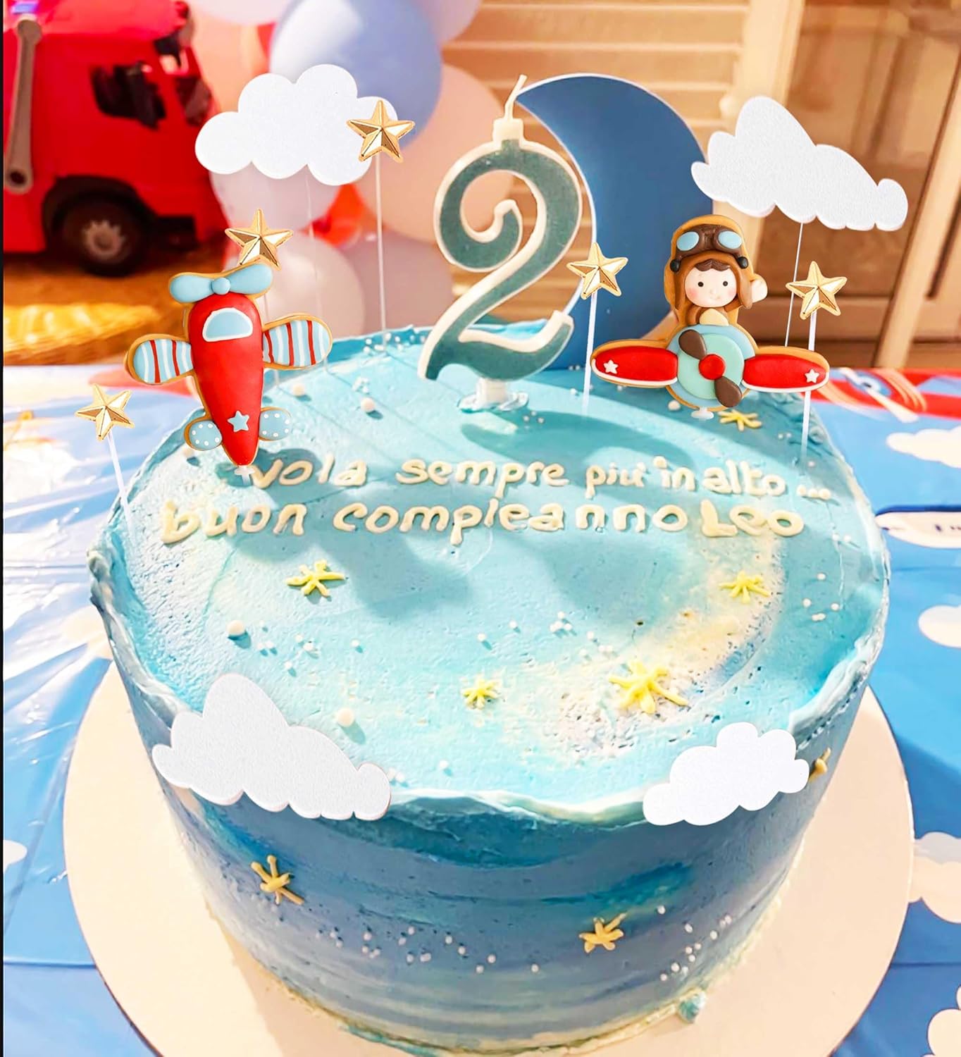 Il nostro set per decorare la torta con l'aeroplano ha tutto il necessario per rendere questa giornata fantastica. Questo set di decorazioni per torta con aeroplano può essere utilizzato per qualsiasi festa di compleanno. Otterrai: 1x decoratore per torta aereo, 1x decoratore per torta pilota, 5x decoratori per torta con pentagramma, 6x decoratori per torta nuvola. Le nostre decorazioni per torte per baby shower rendono la tua torta più affascinante e immergono la tua famiglia e i tuoi amici in un'esperienza indimenticabile. In caso di problemi, non esitate a farcelo sapere