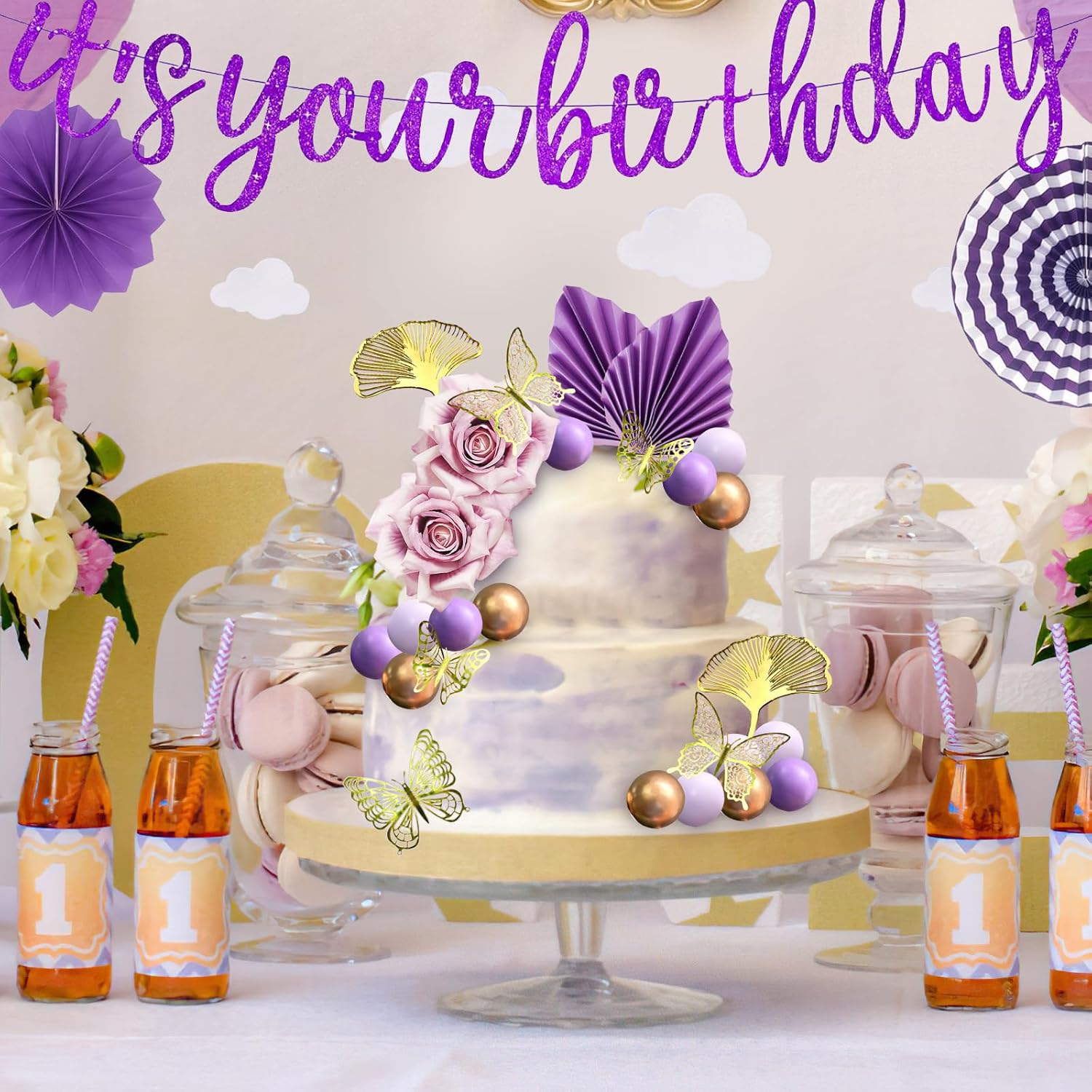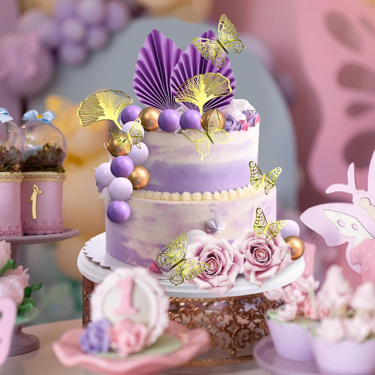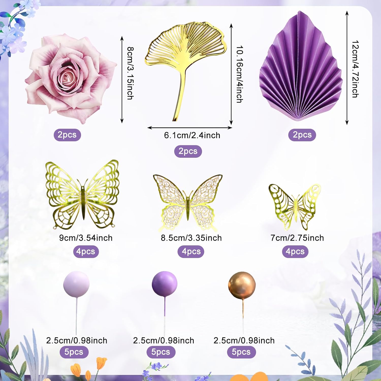 【Decorazione per torta bohémien】 Riceverai 33 decorazioni per torta di compleanno, tra cui 15 palline decorative per torta, 12 farfalle dorate, 2 foglie di ginkgo, 2 carte smerlate viola, 2 decorazioni floreali viola. Tanti accessori per le tue esigenze di arredamento. 【Design Raffinato】 I toppers per torta sono dai colori vivaci, con forme vivaci di foglie di ginkgo dorato e molteplici stili di farfalle dorate che donano una bella lucentezza. I fiori realistici rendono la tua torta ancora più affascinante. 【Materiali di alta qualità】 Le decorazioni della torta di compleanno sono realizzate in schiuma, carta e seta di alta qualità. Sono realizzati con cura, durevoli, non sbiadiscono e non odorano, quindi puoi usarli in tutta tranquillità. 【Fai da te creativo】Le decorazioni della torta di compleanno possono essere semplicemente inserite o incollate, puoi combinare liberamente diversi elementi decorativi in base alle tue preferenze e creatività per creare una torta unica. Multi-occasioni: questo cake topper è adatto per varie occasioni, come feste a tema bohémien, matrimoni, compleanni, baby shower o feste festive. Aggiunge un'atmosfera romantica alla festa.