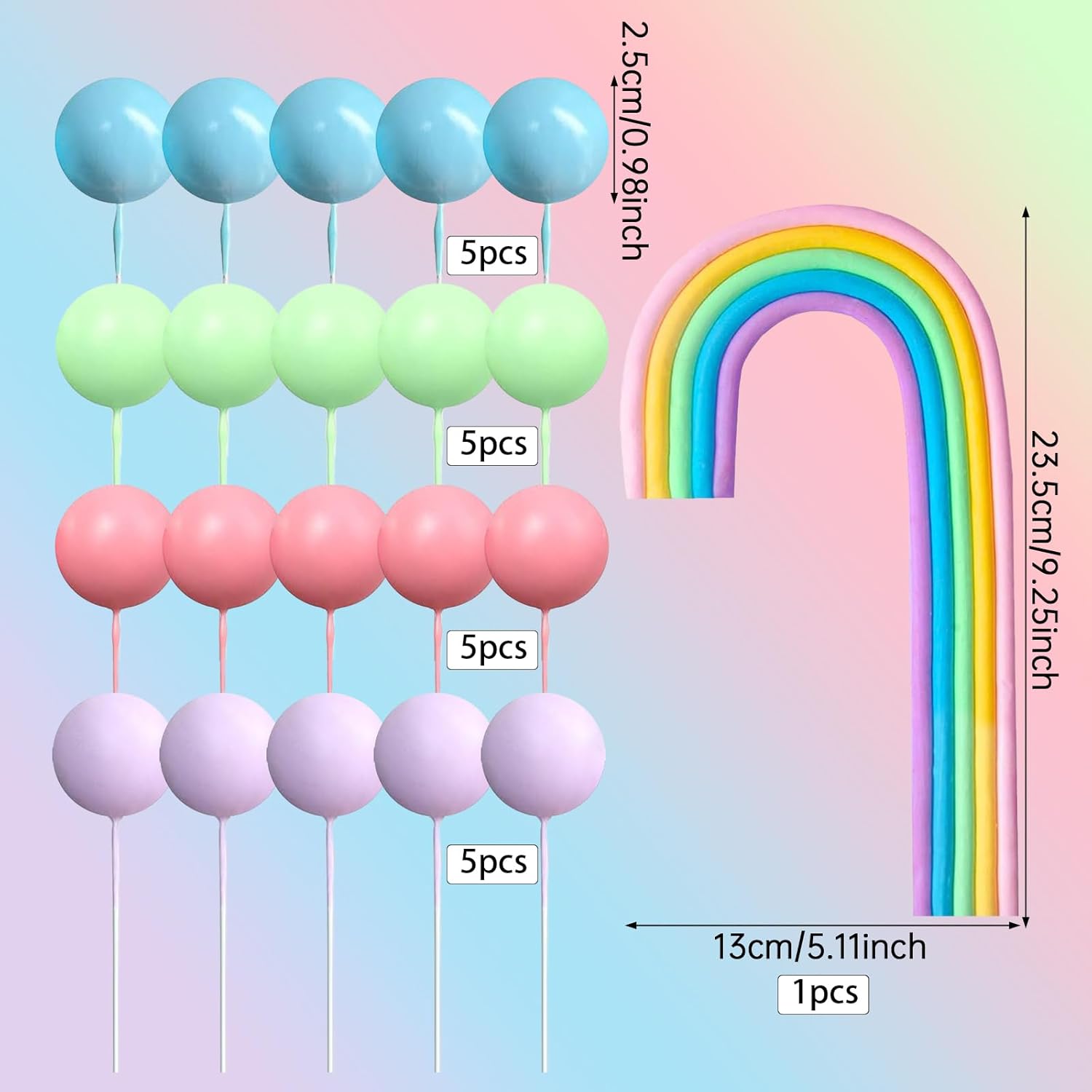 【Riceverai】: 1 topper per torta arcobaleno, 20 toppers per torta con palline. Per decorare la torta vengono utilizzati molti colori vivaci, rendendo la festa perfetta e indimenticabile. 【Materiali di qualità】: le decorazioni della torta arcobaleno sono fatte di argilla e le palline decorative della torta sono fatte di schiuma. Ogni materiale è sicuro e innocuo per il corpo umano. Si prega di notare che questa è solo una decorazione e non è commestibile. 【Decorazione torta fai da te】: design arcobaleno con decorazioni accattivanti. Sii creativo e decora il tuo compleanno o la tua torta nuziale con queste bellissime decorazioni. Queste palline di compleanno aggiungeranno splendore alla tua torta di compleanno. 【Facile da usare】: queste decorazioni per torte non richiedono strumenti aggiuntivi. I toppers per torta arcobaleno e ogni pallina del cake topper possono essere utilizzati per decorare direttamente la torta, così puoi decorare la torta come preferisci, lavarla e riutilizzarla. Multiuso: questo set di toppers per torta arcobaleno non è adatto solo per decorare torte per feste di compleanno, baby shower, matrimoni, feste di anniversario e così via. È adatto anche per decorare gelati, dolci, piatti di frutta, ecc.
