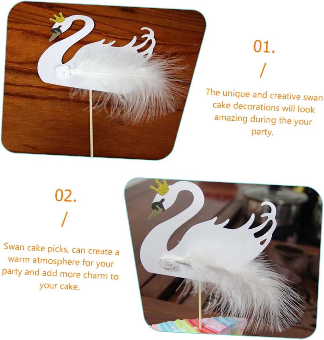 Topper per torta con cigno: rendi le torte e i dessert della tua festa più belli e più belli, stupisci i tuoi ospiti, decorazione del cigno del matrimonio. Forniture per feste di compleanno fatate - Non possono essere utilizzate solo come decorazione per torte, ma anche come decorazione divertente e creativa per creare un'atmosfera romantica. etichette degli alimenti per feste. Plettri per cigni alimentari - Le decorazioni uniche e creative della torta del cigno saranno fantastiche alla tua festa, i plettri per cupcake come bomboniere. Inserti per torte con animali: bastoncino leggero, di lunghezza adeguata, facile da inserire nel cibo e anche da estrarre, decorazioni per cibo a forma di cigno. Cartelli per cibo a buffet per feste - I plettri per torta a forma di cigno, possono creare un'atmosfera calda per la tua festa e aggiungere più fascino alla tua torta, stuzzicadenti per la torta di compleanno.