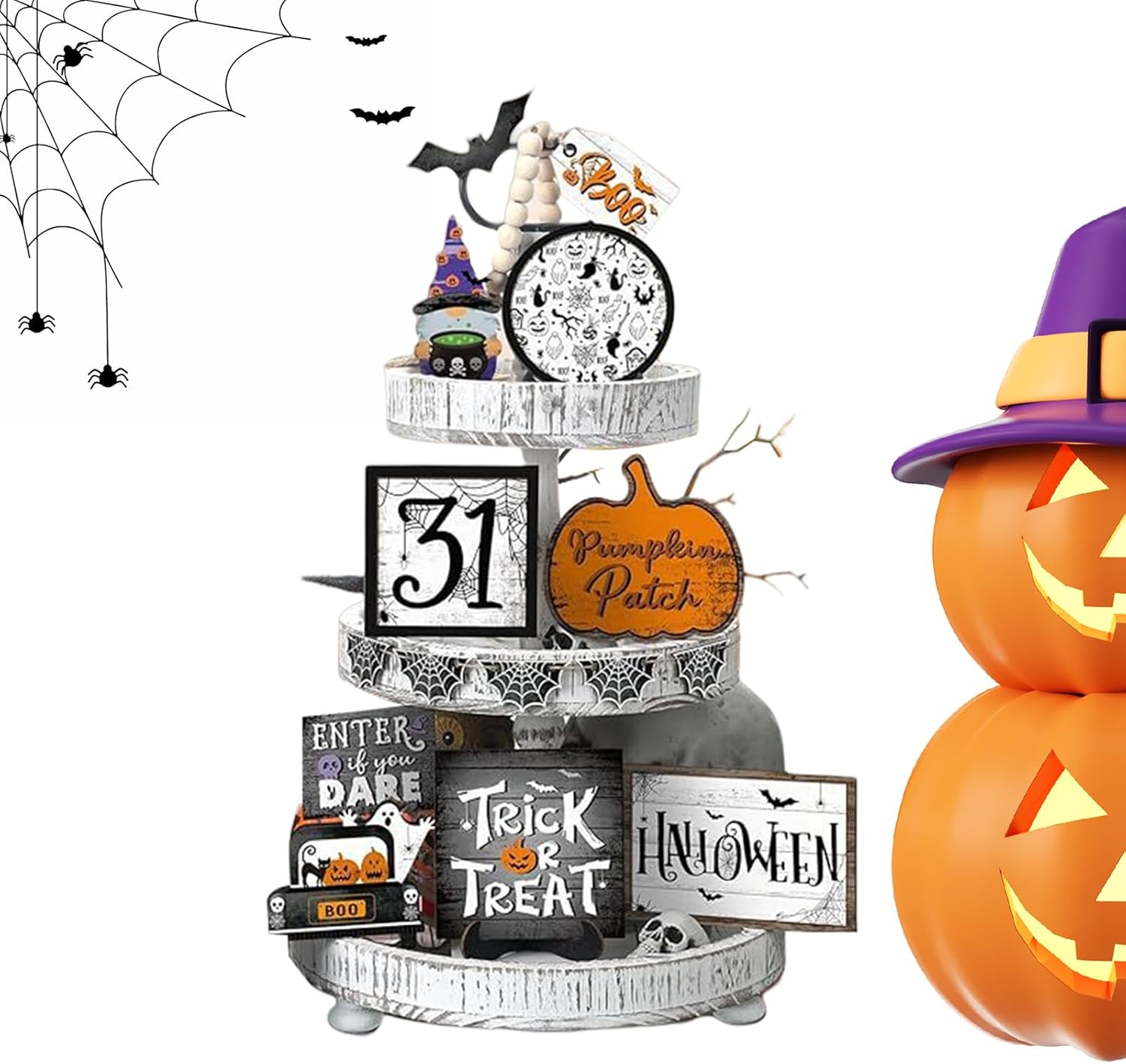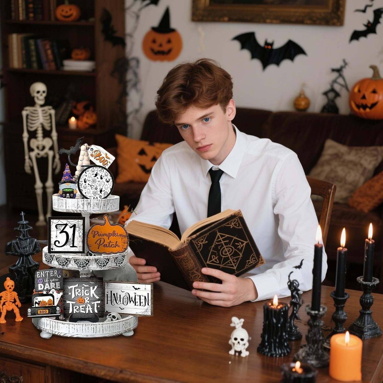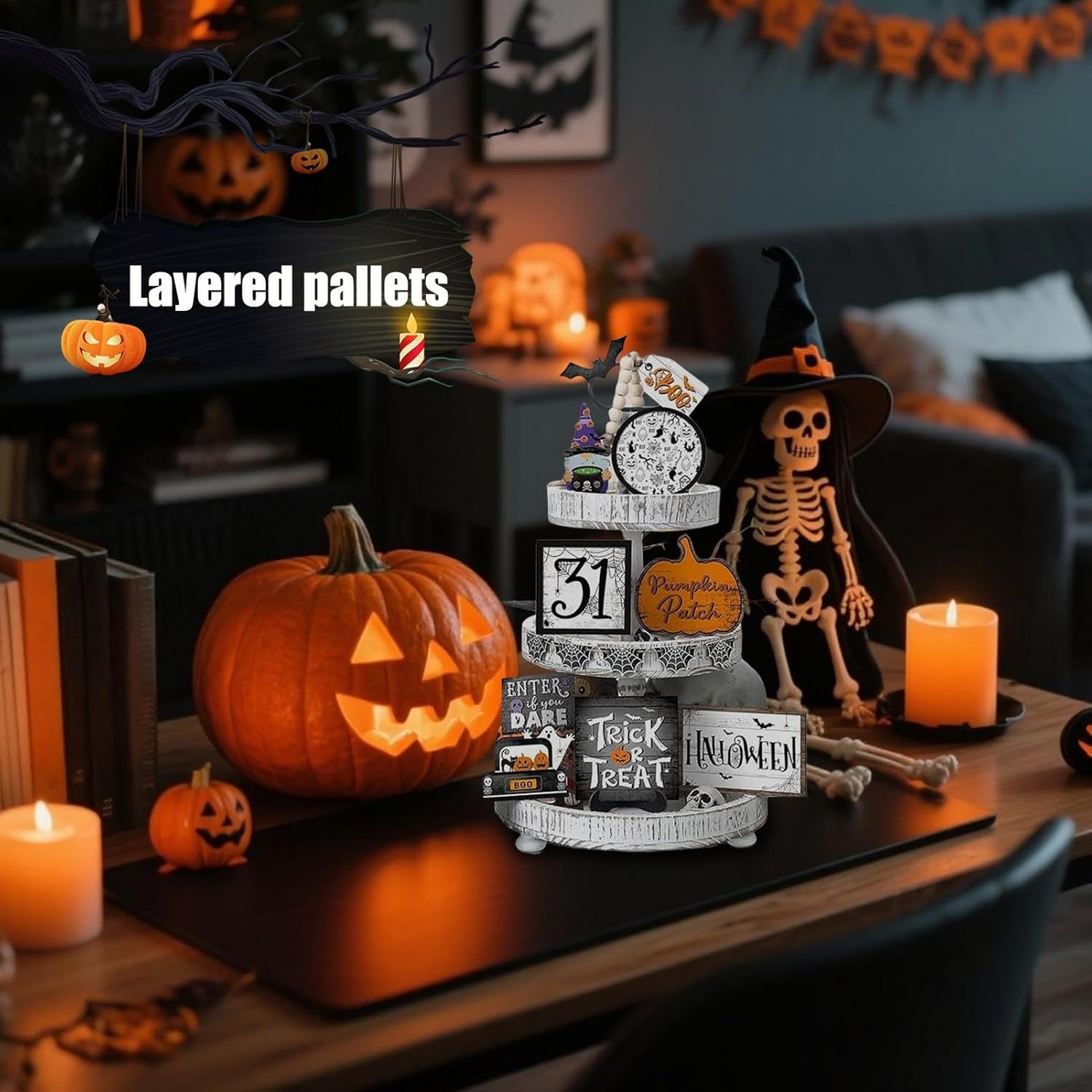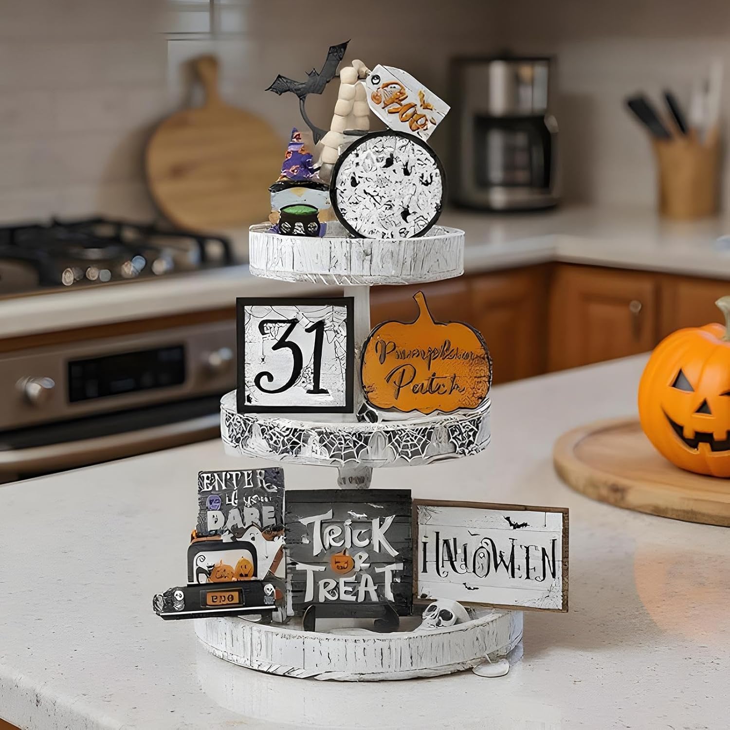 Opzioni di layout versatili: queste decorazioni del vassoio sfalsato di Halloween presentano componenti di varie dimensioni per arrangiamenti impilati o regolabili, creando un effetto visivo creativo e migliorando la profondità spaziale con la loro struttura multistrato Design di calore rustico: queste decorazioni per vassoi di Halloween evidenziano un'atmosfera rustica e calda, con dettagli angosciati e una finitura artigianale, progettate per migliorare elegantemente gli spazi in stile vintage Decorazione conveniente: semplifica le tue impostazioni per le vacanze con queste decorazioni per vassoi a gradini di Halloween, con un comodo assemblaggio e un'elaborazione preconedata, assicurando che siano pronti per la visualizzazione riducendo efficacemente i tempi di preparazione Soluzione di decorazione flessibile: adatto per camera da letto, tana, soggiorno, scaffale, armadio, tavoli, mensole, garanzia di ampia adattabilità per completare vari temi del vassoio di Halloween Misteriosa scena accogliente: Trasforma il tuo spazio abitativo con una configurazione a vassoio a strati, evidenziando i classici motivi di Halloween in modo misterioso ma accogliente, adatto per creare un'atmosfera su tavoli o mostre di gabinetto