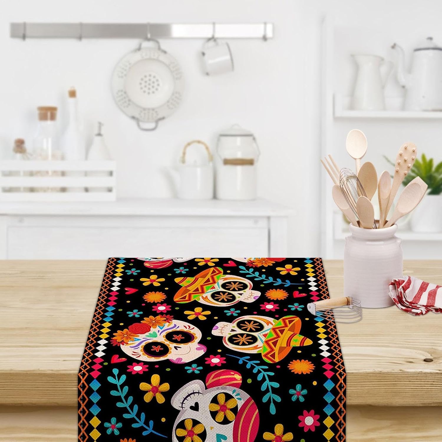 Aggiungi un fascino festivo: goditi una celebrazione di ispirazione messicana con questa tovaglia morta, che presenta teschi e fiori colorati. Sia che tu voglia aggiungere un'atmosfera festosa al tuo ristorante o decorare il tuo tavolo per un'occasione speciale. Stand e : questa tovaglia è realizzata con materiale di lino forte, che è morbido e comodo da toccare. È anche durevole e facile da pulire e mantenere, in quanto non si sbiadisce dopo il lavaggio. Puoi goderti l'atmosfera festosa del giorno dei morti con questa tovaglia. i tuoi pasti: il giorno della tovaglia morta è un'aggiunta versatile all'arredamento del tavolo. Usalo come tovaglie o tavolo per proteggere le superfici da e macchie. Il suo design colorato aumenta la tua esperienza nel dei pasti. Celebrazione culturale: celebra il vibrante giorno del festival culturale morto con la nostra tovaglia, mettendo in mostra il fascino messicano del cactus, rose e motivi colorati che commemorano la bellezza della vita e della morte. Diverse applicazioni: questo giorno della tovaglia morta può essere utilizzato non per i tavoli da pranzo, ma anche per la camera da letto, il soggiorno, lo studio e persino come parete esotica e artistica. È un modo per aggiungere un po 'di colore e al tuo spazio.