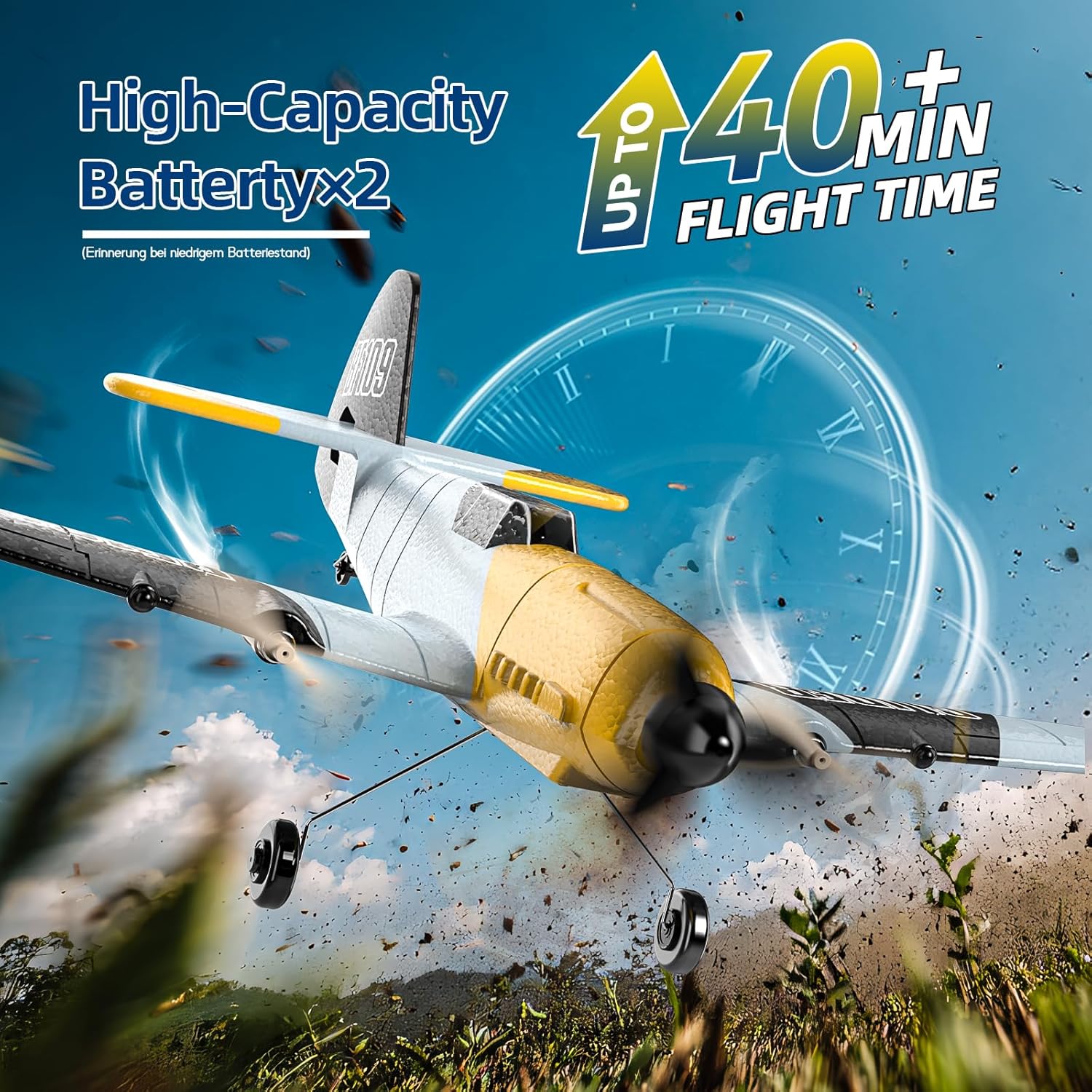 【Sistema di stabilizzazione facile da pilotare】 Dotato di un sistema di stabilizzazione giroscopica a 6 assi all'avanguardia, questo aereo beneficia di un significativo miglioramento della stabilità, rendendolo controllabile senza sforzo, anche per chi è nuovo al volo. 【Struttura DPI Resistente】 Questo aereo RC è realizzato in schiuma elastomerica leggera, che fornisce una struttura resistente e leggera, consentendogli di gestire voli all'aperto senza essere danneggiato da urti e impatti. 【3CH e 2 metodi di decollo】2 metodi di decollo (lancio manuale o planata) forniscono al pilota varie esperienze di volo. Goditi l'emozione del pilota con un sistema di controllo a 3 canali mentre pratichi il volo 3D. 【Motore potente e 2 batterie】 L'aereo RC è dotato di doppi motori integrati per maggiore potenza e velocità, risparmiando efficacemente la durata della batteria. Include due batterie ricaricabili da 3,7 V 350 mAh, che forniscono circa 20 minuti di divertimento di volo ininterrotto. 【Modalità a 2 velocità tramite telecomando da 2,4 GHz】 Con un telecomando wireless da 2,4 GHz, puoi passare dalla velocità alta a quella bassa e goderti un raggio di controllo di 656 piedi, rendendolo un'ottima scelta per piccoli eventi di club di volo e un ottimo regalo per bambini e adulti.