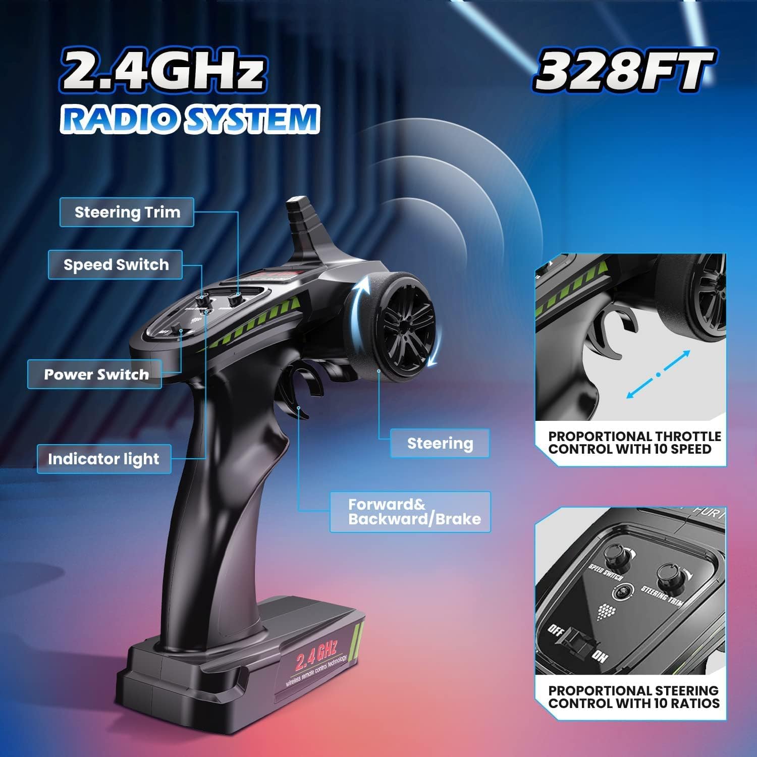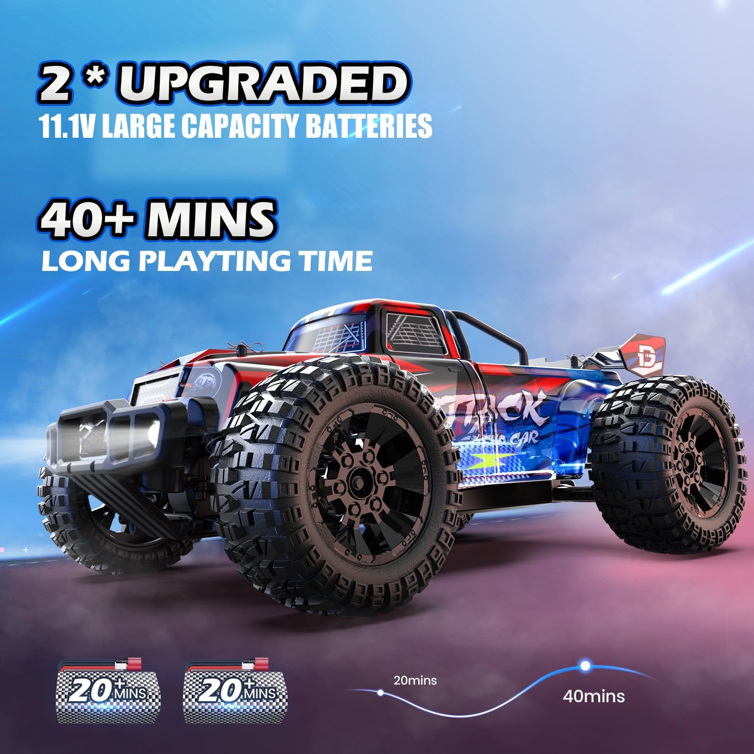 Grande auto da corsa senza spazzole di alta qualità. Tutte le parti di questo camion RC brushless in scala 1:10 sono state notevolmente aggiornate. Dotato di 45 A ESC brushless, dissipatore di calore in metallo, motore 2845 Abrushless e alloggiamento auto rinforzato. Questa macchina telecomandata offre prestazioni incredibili. La velocità di 60 + km/h e la forte potenza ti danno il miglior controllo su qualsiasi terreno. All Terrain Brushless motore nel camion telecomandato produce grandi cavalli per soddisfare le esigenze di velocità e corsa. Con un servo da 2,2 kg con coppia elevata e sterzo proporzionale e acceleratore, questa auto RC hobby è in grado di conquistare terreni molto più difficili, funziona senza intoppi e splendidamente alla massima velocità su qualsiasi terreno. 2 batterie migliorate da 11,1 V con grande capacità e design esclusivo. Questo telecomando ad alta velocità viene fornito con due batterie migliorate da 11,1 V 1500 mAh che offrono una durata ininterrotta di 40 minuti. Il guscio dell'auto su questo monster truck è appositamente progettato e rinforzato, rendendo questo grande animale brushless più fresco che mai Veicolo impermeabile IPX4. Il regolatore elettronico della velocità (ESC) / ricevitore di questo camion radiocomandato per hobby ha diverse funzioni di protezione come resistente agli spruzzi, resistenza all'acqua IPX4, protezione da sovracorrente e protezione da spegnimento della batteria a bassa tensione. Il camion può prendere spruzzi d'acqua da diverse direzioni e piccole pozzanghere, ma non immergersi sott'acqua, in modo da avere una vera esperienza di guida fuoristrada radiocomandata. Controllo interferenze da 2,4 GHz e faro fresco; questo sistema di controllo senza interferenze consente a più piloti di correre contemporaneamente e godersi il brivido. Con il raggio di controllo 328FT e il faro luminoso ti divertirai molto di più con questa bestia da corsa. Si prega di leggere attentamente il manuale di istruzioni allegato prima di utilizzare questo prodotto. Per qualsiasi domanda, non esitate a contattare l'assistenza clienti DEERC – saremo lieti di aiutarvi!