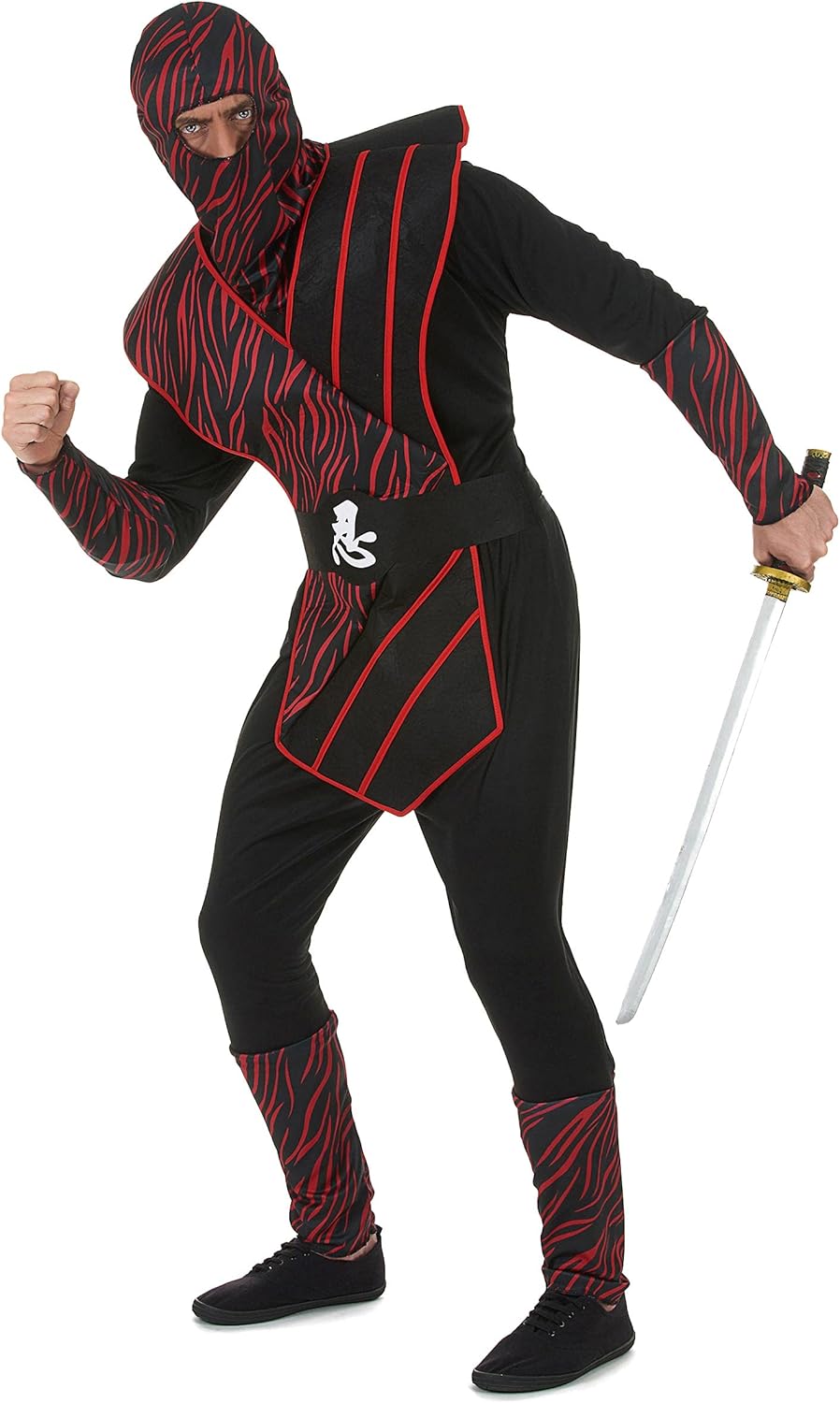 Questo travestimento da ninja per adulto comprende una maglia, un paio di pantaloni, una cintura, una finta armatura e un copricapo (sciabola e scarpe non incluse). La maglia e i pantaloni sono realizzati in tessuto elasticizzato di colore nero che ti garantirà un ottimo comfort e una buona vestibilità. La cintura e la finta armatura sono in gommapiuma. Questo costume da ninja rosso e nero sarà perfetto a Carnevale o per una festa a tema sul Giappone.