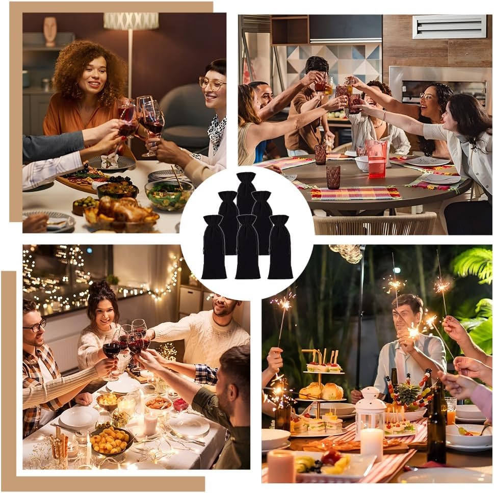 Design elegante: riceverai 6 borse con coulisse in velluto accuratamente selezionate, con uno stile semplice ed elegante, che sfoggiano una trama di alta qualità, rendendo il tuo regalo più lussuoso e di buon gusto. Il classico aspetto rettangolare nero, semplice ed elegante, soddisfa le varie esigenze di imballaggio. Materiale squisito: questa borsa regalo è realizzata in velluto, accuratamente selezionato, con tessuto morbido e di peso medio, che ha una lucentezza brillante, non si danneggia facilmente, non sbiadisce, non si spiegazza ed è durevole. Il sacchetto di imballaggio può essere riutilizzato e pulito, rendendolo adatto per l'uso a lungo termine nella conservazione domestica. Dettagli sulle dimensioni: larghezza circa 6,02 pollici (15,3 centimetri), lunghezza fino a 14,88 pollici (37,8 centimetri), spessore 0,06 pollici (0,15 centimetri), dimensione adatta per bottiglie di vino di dimensioni normali; La borsa del vino può anche contenere altri oggetti Occasioni applicabili: adatta per confezionare vino, champagne, whisky e altre bevande alcoliche, è la scelta ideale per regali in occasioni come inaugurazione della casa, matrimoni, feste di compleanno, vacanze, riunioni di famiglia, celebrazioni, ecc. Può anche essere utilizzata per conservare gioielli, piccoli oggetti di artigianato, ecc. Doppio cordoncino: l'esclusivo metodo di chiusura con doppio cordoncino può efficacemente impedire agli oggetti di cadere fuori dalla borsa, facilitando l'apertura, la chiusura e il recupero degli oggetti. Il grado di serraggio può essere regolato secondo necessità per garantire la sicurezza degli articoli. La borsa può proteggere e abbellire i prodotti