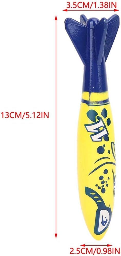 Dimensioni portatili, facili da trasportare, hanno bei colori brillanti, possono stare sul fondo della piscina. Può sviluppare abilità e sicurezza sott'acqua, può aiutare i bambini a imparare a nuotare. La superficie è liscia, , non tossica, resistente e stabile. Questo prodotto è un set di giocattoli a razzo siluro, realizzato in materiale plastico di qualità. Alla moda, ha un design delicato e una buona fattura.