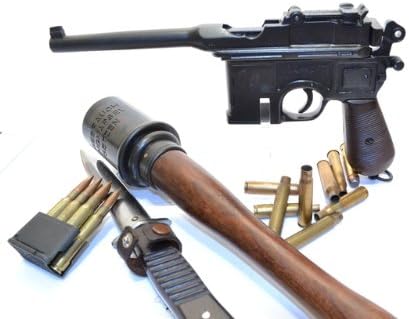 Replika: una delle prime pistole di ricarica anche il mondo e anche una delle migliori: L' arma è stato Export Schlager; anche Winston Churchill (DEM Man davvero non poteva che per prodotti Deutsche nachsagen) ha portato quest' arma nella guerra bure africana. Die massstabsgerechte copia mostra tutti i dettagli della pistola. La funzionalità è comunque limitata simulierbar (backup e rivista sono solo Hobby). L' arma ma può durchladen e scattare. Non spara. (Senza abgebild. Accessorio..) Lunghezza: 29,0 cm Peso: 1,1 kg