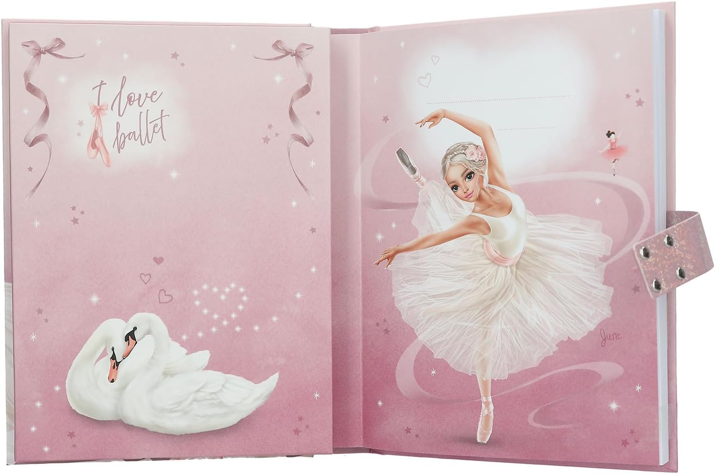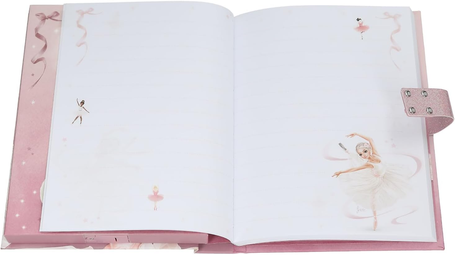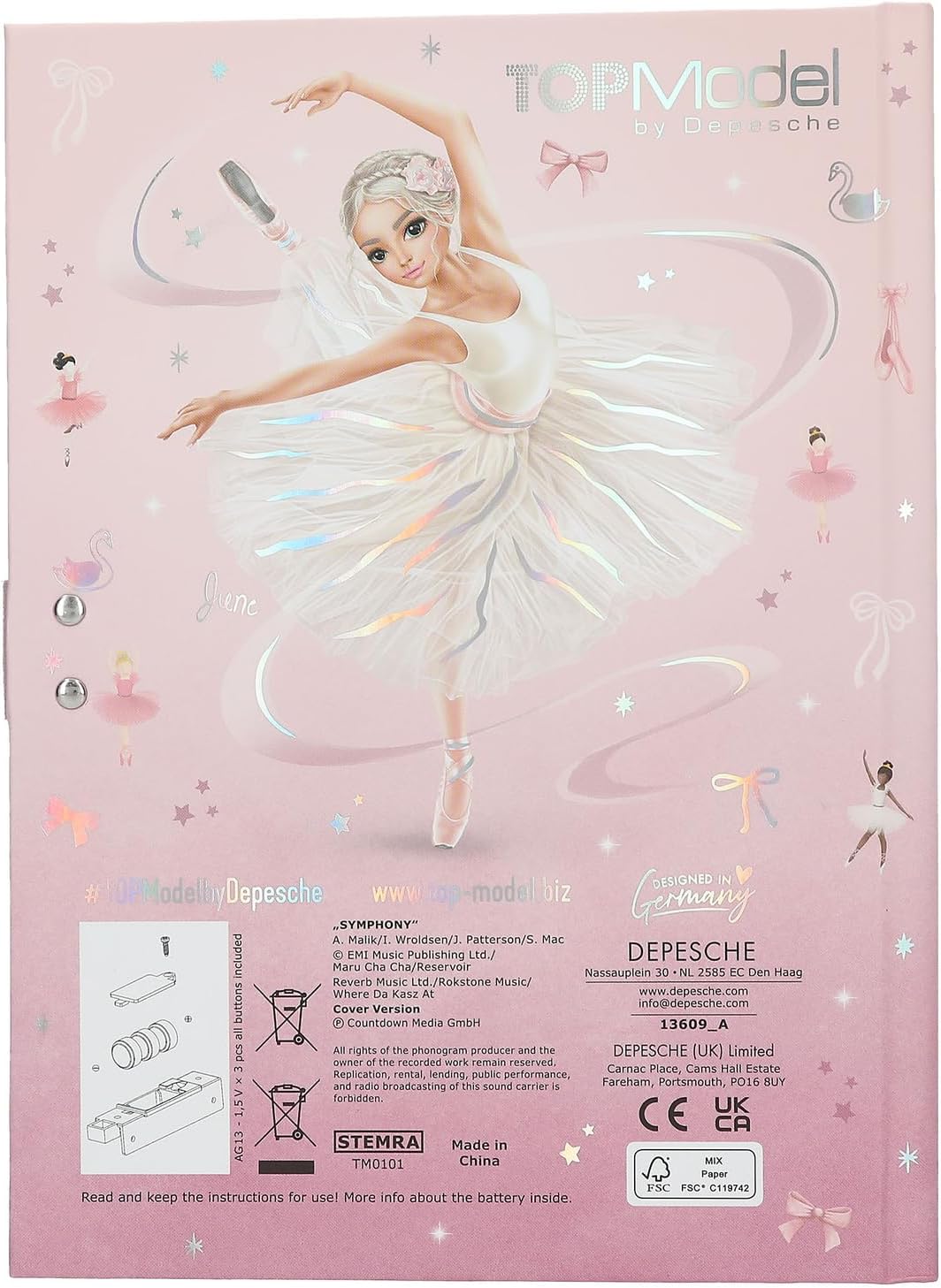 Diario per ragazze con il suono "Sinfonia" che suona per circa 20 secondi quando viene aperto Design: TOPModel Ballet di Depesche - in rosa con un adorabile motivo di ballerina. Il libretto contiene un totale di 80 pagine a righe e splendidamente decorate con bordo fantasia e modelli. Il diario è protetto da un codice digitale individuale che può essere inserito sulla tastiera della copertina. Dimensioni: ca. 20,5×15×3 cm