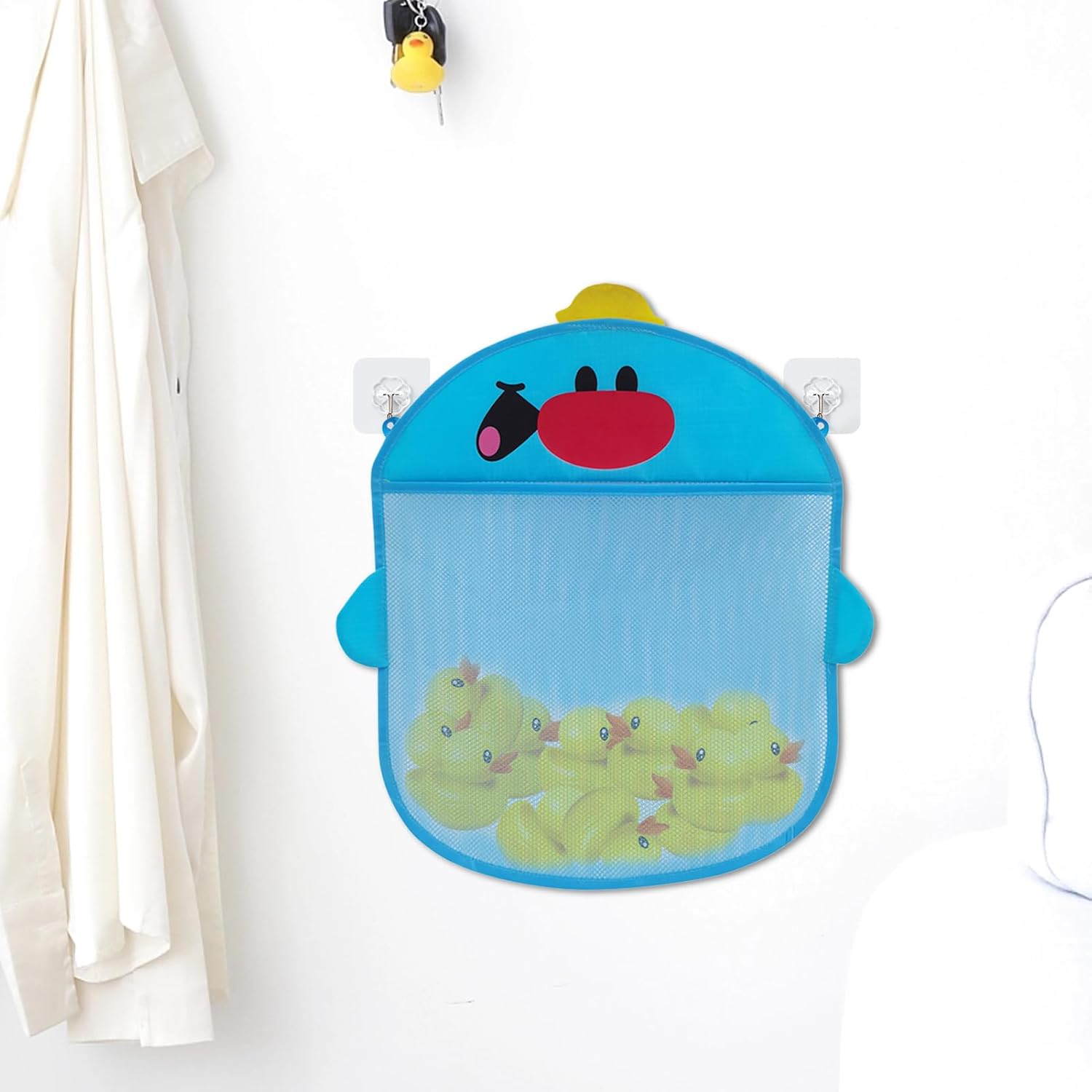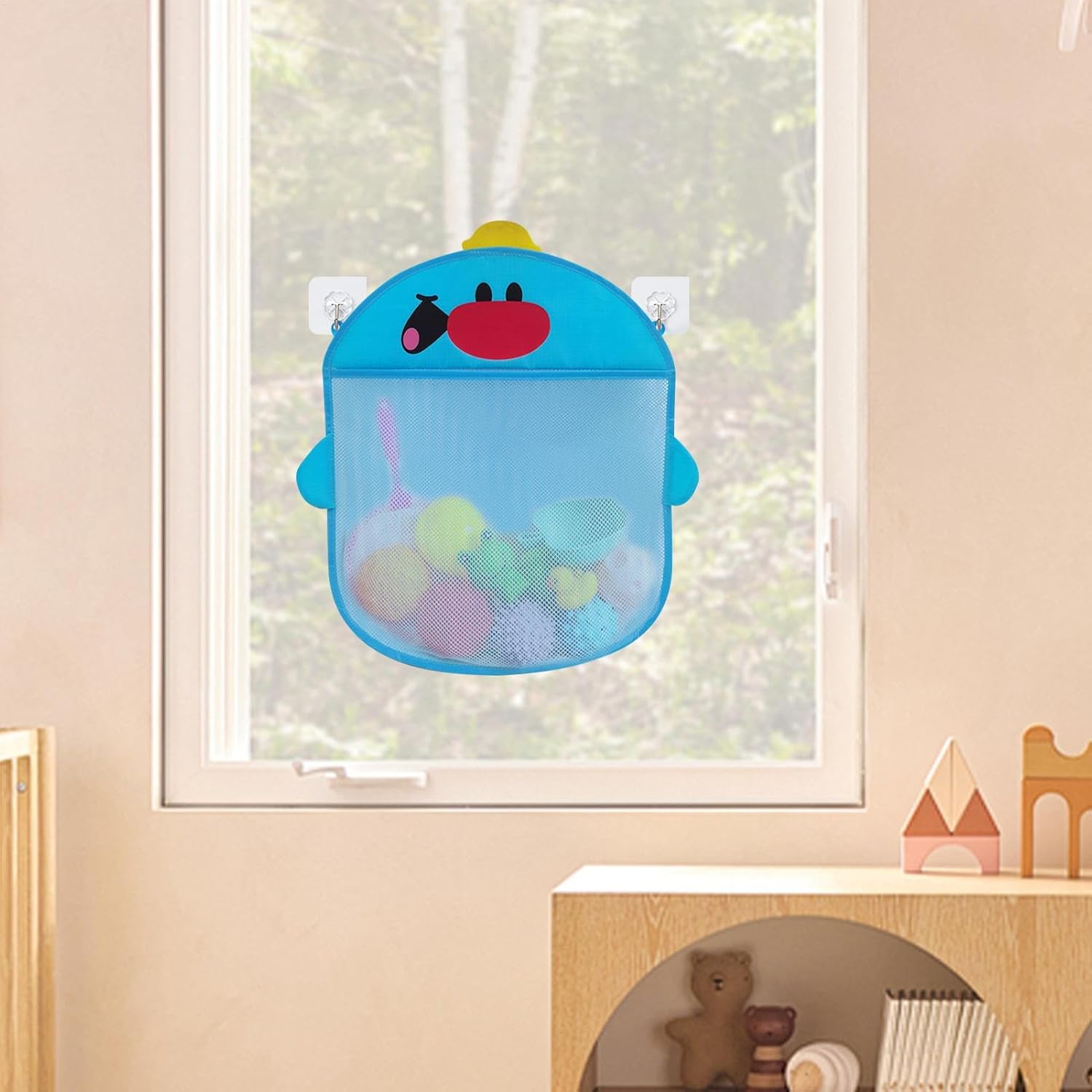 MANTIENI IL TUO BAGNO ORGANIZZATO: il nostro contenitore per giocattoli da bagno presenta un esclusivo design a griglia che separa giocattoli, shampoo e altri soffioni della doccia. Mantieni il tuo bagno organizzato e organizzato pur avendo un facile accesso a tutte le tue esigenze Installazione semplice: dì addio alle installazioni complicate. Utilizza le ventose incluse per fissare il contenitore dei giocattoli da bagno alle piastrelle o al vetro senza forare o altri strumenti. Appendi la borsa a rete e mantieni i giocattoli organizzati Applicazione multiuso: il nostro organizer per giocattoli da bagno è dotato di tasche separate di dimensioni variabili per tenere a portata di mano tutte le abilità balneari del tuo bambino. Dallo shampoo ai giocattoli, è il modo perfetto per mantenere tutto organizzato e pulito. Solida durevolezza: realizzata in materiale poliestere di alta qualità. Il nostro porta giochi da bagno è costruito per durare più a lungo rispetto ad altre opzioni sul mercato. Dotato di ventose durevoli, perfette per l'uso su piastrelle e superfici in vetro, garantendo che non si rompa facilmente. Asciugatura rapida: modernizza il tempo del tuo bagno con la nostra soluzione ideale per riporre i giocattoli da bagno. Il cestino in rete traspirante è progettato per far circolare l'aria e filtrare facilmente l'acqua dai giocattoli, mentre il materiale ad asciugatura rapida previene l'accumulo di umidità. Mantieni i giocattoli da bagno organizzati e asciutti con facilità