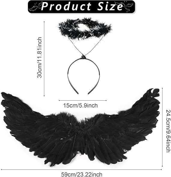【Dimensioni dell'ala】 L'ala è lunga 65 cm e larga 35 cm, adatta alla maggior parte delle persone. 【Ali d'angelo di piume】Eleganti e leggere, queste ali aggiungono un tocco celestiale al tuo outfit. Perfetto per costumi da angelo, feste in maschera, Halloween o eventi speciali. 【Design realistico e confortevole】 Questa ala è realizzata con materiali di qualità per essere indossata comodamente. Le ali nere di Halloween con cinghie elastiche elastiche offrono una vestibilità sicura e confortevole e facile da indossare. 【Accessorio versatile per le feste】 Queste ali vengono utilizzate per Halloween, carnevali, feste a tema o anche per foto creative. Un must per gli amanti dei costumi!
