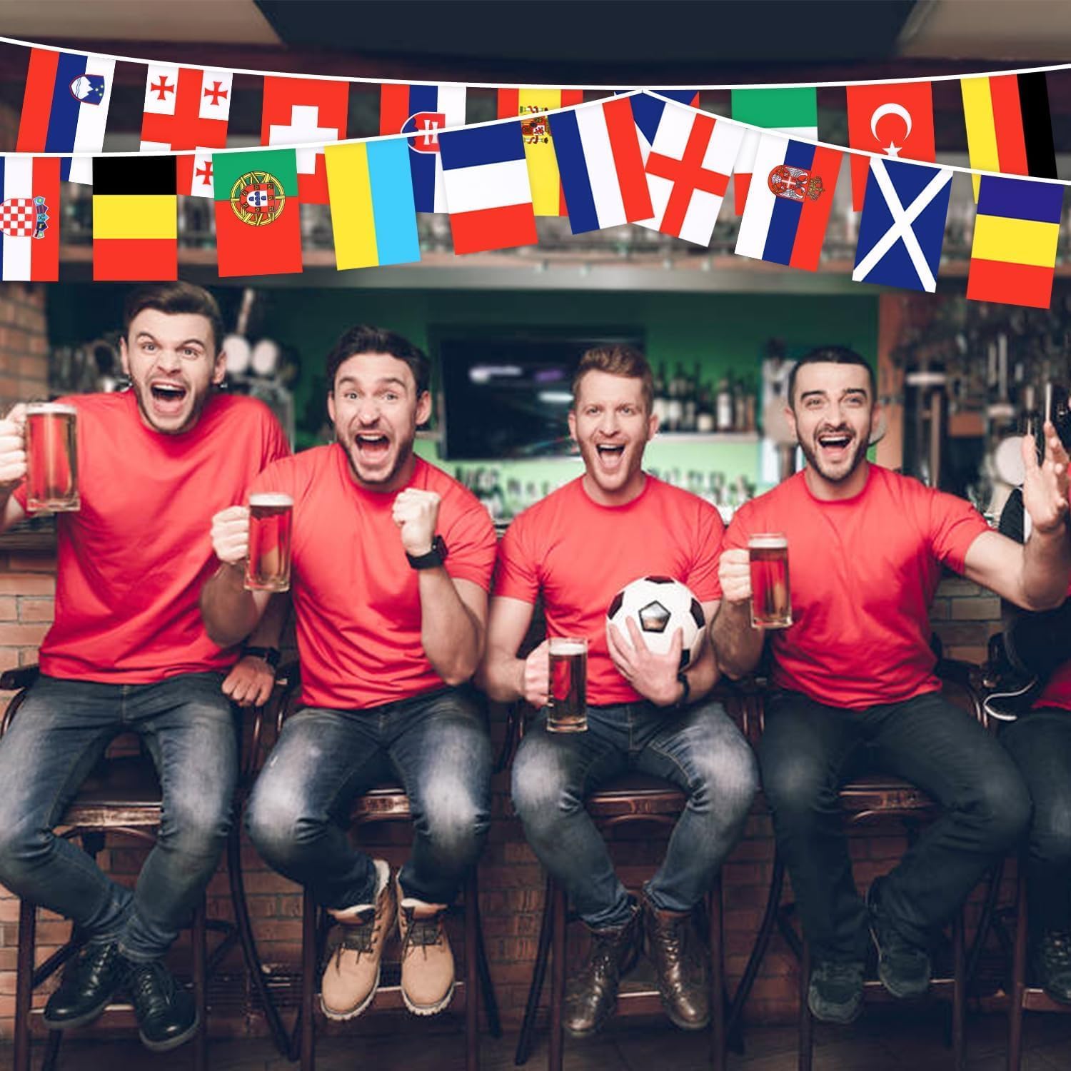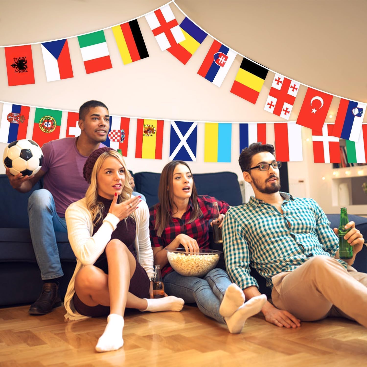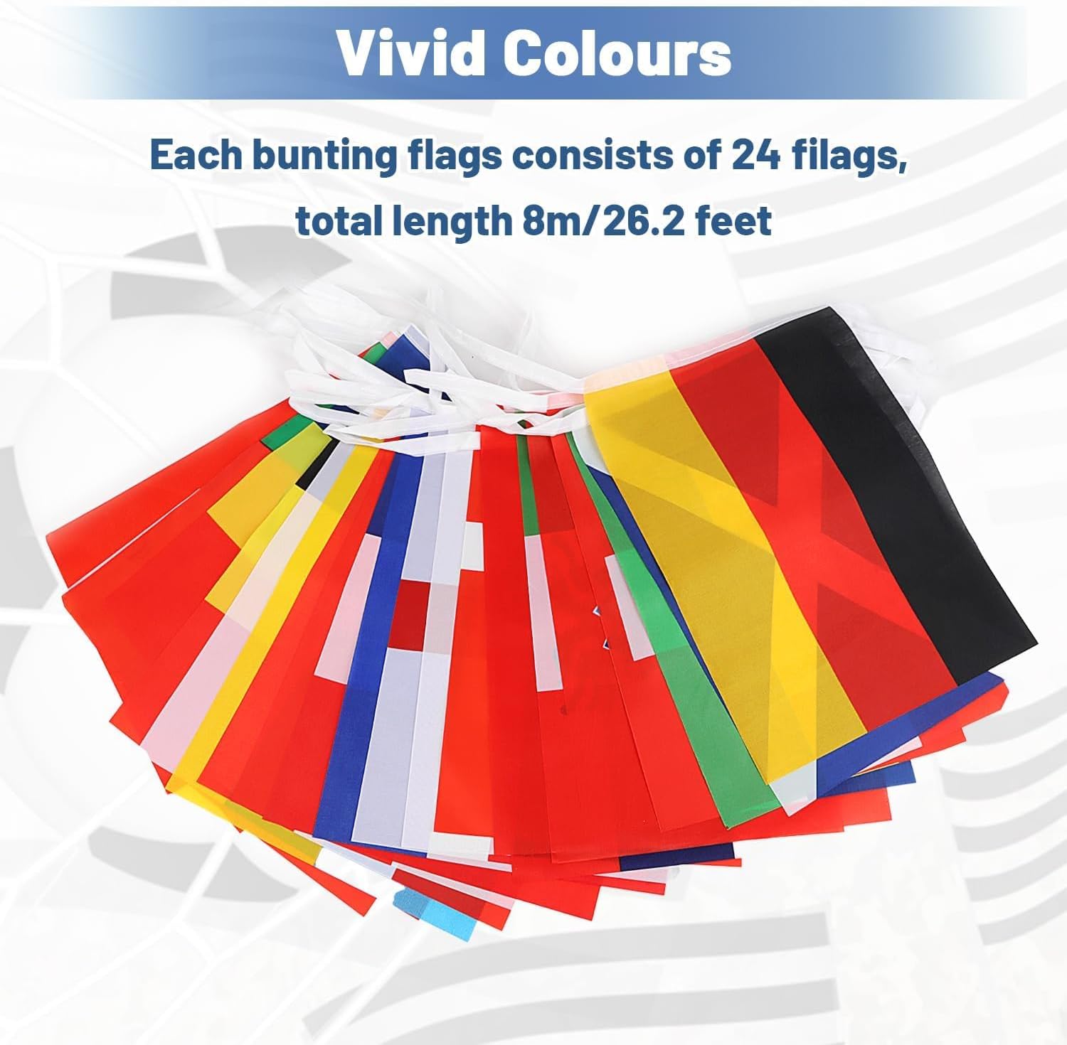 Dimensioni: ogni ghirlanda di stendardi contiene 24 bandiere di paesi diversi che misurano 21 x 14 cm. Artigianato: i nastri della bandiera sono realizzati al 100% in poliestere, i bordi sono ben arricciati, il tessuto della bandiera è molto morbido, ha un'alta densità e non è facile da strappare. Resistente allo sbiadimento: ogni bandiera è molto colorata e corrisponde alla bandiera del rispettivo paese ed è stata trattata con un trattamento anti-UV. Resistente all'acqua e non sbiadisce. Adatto per uso interno ed esterno. Bandiere olimpiche: sono state compilate 24 bandiere per rappresentare il sostegno dei tifosi di ogni paese ed esprimere l'amore e la determinazione di ogni paese per l'evento. La passione di tutti i soggetti coinvolti renderà la bandiera ancora più luminosa e radiosa. Multiuso: queste bandiere sono la scelta migliore per decorare feste, bar, club sportivi, uffici, feste scolastiche, celebrazioni, vela, giardini e altre occasioni.