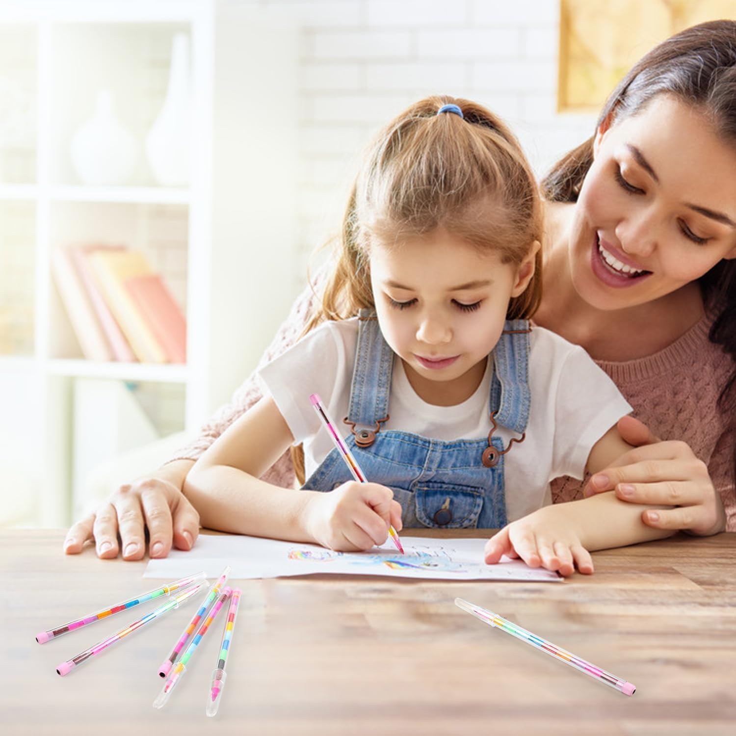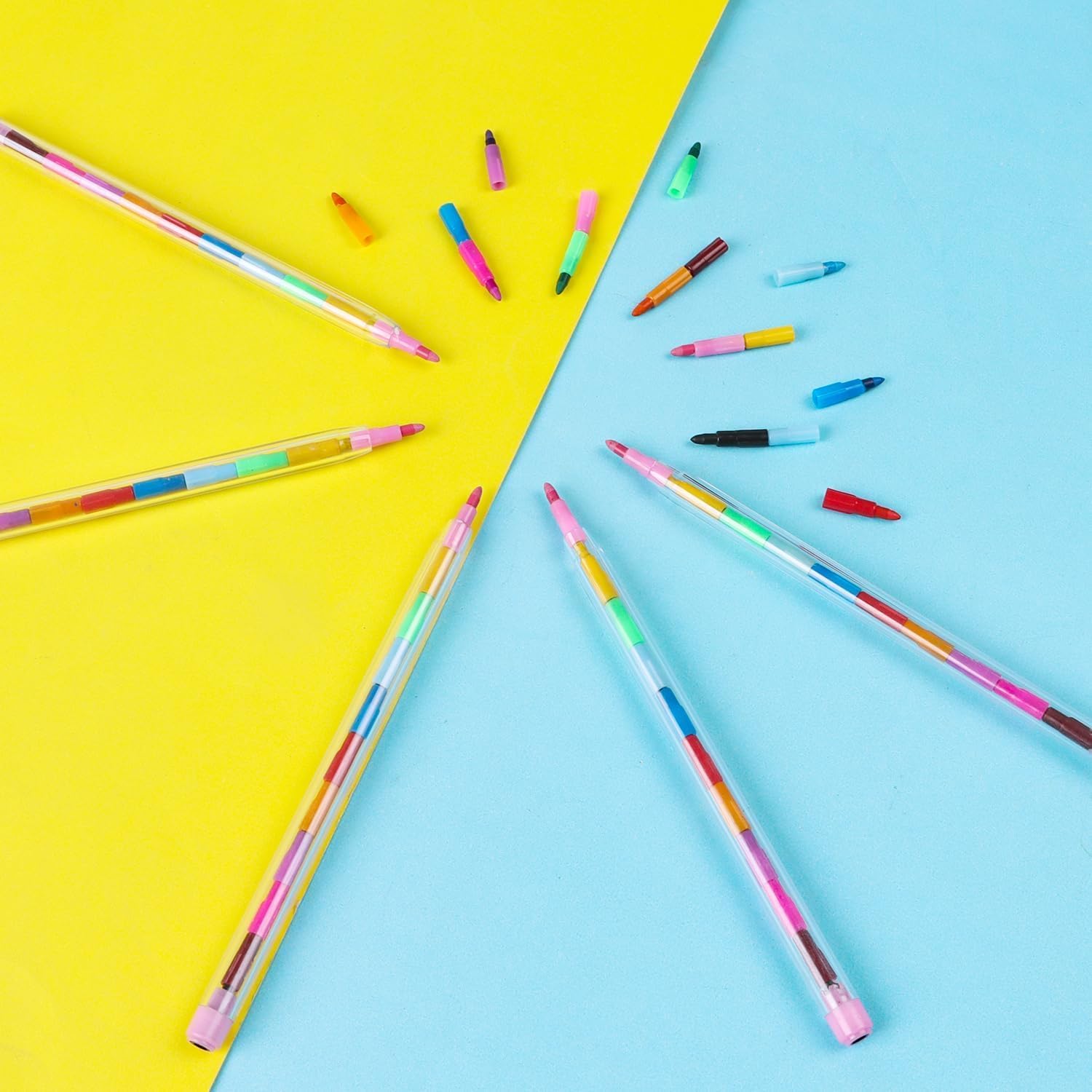 Età consigliata: Ideale per i bambini Marca: DERAYEE, lavorazione di alta qualità Utilizzo: colorare, disegnare, dipingere Forma: matite colorate a mattoncini, impilabili Manico: sagomato, per uso a due mani