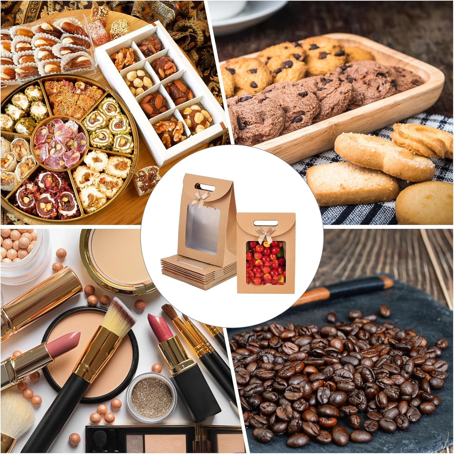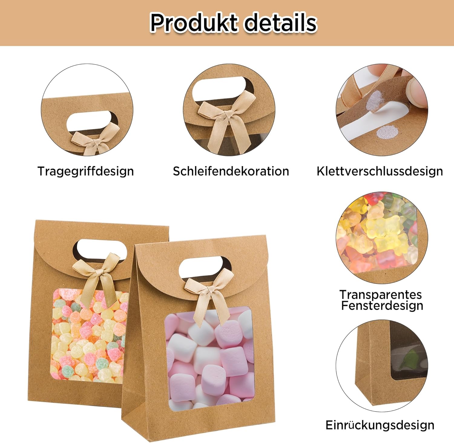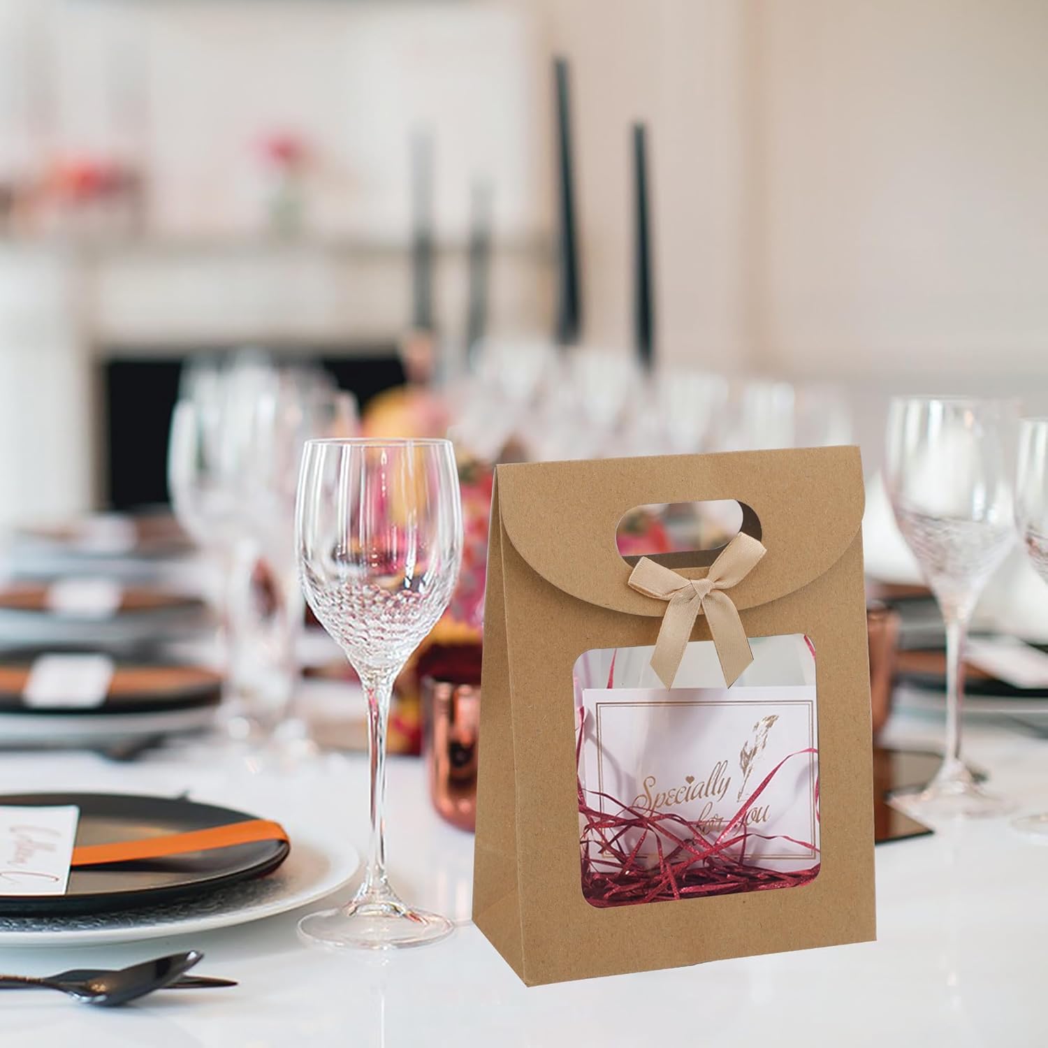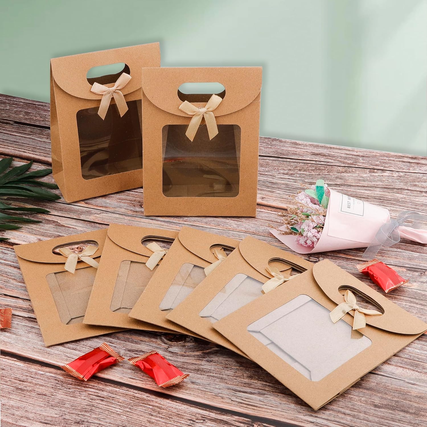 【Materiale di alta qualità】 I sacchetti di carta per finestre sono realizzati in carta kraft addensata di alta qualità, spessa e resistente, squisita e compatta, bella ed elegante, non facile da strappare, ecologica e riutilizzabile a lungo. 【Finestra trasparente】 I sacchetti regalo in carta hanno un design con finestra trasparente in modo da poter vedere il contenuto del sacchetto regalo in qualsiasi momento. 【Design pratico】 Il sacchetto regalo in carta kraft presenta un design con maniglia, non facile da strangolare le mani e facile da raccogliere e trasportare; un design in velcro nascosto facilita l'apertura e la chiusura; La base rettangolare garantisce che il sacchetto regalo stesso possa stare in piedi sul tavolo; viene fornito con adesivi placcati in oro, che rendono la borsa regalo più avanzata e bella. Facile da riporre: i sacchetti di carta con manici possono essere piegati per riporli o impilati per risparmiare spazio e possono essere riutilizzati dopo ogni utilizzo. Rispetto all'utilizzo del nastro adesivo per attaccare, il nostro Velcro può essere utilizzato più volte senza compromettere l'adesività. 【Ampia gamma di usi】 I sacchetti di carta Kraft possono essere utilizzati per confezionare caramelle nuziali, cioccolatini, noci, biscotti, gioielli, accessori e piccoli regali. Perfetto per feste, compleanni, matrimoni, lauree, Natale, Ringraziamento e altre festività.