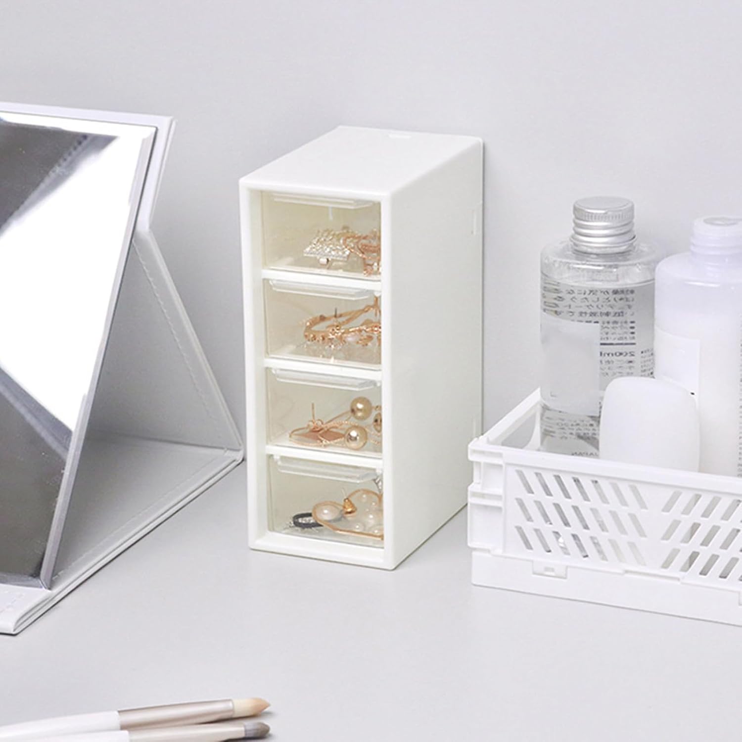 [Design a prova di polvere] L'organizzatore desktop presenta un design di archiviazione suddiviso in zone con quattro piccoli cassetti che impediscono effettivamente l'ingresso della polvere, mantenendo gli articoli puliti e protetti. Questo design innovativo garantisce che le tue cose rimangano senza polvere, rendendolo una soluzione ideale per mantenere un'area di lavoro pulita e organizzata. [Facile accesso e visibilità] Con chiara categorizzazione e un design della finestra trasparente, questa scatola di archiviazione del cassetto desktop consente di vedere e accedere facilmente ai tuoi articoli. Le finestre trasparenti migliorano la visibilità, migliorando l'efficienza del lavoro e rendendo semplice individuare gli elementi essenziali in modo rapido e senza sforzo. [Storage multifunzionale] Questo piccolo organizzatore di cassetti offre molteplici funzioni, rendendolo per conservare una varietà di oggetti come carte per capelli, orecchini, collane, ombretti e altro ancora. Il suo design versatile aiuta a mantenere il desktop pulito e organizzato, garantendo che tutto abbia il suo posto ed sia facilmente accessibile. [Soluzione spaziale] Il design compatto e impilabile di questo organizzatore di articoli di cartoleria lo rende un'eccellente soluzione di risparmio spaziale. Il suo design piccolo e squisito gli consente di adattarsi perfettamente a qualsiasi spazio di lavoro, contribuendo a mantenere il desktop pulito e ordinato senza occupare troppo spazio. [Materiale affidabile e resistente] realizzato in plastica impermeabile e solida premium, questo organizzatore di gioielli è robusto, resistente all'usura e costruito per durare. Il suo design semplice e pratico lo rende un aiutante affidabile per lo stoccaggio della famiglia, garantendo che i tuoi effetti personali siano sicuri e ben organizzati per gli anni a venire.