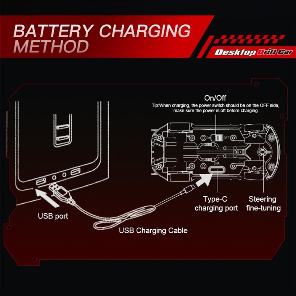 【Pieno gas e 4WD】 Offre pieno gas, la risposta dell'acceleratore è sensibile e si ottiene un cambio di velocità continuo a tutta velocità, rendendo l'accelerazione più lineare e realistica e una sensazione di guida reale. Attraverso l'uso di un sistema a trazione integrale, la potenza viene distribuita ragionevolmente durante la guida e una coppia più elevata rende la deriva più fluida. Piccolo e portatile, goditi il divertimento in qualsiasi momento e ovunque: questa auto da deriva da scrivania ha una scala di 1:64, è piccola, leggera e facile da trasportare. Sia a casa che in ufficio, finché c'è una superficie liscia, puoi iniziare la corsa alla deriva in qualsiasi momento e goderti un'esperienza di intrattenimento senza fine. Batteria integrata, sicura e pratica: questa mini auto da deriva dispone di una batteria al litio integrata di alta qualità da 3,7 V 100 mAh, che può funzionare per circa 20 minuti con una singola carica. La parte inferiore del corpo è dotata di un'interfaccia di tipo cj, che è molto comoda per la ricarica. Il design a basso consumo energetico garantisce un uso sicuro ed è adatto per il funzionamento in ambienti chiusi senza temere rischi per la sicurezza. Oggetti da collezione: questa auto telecomandata ha una bella forma, è ben lavorata e utilizza una squisita tecnologia di verniciatura a spruzzo. Sembra realistico e può essere raccolto come modello di auto o decorazione. Ne vale la pena! Adatto a tutte le età, facile da usare: il funzionamento è semplice e sia i bambini che gli adulti possono iniziare rapidamente. L'auto alla deriva è molto interattiva e le competizioni multiplayer sono più interessanti. È un regalo di Natale ideale per gli appassionati di deriva telecomandati. È anche un'ottima scelta per interazioni familiari o incontri con gli amici per rafforzare le relazioni mentre si gode il divertimento della competizione.