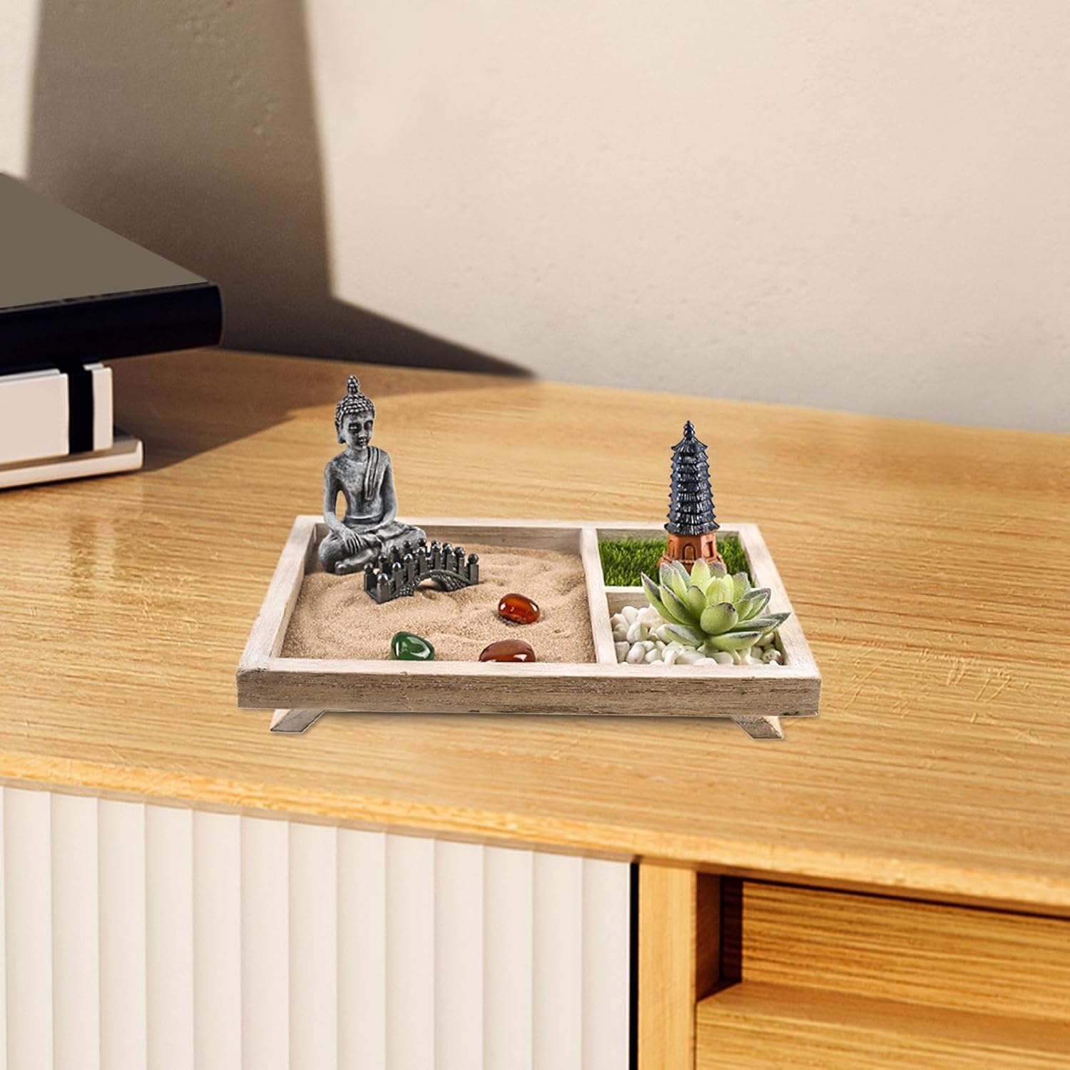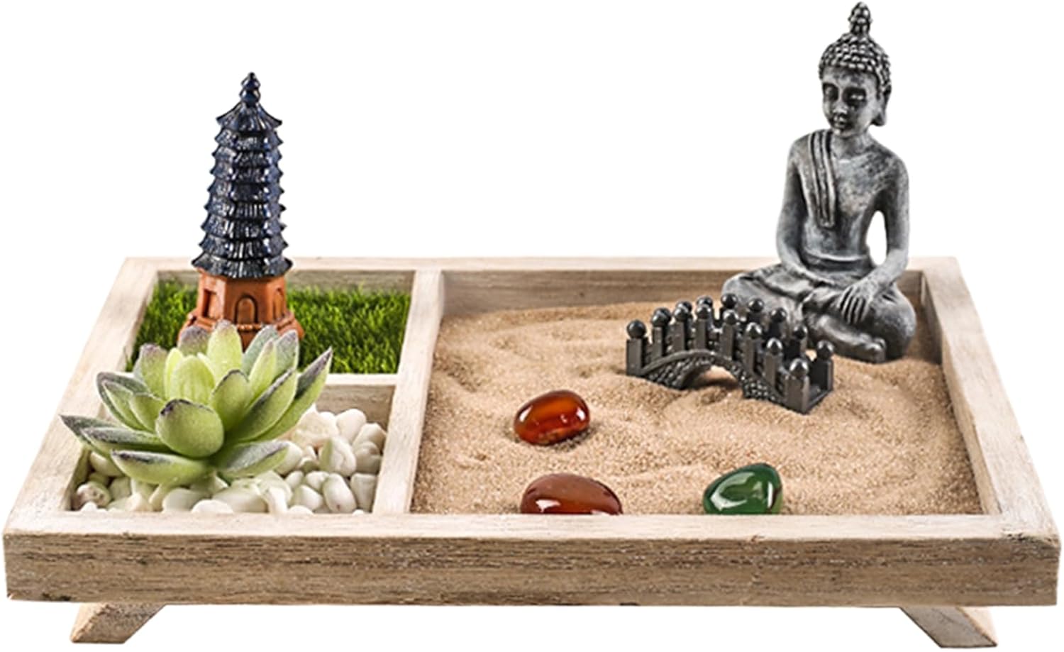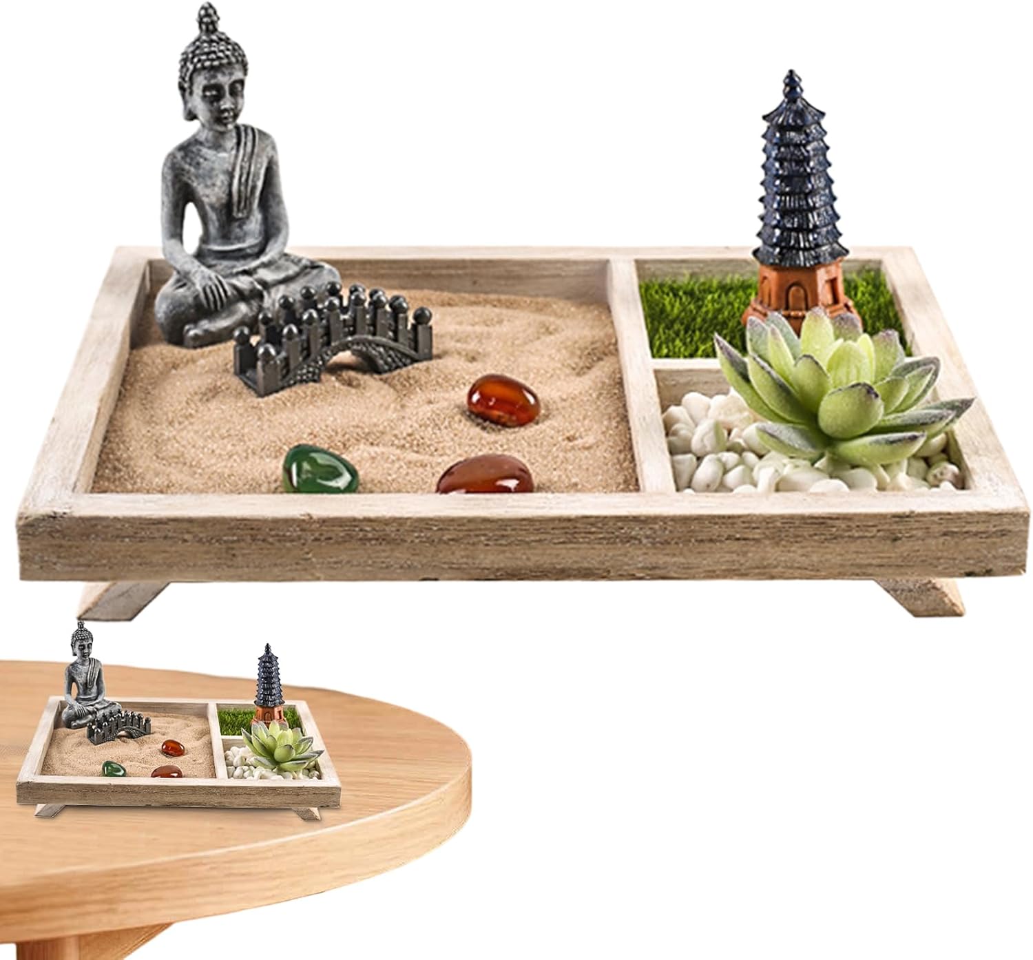 Exquisito paesaggio desktop: il giardino Zen per la scrivania incorpora un ponte in miniatura decorativo per migliorare ulteriormente l'atmosfera pacifica e giapponese lenitiva Durata duratura: modellato dalla tavola affidabile ad alta densità, questo kit di giardino Zen trasforma il tuo spazio in un santuario pacifico, per momenti di rilassamento e consapevolezza Usi multifunzionali: un accessorio pacifico, questo giardino zen giapponese porta alla tranquillità attraverso il suo bellissimo design, creando un ambiente per la meditazione e il rilassamento Squisitamente realizzato: splendidamente realizzato, questo giardino Zen decorarà perfettamente il tuo spazio con dettagli squisiti, dandoti una guida stimolante Ampia gamma di usi: perfettamente dimensionati per il tuo desktop, questo giardino Zen trasforma la tua attività, la casa, la sala di studio o l'ingresso, creando un'atmosfera calmante ampiamente applicabile in più spazi