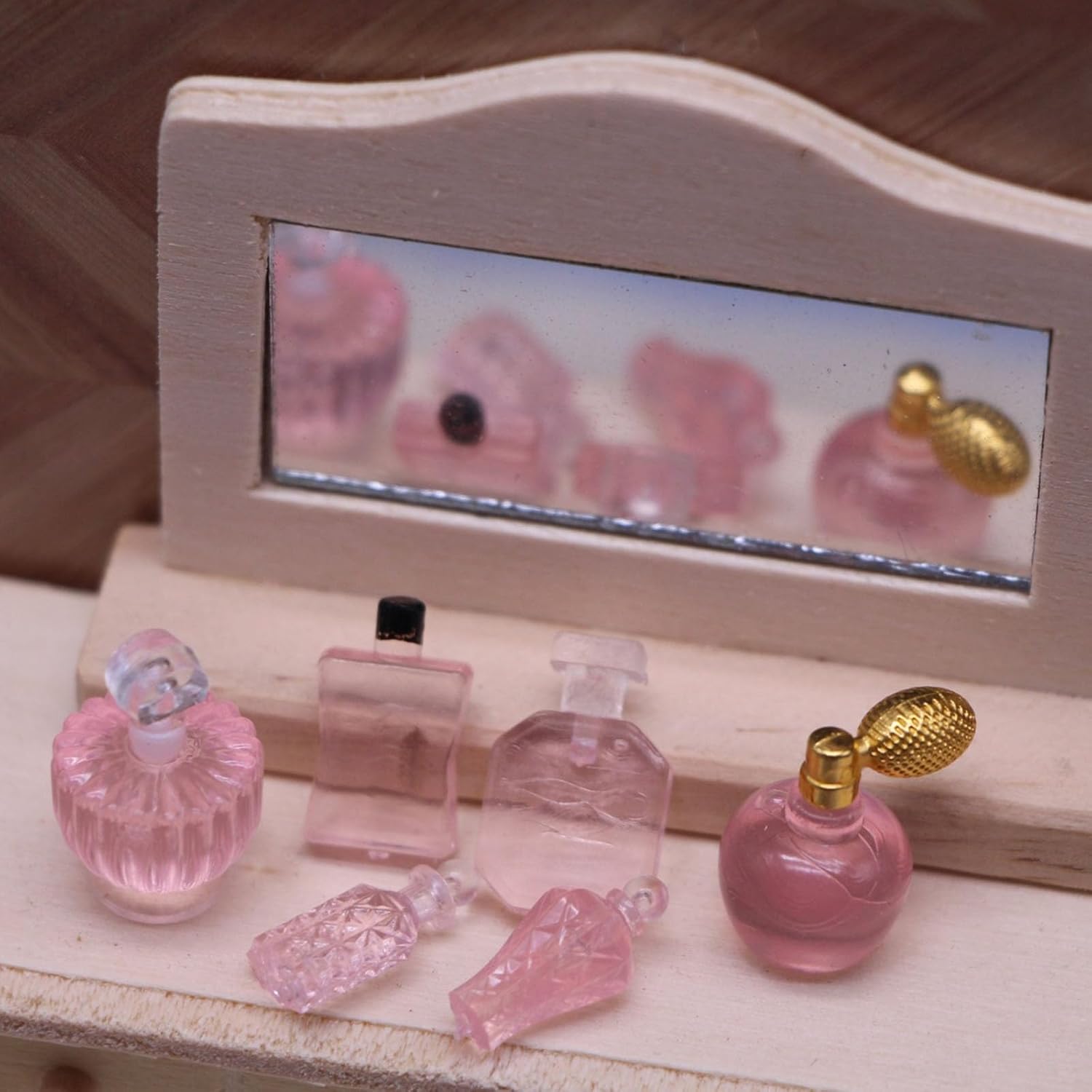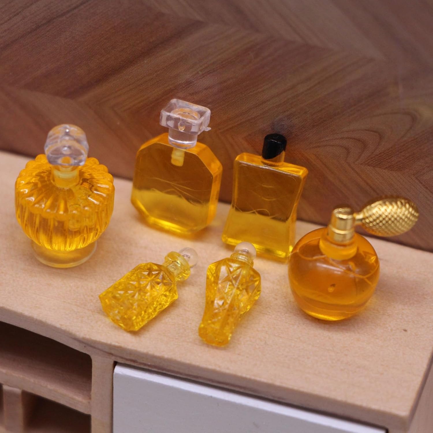 eccellente modello di aspetto molto vicino alla realtà. Grandi accessori fotografici Modello di bottiglia di profumo elaborato e vintage, compatto, alto grado di riduzione e materiali accuratamente selezionati non sono facili da deformare. Ottima aggiunta alla tua casa delle bambole Un set di modelli decorativi, non una vera bottiglia di fragranza un regalo molto divertente per chi fa se stessi e i decoratori di dollhouses Materiali in resina, questo set di bottiglie aromatiche visivamente accattivanti