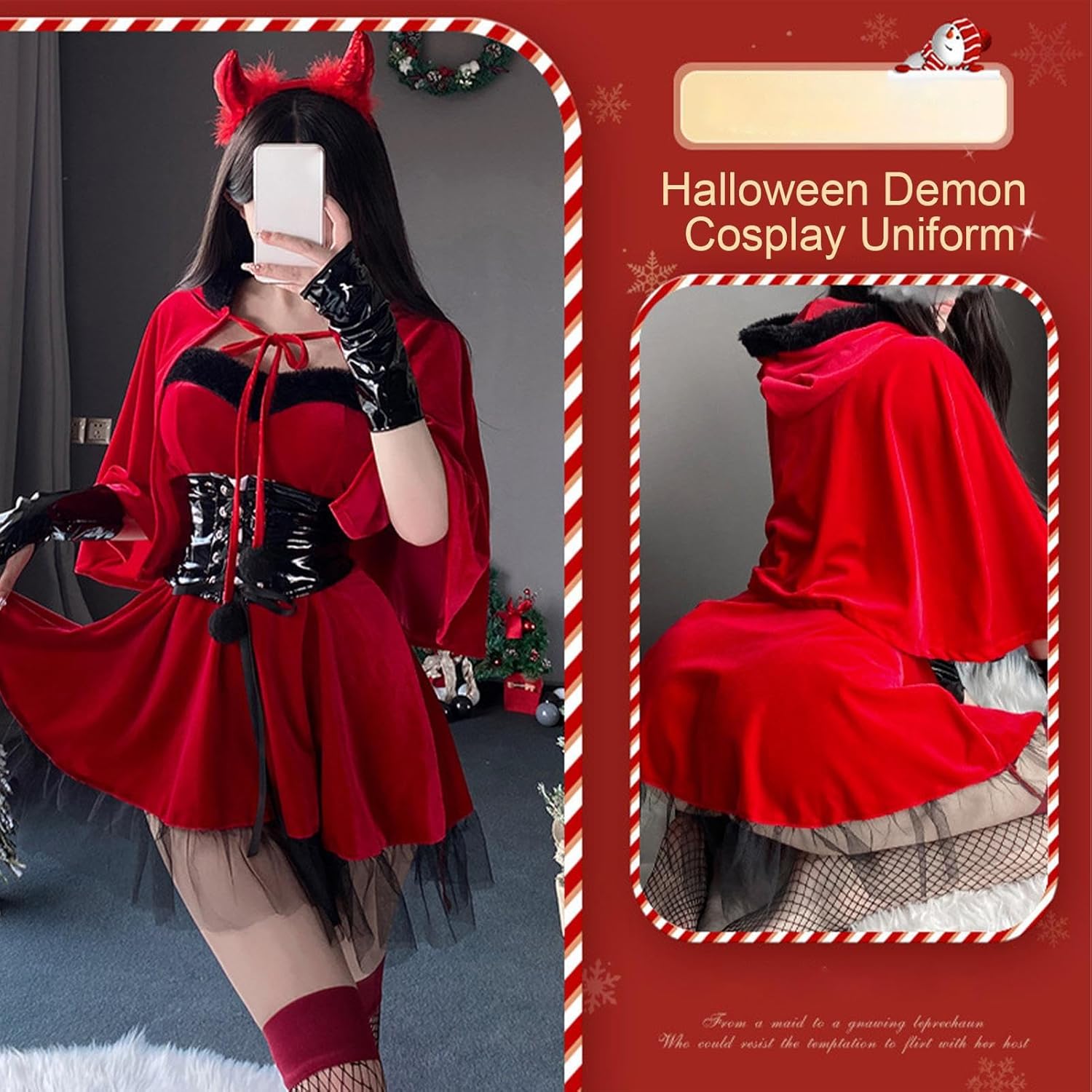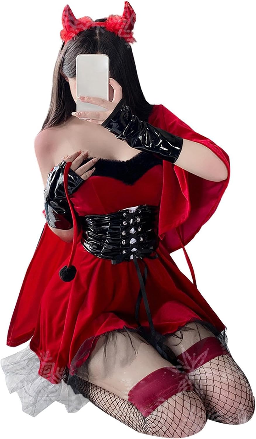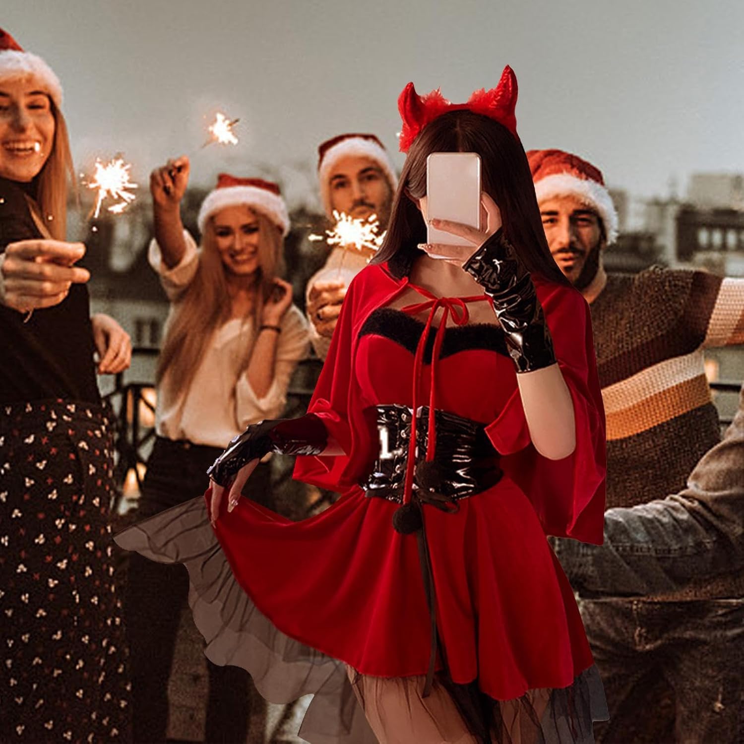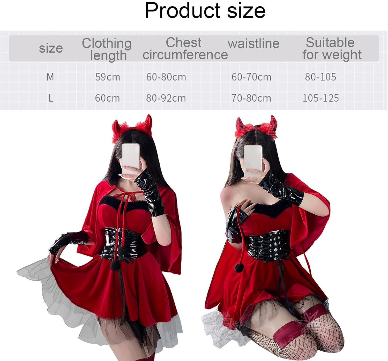 Halloween Little devilCosplay Uniform NightclubAbito in velluto in velluto per le donne Scatena il diavolo interiore con questo splendido costume! Preparati a evidenziare la tua sensualità e il fascino con la grafica accattivante e i dettagli raffinati. per feste di Halloween, feste da ballo a tema, eventi di cosplay e altro ancora. Mostra la tua personalità individuale e lascia brillare il fascino in questo costume. Specifiche: Tessuto: velluto Dimensione: m, l Lista: Banda per capelli*1 Spalla *1 Vestito*1 Cintura*1 Guanti*2 Cloak*1
