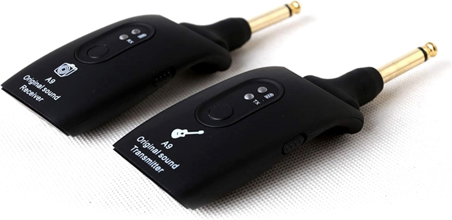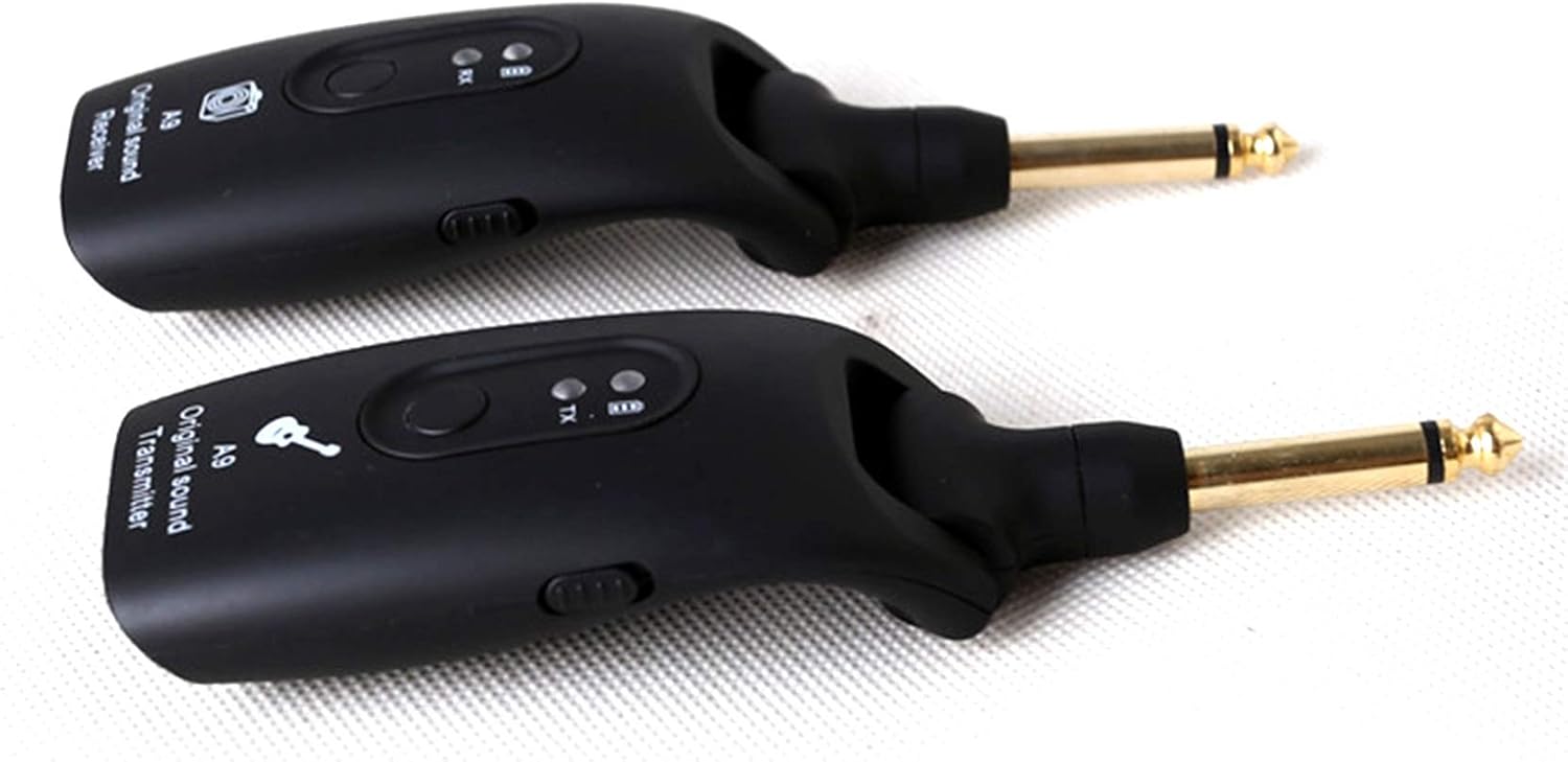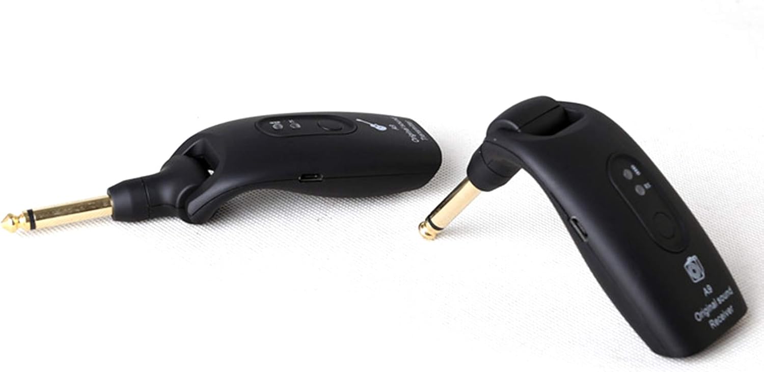 Trasmissione del segnale wireless 2.4GH non compresso, basso rumore e latenza. Set trasmettitore e ricevitore wireless progettato per strumenti musicali elettronici come chitarra, basso, ecc. Spina da 1/4 di pollice ruotabile di 270 gradi, disponibile per strumenti con jack di ingresso in diverse posizioni. Batteria ricaricabile incorporata, lunghe ore di e viene fornito con USB per una comoda ricarica. Supporta 4 set di dispositivi che funzionano contemporaneamente, il raggio di trasmissione può raggiungere i 50 metri.