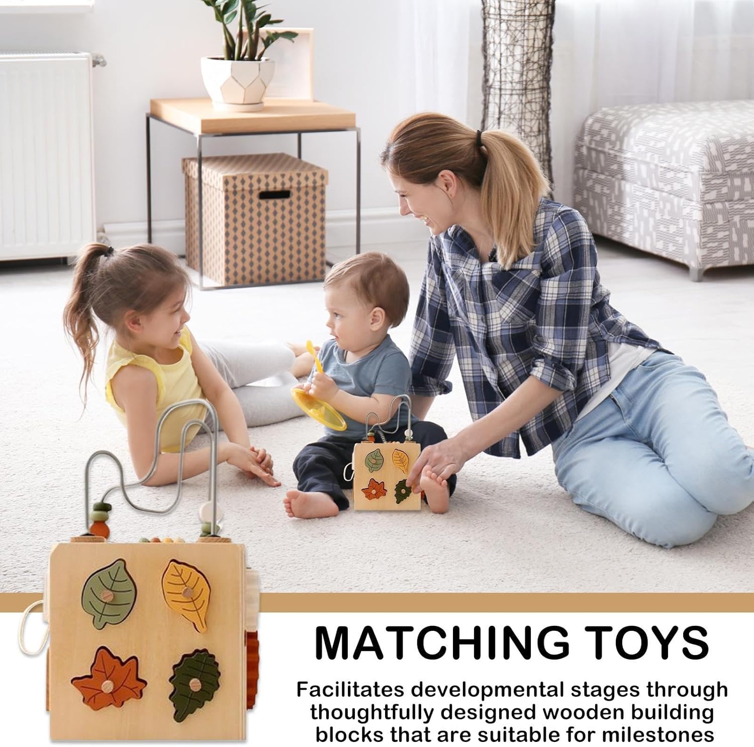 Promuove l'apprendimento pratico: questi blocchi facilitano l'apprendimento precoce della matematica, il riconoscimento dei colori e delle forme, sostenendo il ragionamento spaziale. Incoraggiano naturalmente la risoluzione dei problemi durante il gioco. Progettazione graduale: blocchi in legno appositamente studiati per accompagnare le fasi chiave dello sviluppo da 12 a 36 mesi. Stimola l'evoluzione delle abilità motorie dalla presa iniziale alla creazione di strutture complesse, favorendo una progressione adeguata per ogni fase di veglia. Apprendimento interattivo: questi blocchi in legno prolungano l'attenzione e migliorano le capacità motorie durante il gioco, incoraggiando al contempo un uso uguale di entrambe le mani per uno sviluppo armonioso delle abilità con un metodo giocoso. Sicurezza rinforzata: i bordi lucidati e la struttura affidabile di questi blocchi in legno consentono di giocare in modo sicuro, senza il rischio di parti staccabili. Versatilità giocosa: alleanza unica di un percorso con perline e giochi di forme su pannello 5 in 1, sviluppando destrezza e intelligenza spaziale attraverso l'impilamento dei blocchi di legno.