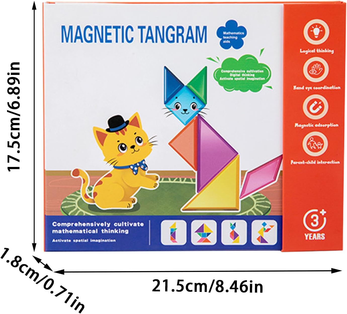 Abilità cognitive: Stimolano il pensiero logico e la coordinazione mano-cervello, sostenendo lo sviluppo matematico precoce attraverso attività multidimensionali. Perfetti per esercizi a casa o in classe, consentono di creare disegni migliorando naturalmente l'engagement intellettuale. Applicazioni versatili: questo modello facilita l'apprendimento multilivello, guidando gli utenti dalle introduzioni prescolari alle configurazioni avanzate, rafforzando lo sviluppo logico e l'istruzione basata sui modi per migliorare la concentrazione e il divertimento in vari ambienti interattivi Portabilità perfetta: progettato con un magnetico integrato, questo tangram per bambini garantisce una conservazione e un trasporto senza sforzo. Le sue dimensioni compatte e la portabilità favoriscono il gioco creativo e la risoluzione dei problemi in ambienti domestici o scolastici. Apprendimento giocoso: Facilitano il passaggio da costruzioni di base a quelle avanzate, stimolando la creatività e la crescita cognitiva sia nei bambini che negli adulti durante attività familiari o di gruppo Materiale robusto: pezzi geometrici per classe con angoli arrotondati e realizzati con materiali sicuri, garantendo un ambiente di apprendimento protetto promuovendo la creatività durante attività pratiche in settings educativi