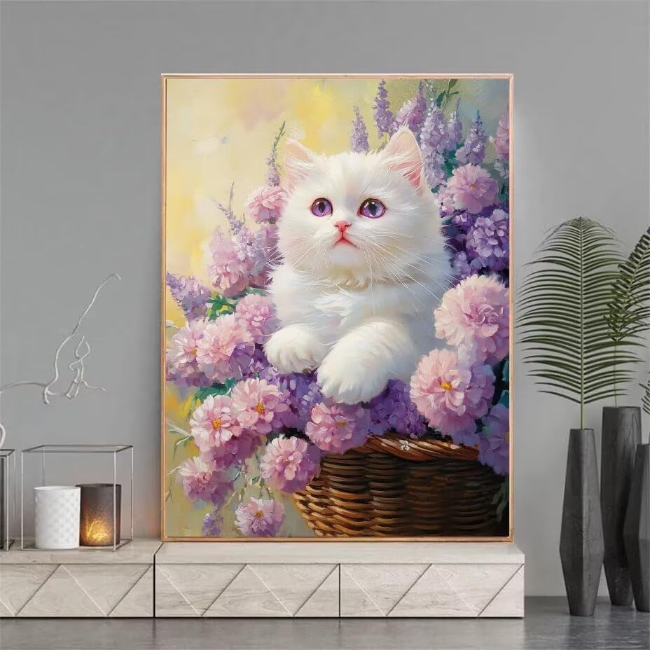 Diamond Painting Animale, 5D Gatto Diamond Painting Kit Completo, DIY Diamantini Crystal Art Hobby Creativi Adulti e Bambina, Strass Ricamo a Punto Croce Artigianale, Decorazione Casa 70x90cm 0Y-50