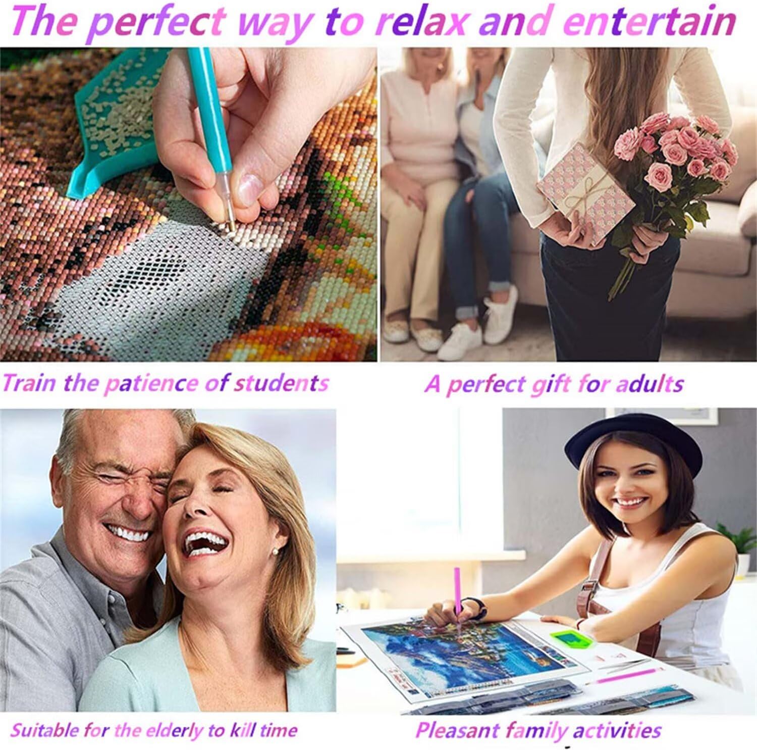 TONDO DIAMOND PAINTING KIT : include 1 tela ad alta definizione, 1 penna con diamanti, 1 colla per diamanti, 1 vassoio, 1 punta per penna multifunzione da 3/6 e tanti diamanti tondi TELA AD ALTA DEFINIZIONE : Il nostro kit per diamond painting utilizza tele di alta qualità, che danno vita a immagini nitide e scritte e simboli facili da comprendere, prevenendo efficacemente l'affaticamento degli occhi. La tela stessa è dotata di uno sfondo adesivo e di una pellicola protettiva in plastica per mantenere l'adesione del dipinto DIAMANTE TONDO ABBAGLIANTE : Ogni diamante rotondo ha 26 sfaccettature, che brillano ancora di più sotto la luce, aggiungendo texture e tridimensionalità all'immagine, facile da usare e completo. I diamanti sono di qualità eccezionale e non sbiadiscono. (offriamo un diamante bonus del 30% per garantire che il tuo lavoro venga perfetto) IL FAI DA TE AGGIUNGE DIVERTIMENTO ALLA VITA : Creare il nostro kit fai da te per diamond art 5D offre un senso di realizzazione, che cresce con l'apprendimento collaborativo tra genitori e figli. Coltiva anche la pazienza e migliora le capacità pratiche REGALI PER LE FESTIVITÀ : i dipinti di diamanti sono regali dati a familiari, amici e persone care per san valentino, halloween, natale, festa della mamma, compleanni e altre festività