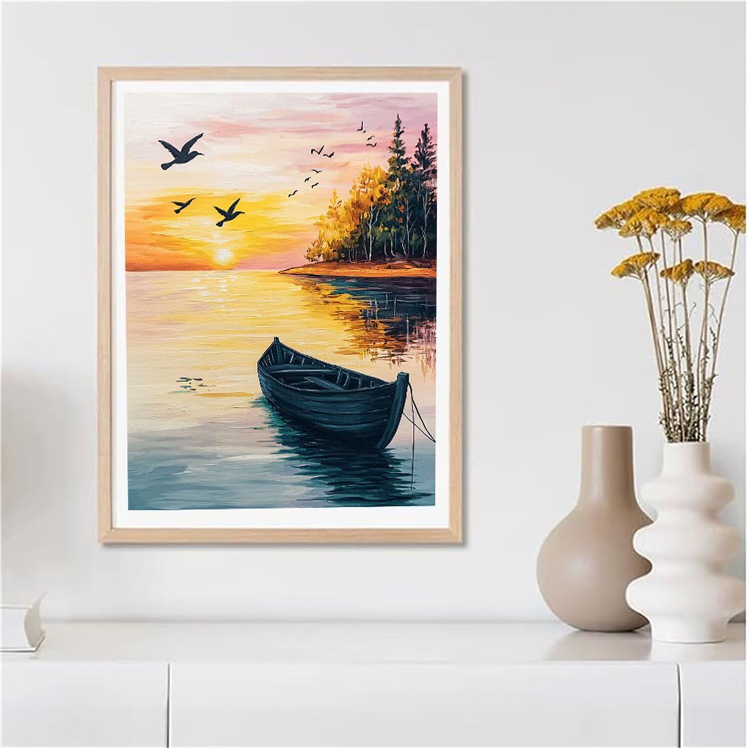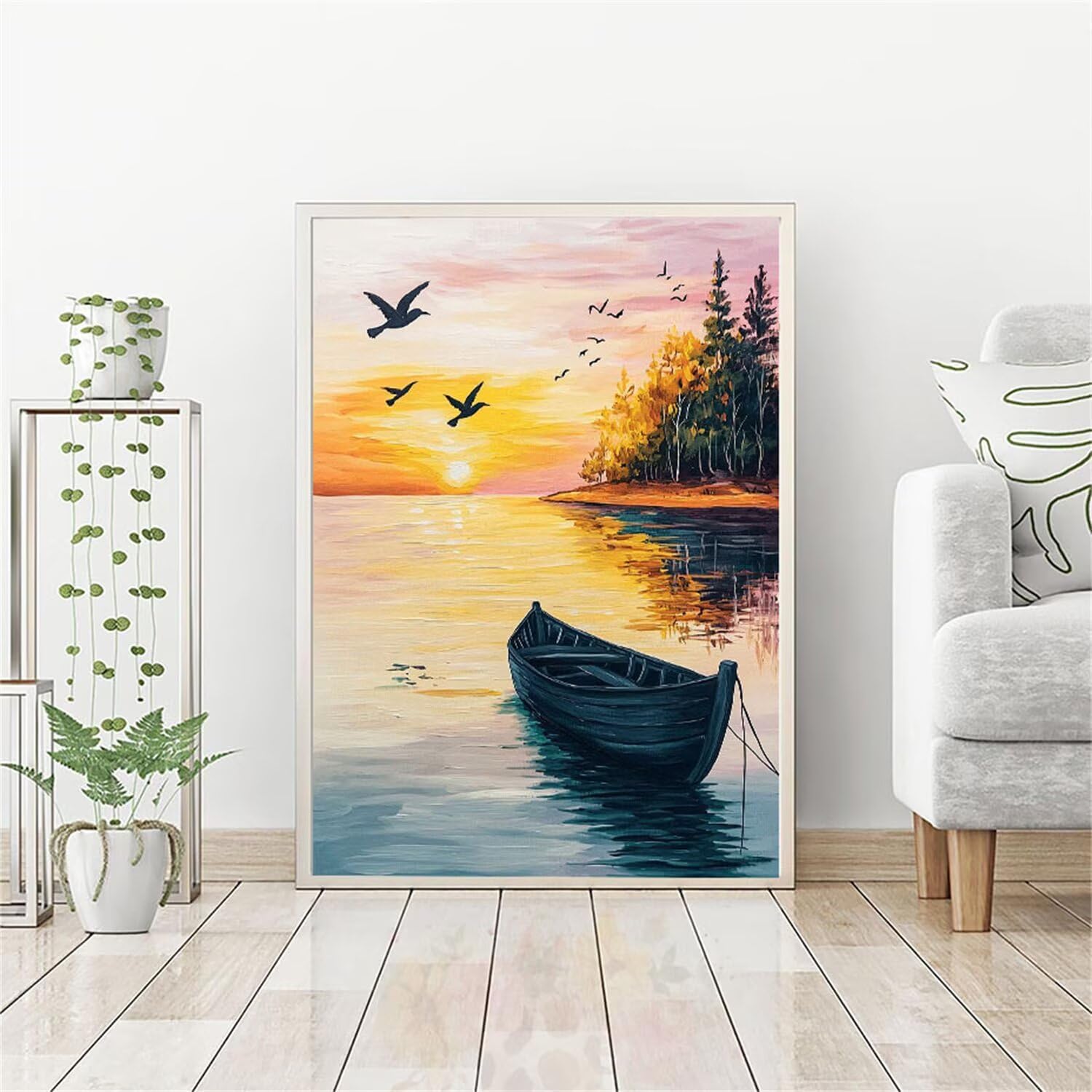 Diamond Painting Barche a Vela, Uccelli Diamond Painting Kit Completo, Passatempo per Adulti Principianti, Diamantini Crystal Art Bambini, Strass Ricamo Punto a Croce, Decorazione Interna 45x60cm A-18