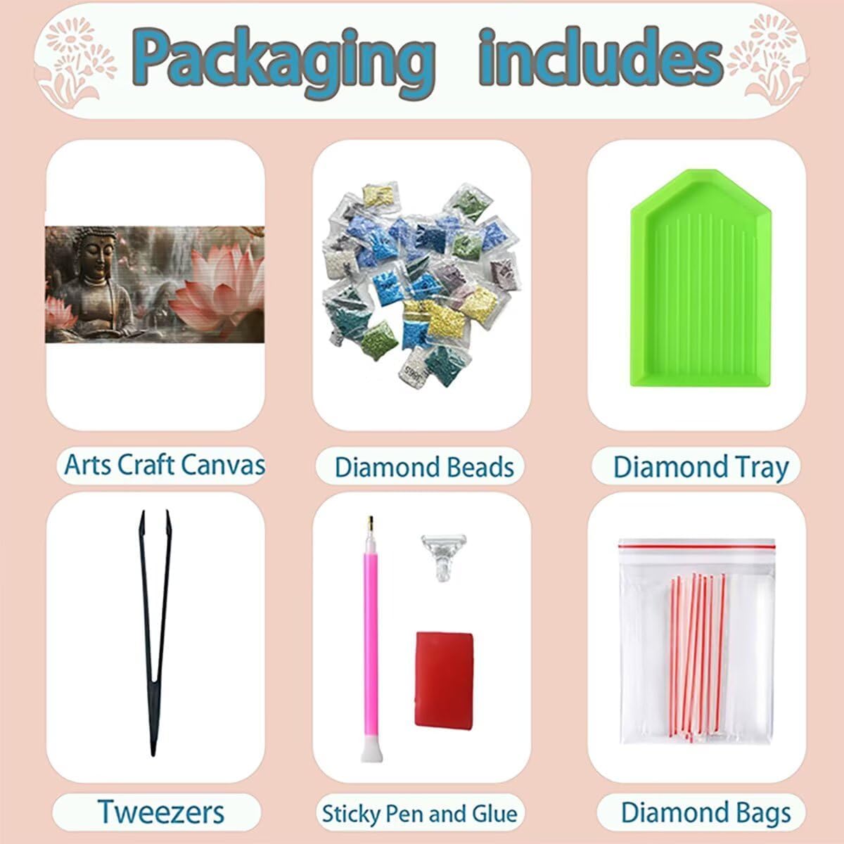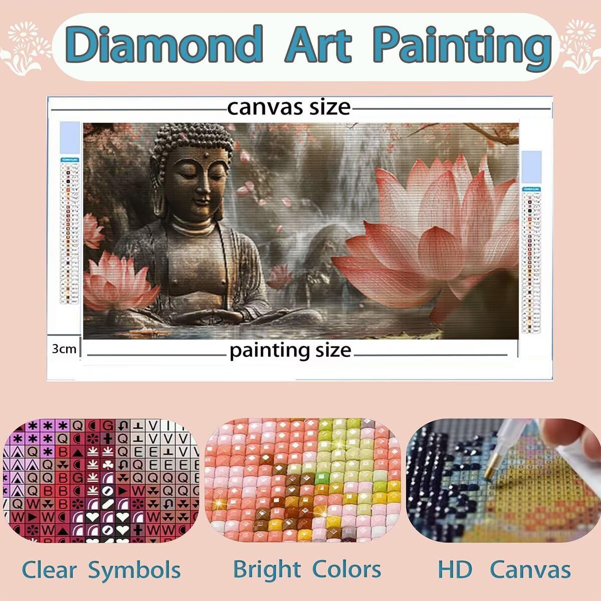 DIAMOND PAINTING SIZE AND PACK : Diamond painting budda è size 60x155cm, include 1 tela ad alta definizione, 1 penna a diamante, 1 vassoio a diamante cubico, 1 argilla adesiva, 5 sacchetti sigillati, il set contiene abbastanza diamanti quadrati colorati (un extra del 30%) e tutti gli strumenti necessari per realizzare diamond painting TELA PER DIAMOND PAINTING HD : Diamond painting fiore tela utilizza una stampa ad alta definizione, garantendo che ogni numero o lettera sia chiaramente identificabile, trovarli facilmente, tela impermeabile e dalla consistenza uniforme, con una copertura superiore in plastica autoadesiva per mantenere la pittura appiccicosa e i diamond al sicuro COLORATA FULL DIAMOND PAINTING : Diamanti nei nostri kit diamond painting con trapano completo sono riccamente colorati e comprendono l'intero spettro di tonalità necessarie per l'opera d'arte. Realizzati con materiali di alta qualità, questi diamanti mostrano brillantezza, lucentezza e resistenza allo sbiadimento. La luce brillante riflessa dalle loro superfici anima l'intero dipinto DIAMOND PAINTING BUDDA : Diamond painting fiore, qui est un kit de peinture au diamant adapté aux adultes, nos kits de diamond painting pour adultes sont disponibles dans une variété de styles, y compris des paysages, des animaux et plus encore, pour répondre à différents besoins personnalisés (vous pouvez rechercher des Lioauanh diamond painting) EXCELLENT SERVICE APRÈS-VENTE : Après réception du kit diamond painting, veuillez d'abord vérifier la diamond et les accessoires. Si un diamant est manquant ou endommagé, contactez-nous à temps et nous vous fournirons une solution sous 24 heures (L'image indique la taille maximale, veuillez acheter la taille souhaitée)