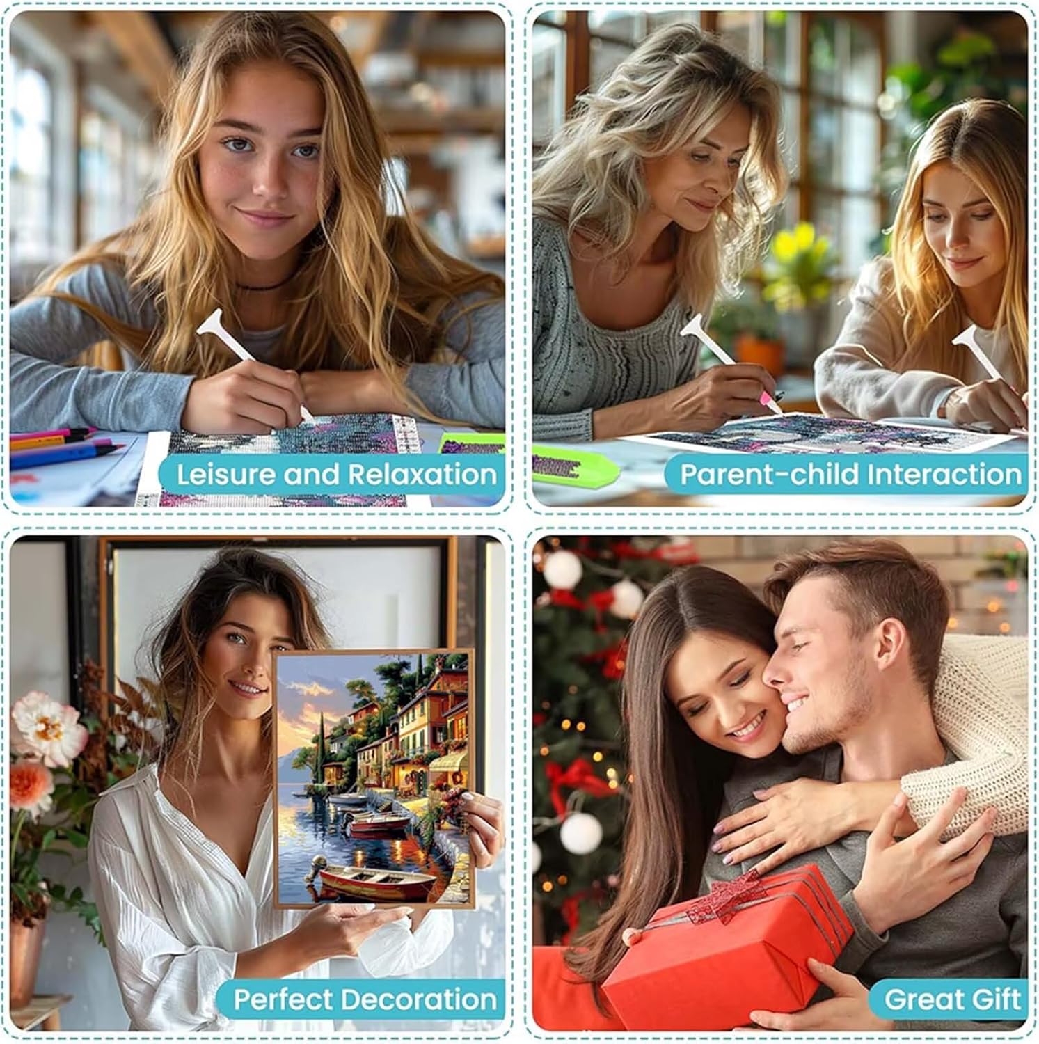 TELA IMPERMEABILE HD: Kit per diamond painting utilizzano una tela impermeabile HD colorata, dotata di uno sfondo molto adesivo che fa aderire saldamente i diamanti alla tela. Il codice DMC sul diamond painting corrisponde al colore della punta del trapano, i simboli delle lettere sono chiari e facili da capire, prevenendo efficacemente l'affaticamento degli occhi. PIÙ DIAMANTI: Diamanti sono completamente ricoperti, ognuno dei nostri diamanti presenta molteplici sfaccettature per un aspetto scintillante. Confezioniamo il 30% di diamanti in più in ogni confezione, così non dovrai mai preoccuparti di rimanere senza diamanti. IL FAI DA TE AGGIUNGE PIÙ DIVERTIMENTO ALLA VITA: Pittura con diamanti può regolare le emozioni e alleviare lo stress. Può anche coltivare la pazienza, migliorare le capacità pratiche e condividere momenti felici con la famiglia o gli amici. Adatto a persone di tutte le età. ARREDAMENTO CASA E REGALI: Nostro kit per diamond painting 5D è perfetto per decorare il soggiorno, la camera da letto, l'ufficio, il ristorante, il bar o qualsiasi altro luogo in cui desideri abbinare diversi stili di arredamento. È anche un regalo premuroso per genitori, amici o persone care per Natale, Halloween, Capodanno o compleanni. PITTURA DIAMANTE ADULTI SERVIZIO: Ogni kit di pittura con diamanti 5D fai da te offre una qualità ineguagliabile e un servizio clienti affidabile. Per qualsiasi domanda, non esitate a contattarci, ci occuperemo immediatamente della vostra richiesta.